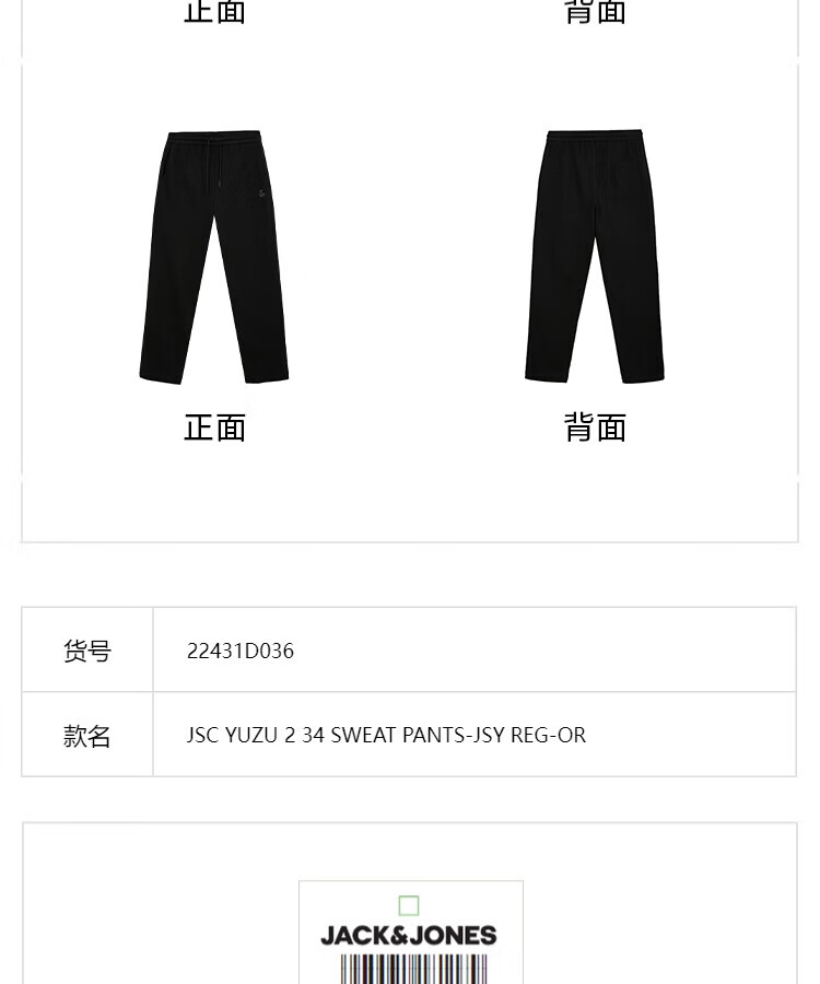JACK&JONES new spring and summer fashionable commuting simple versatile and comfortable solid color pure cotton sports sweatpants straight casual pants for men E40 black-legged M is too large, it is recommended to take one size smaller
