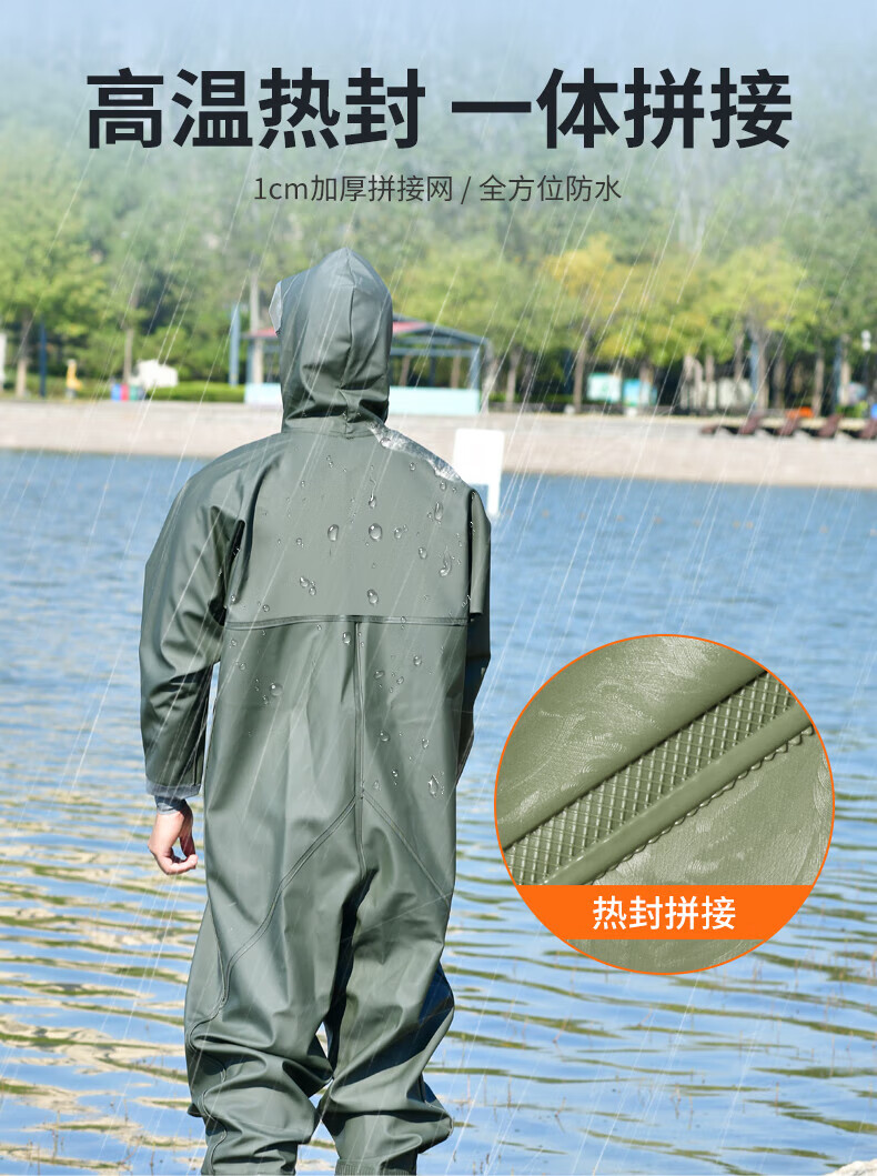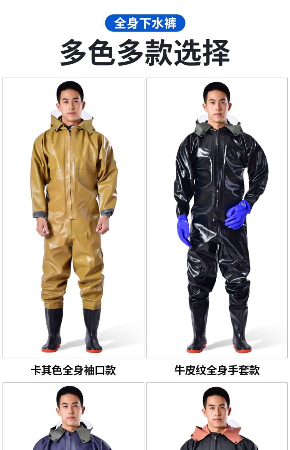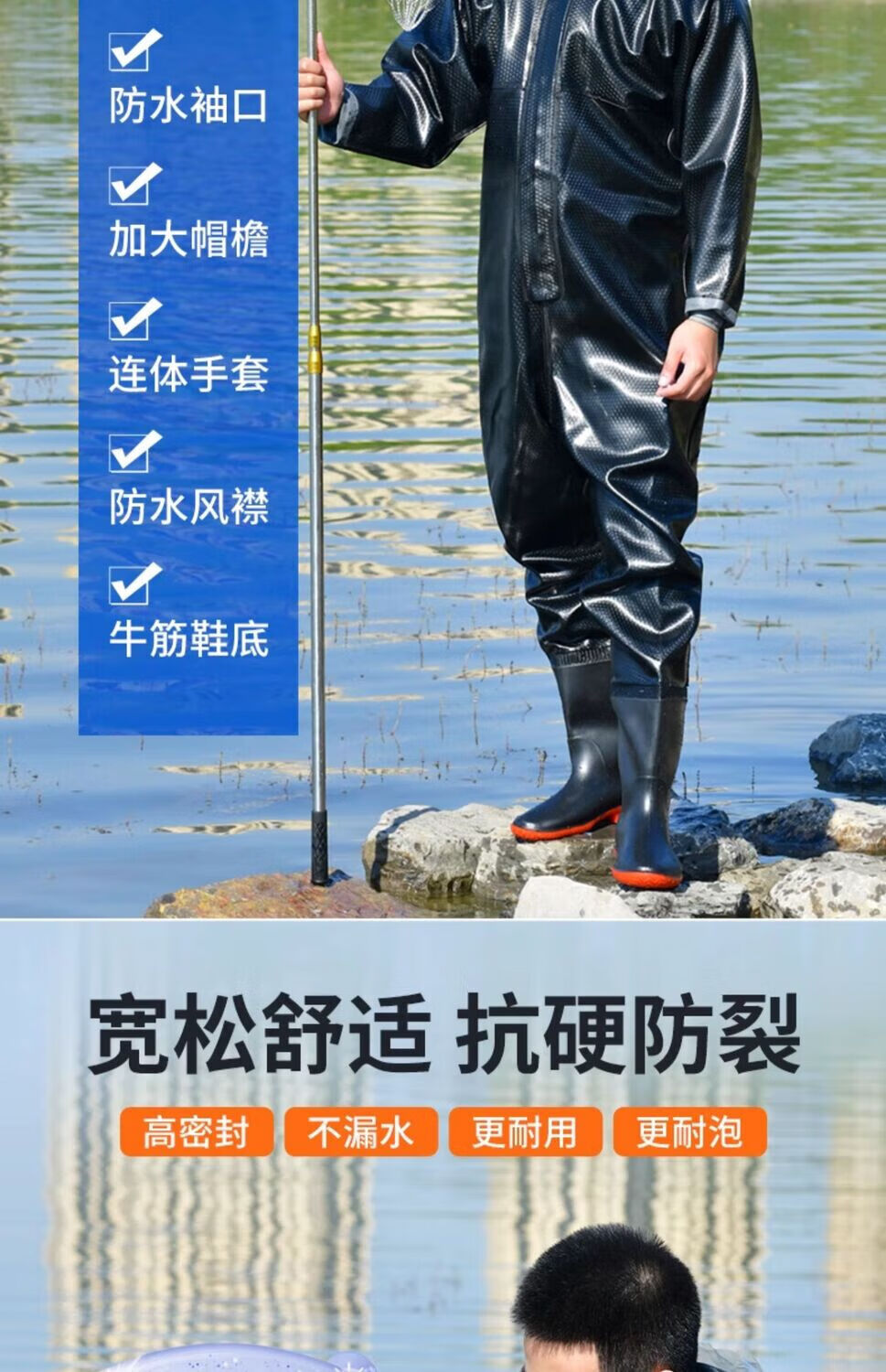 Mengda full-body waders one-piece fishing rain pants with rain boots waterproof clothes fish-catching waders water shoes reservoir men's leather fork off-white black leather pattern full-body gloves 105 silk 43.5 one size fits all 43 shoe size