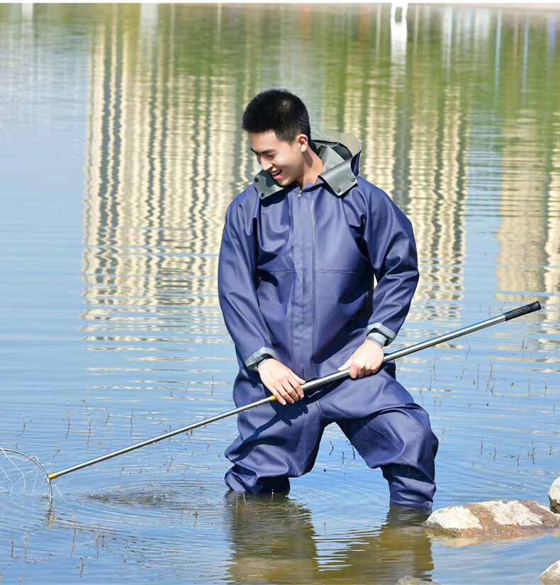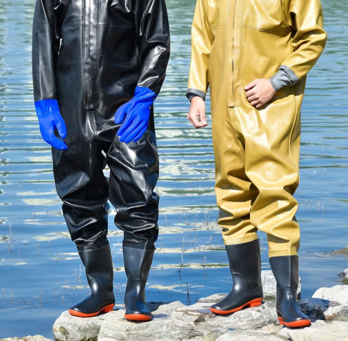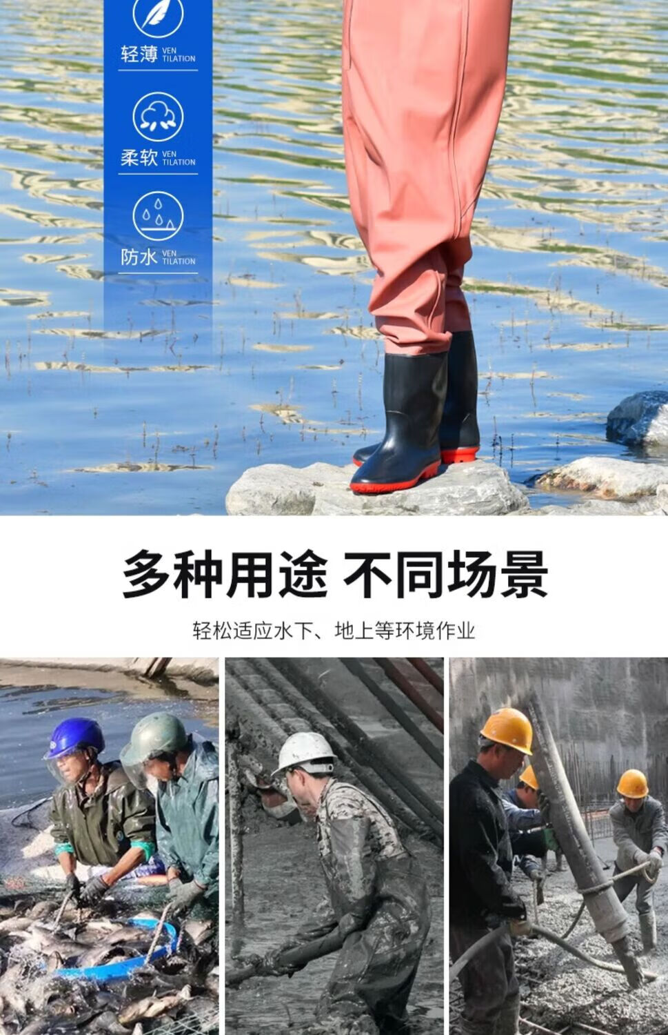 Mengda full-body waders one-piece fishing rain pants with rain boots waterproof clothes fish-catching waders water shoes reservoir men's leather fork off-white black leather pattern full-body gloves 105 silk 43.5 one size fits all 43 shoe size