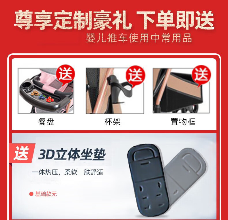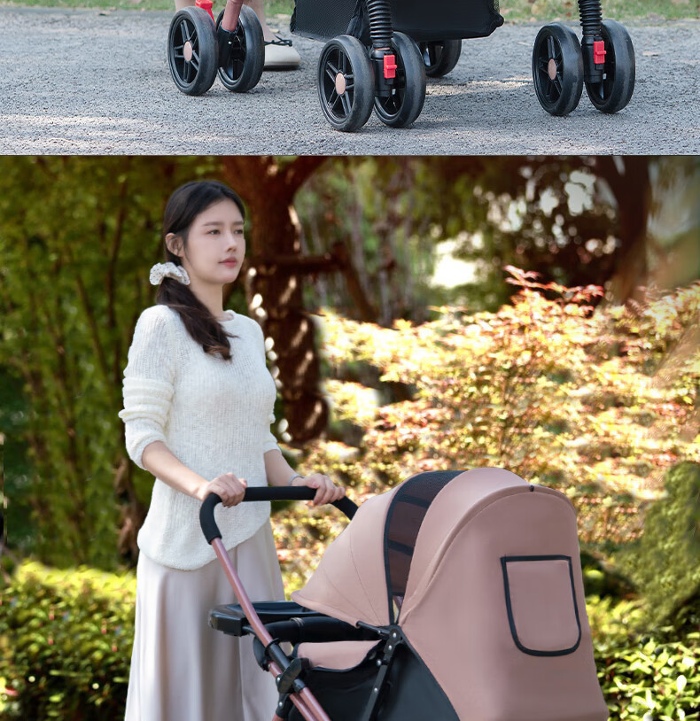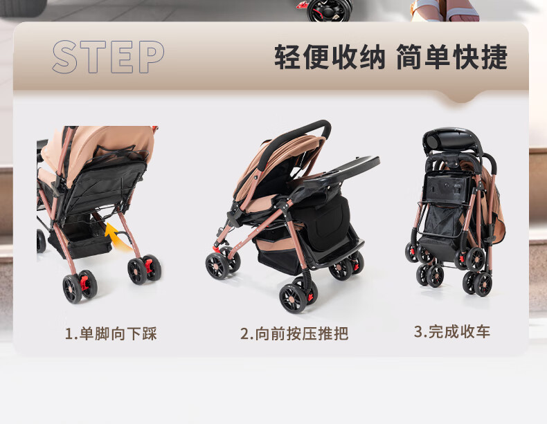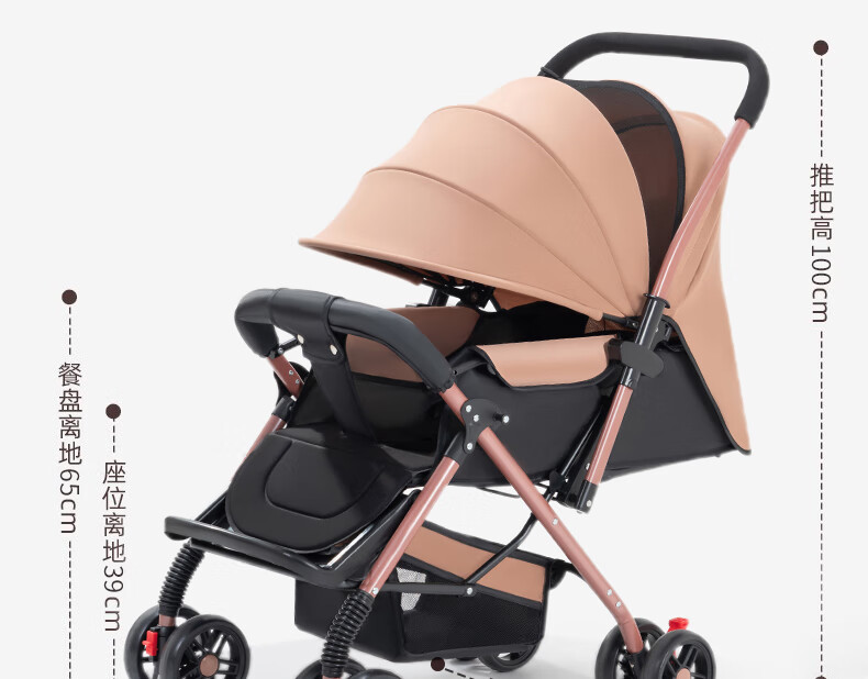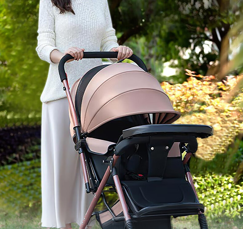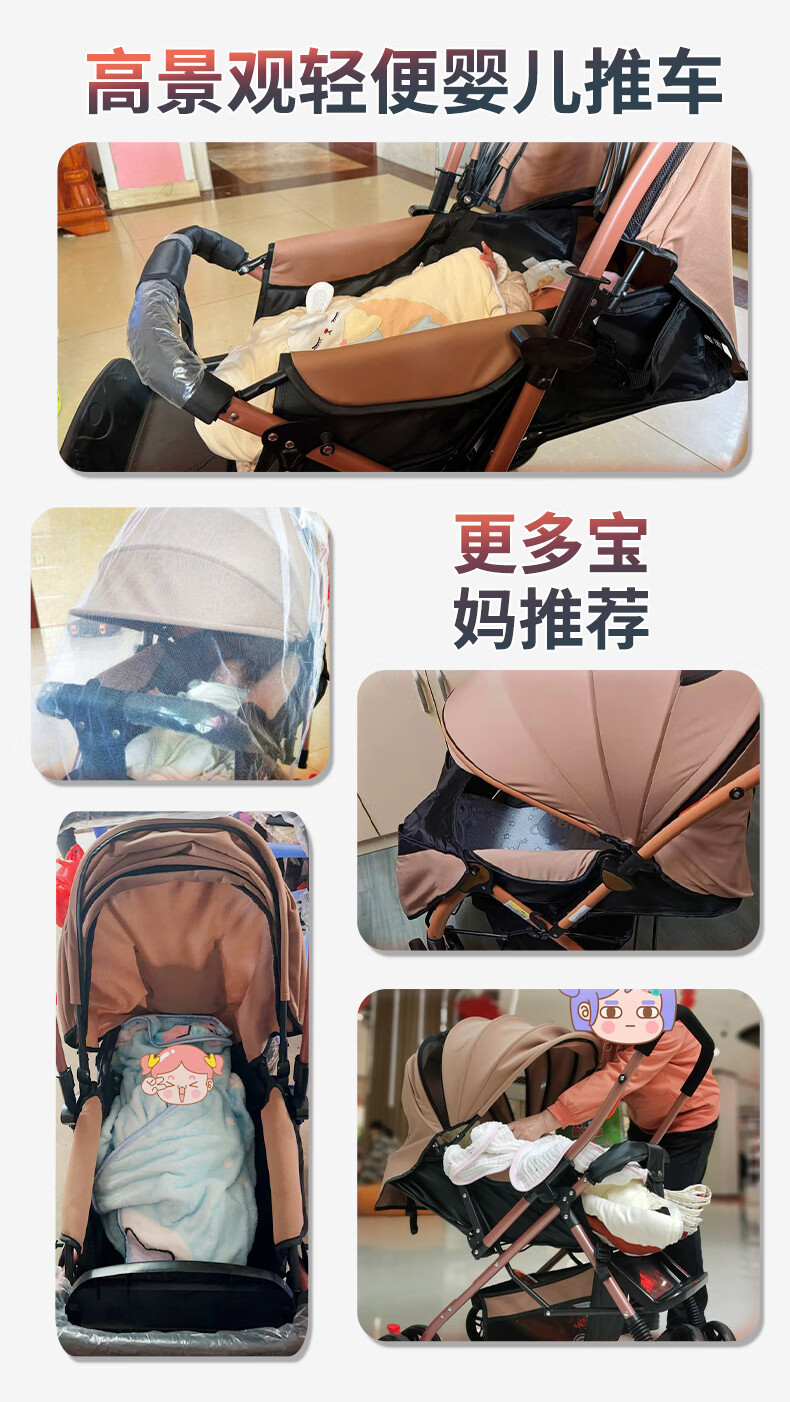 JOT TMM baby stroller can sit and lie down, lightweight folding newborn child two-way high view stroller, card color cup holder + storage basket + mosquito net + cotton pad