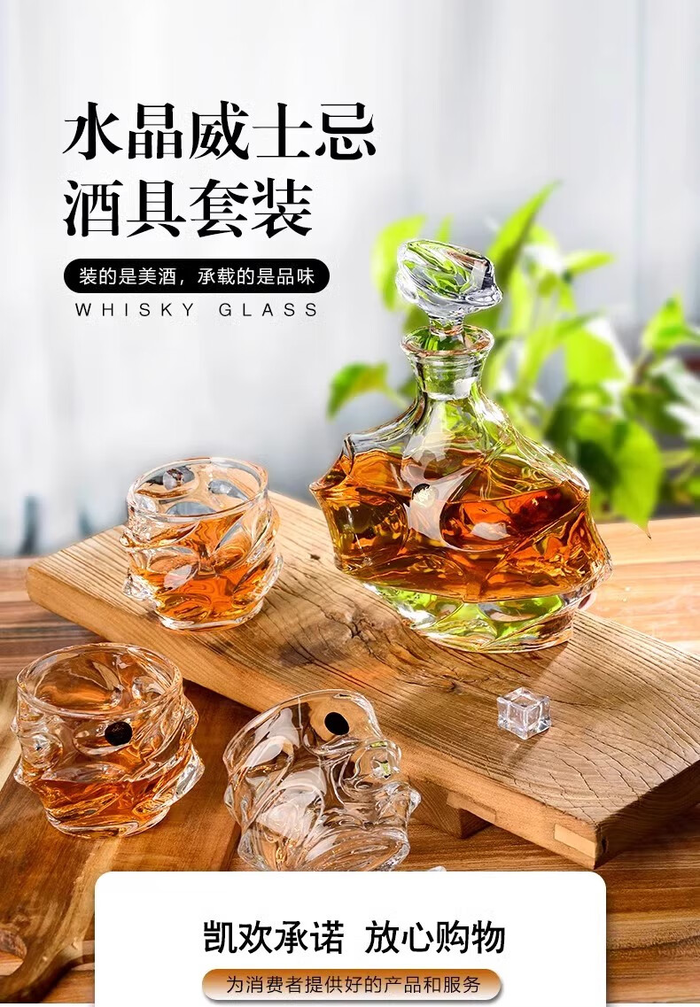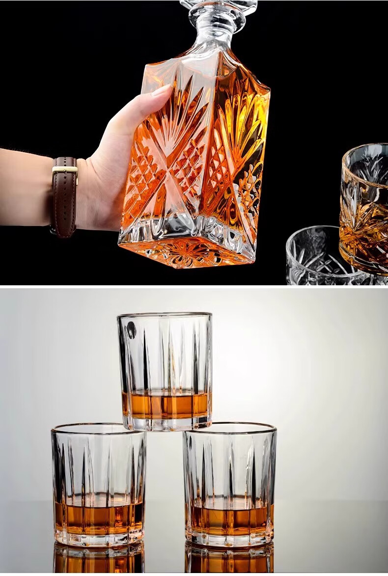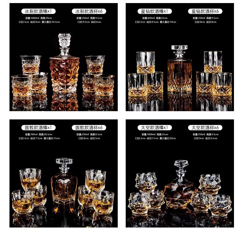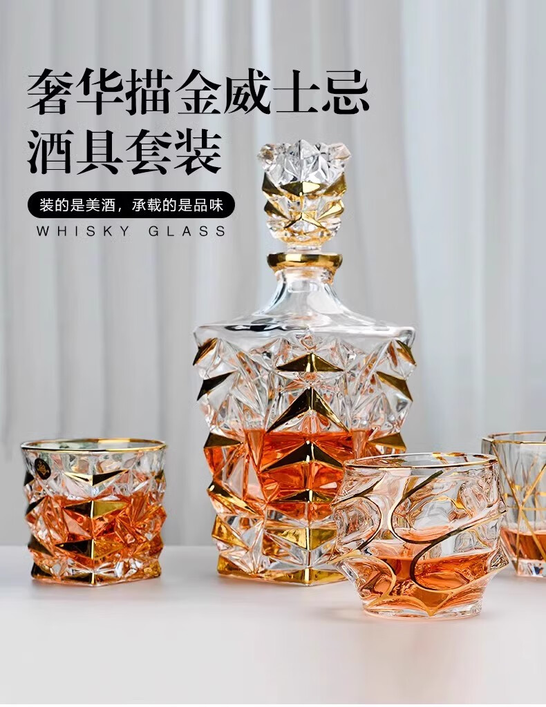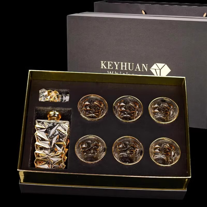 DEATKN French gold-painted whiskey glass gift box set crystal glass wine glass wine bottle wine set gift gift ice cracked gift box set 7-piece set