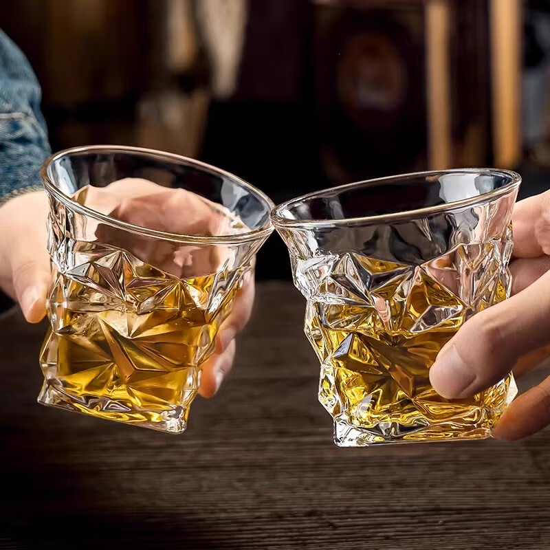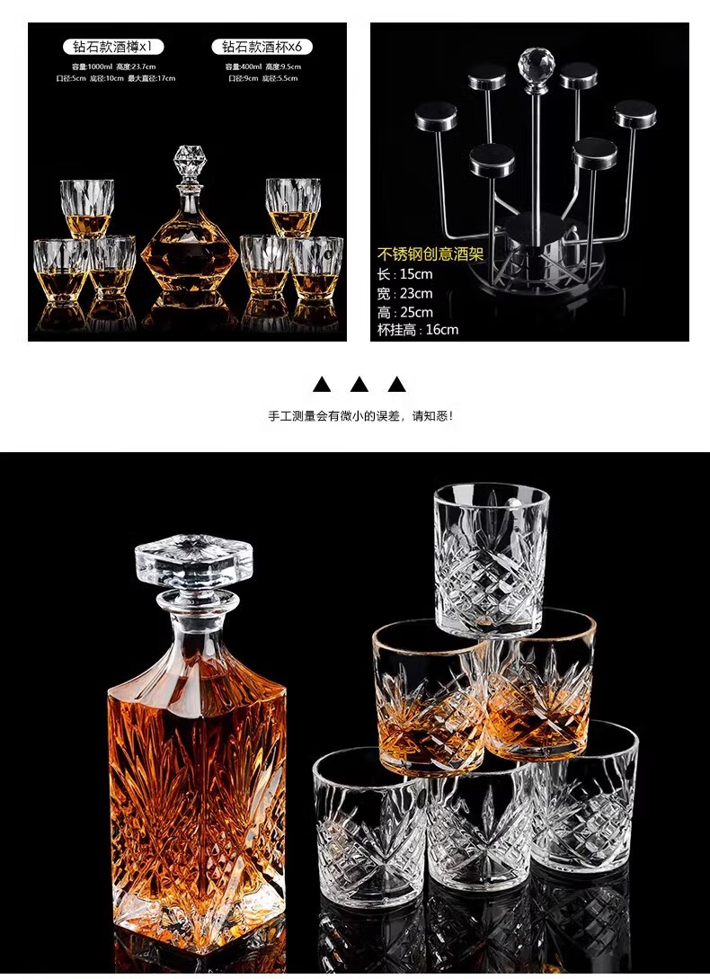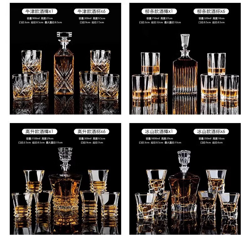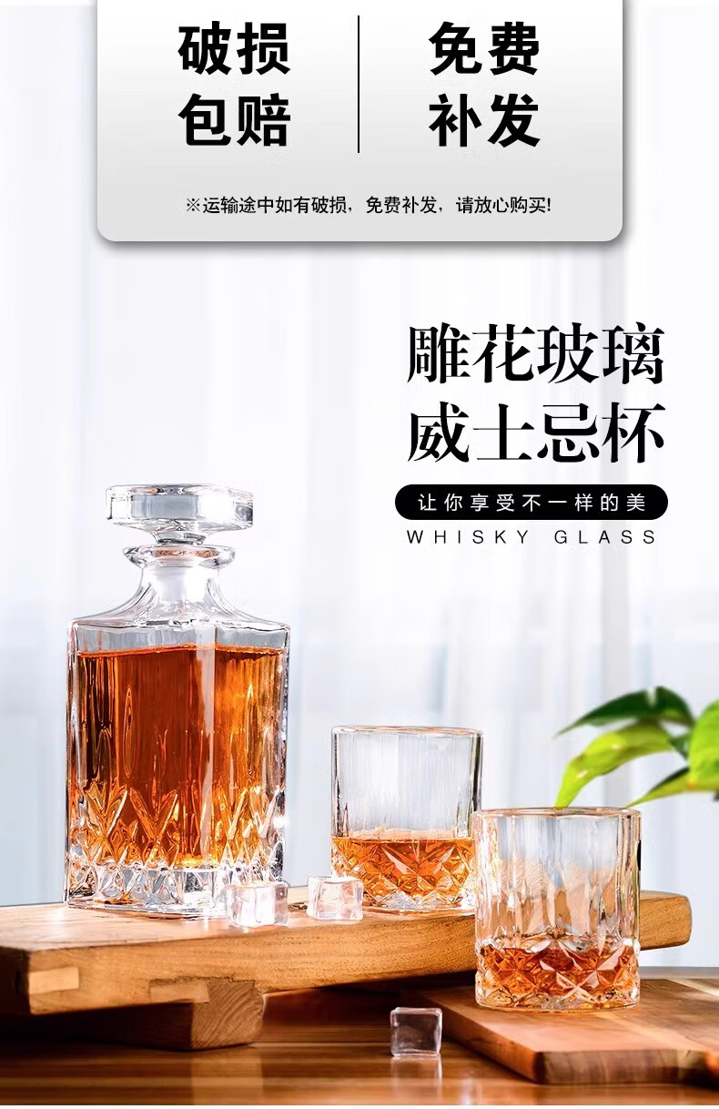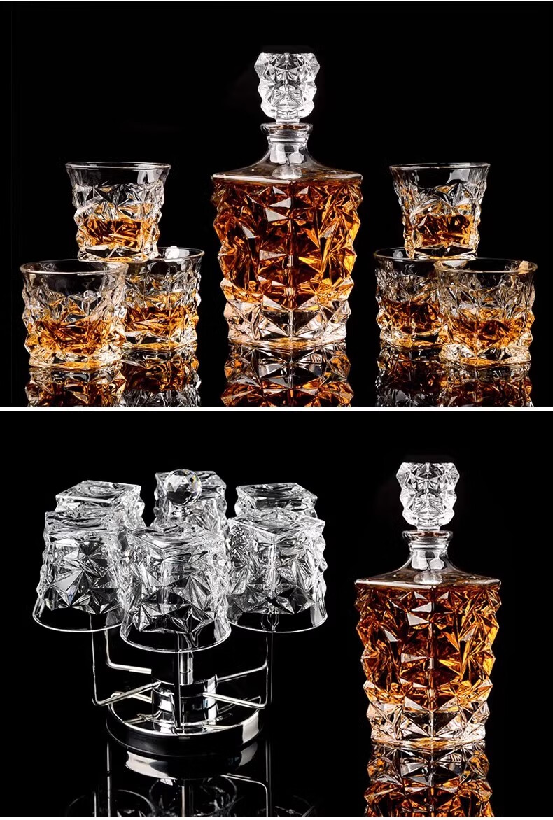 DEATKN French gold-painted whiskey glass gift box set crystal glass wine glass wine bottle wine set gift gift ice cracked gift box set 7-piece set