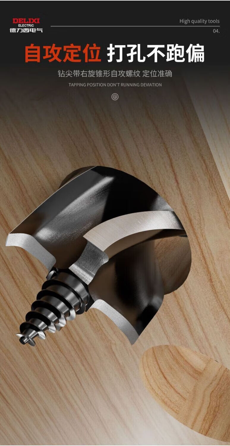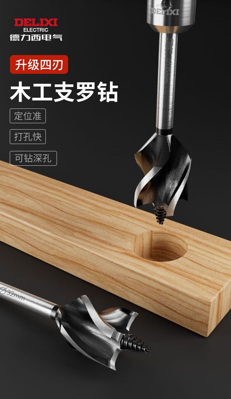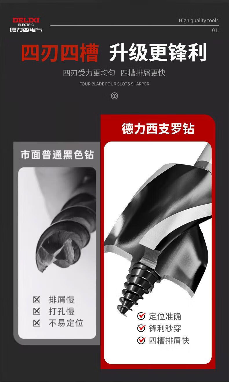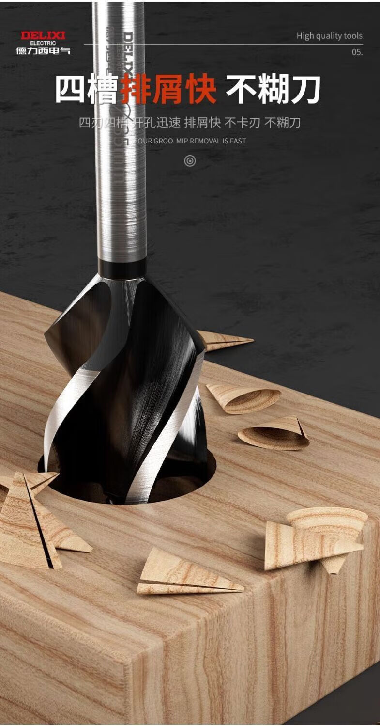 Delixi Electric woodworking drill four-slot four-edged hexagonal handle twist drill door lock drawer opening reaming drill wear-resistant 10mm 1