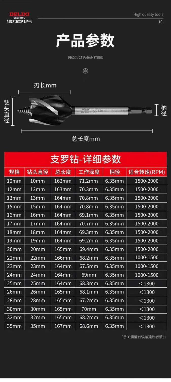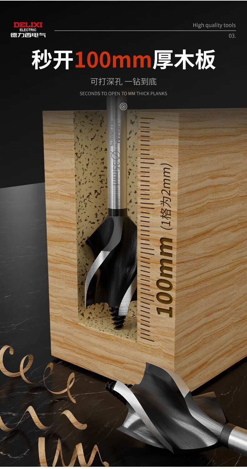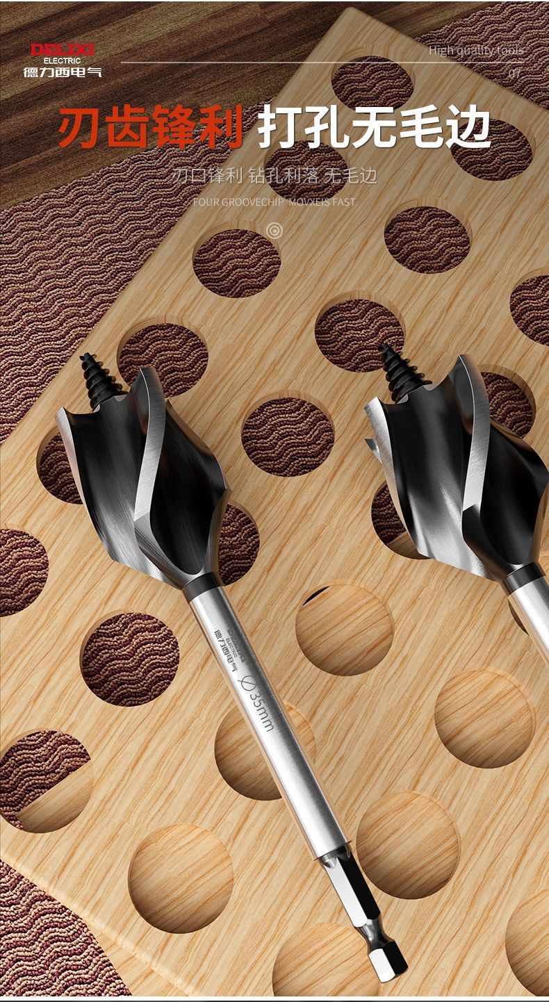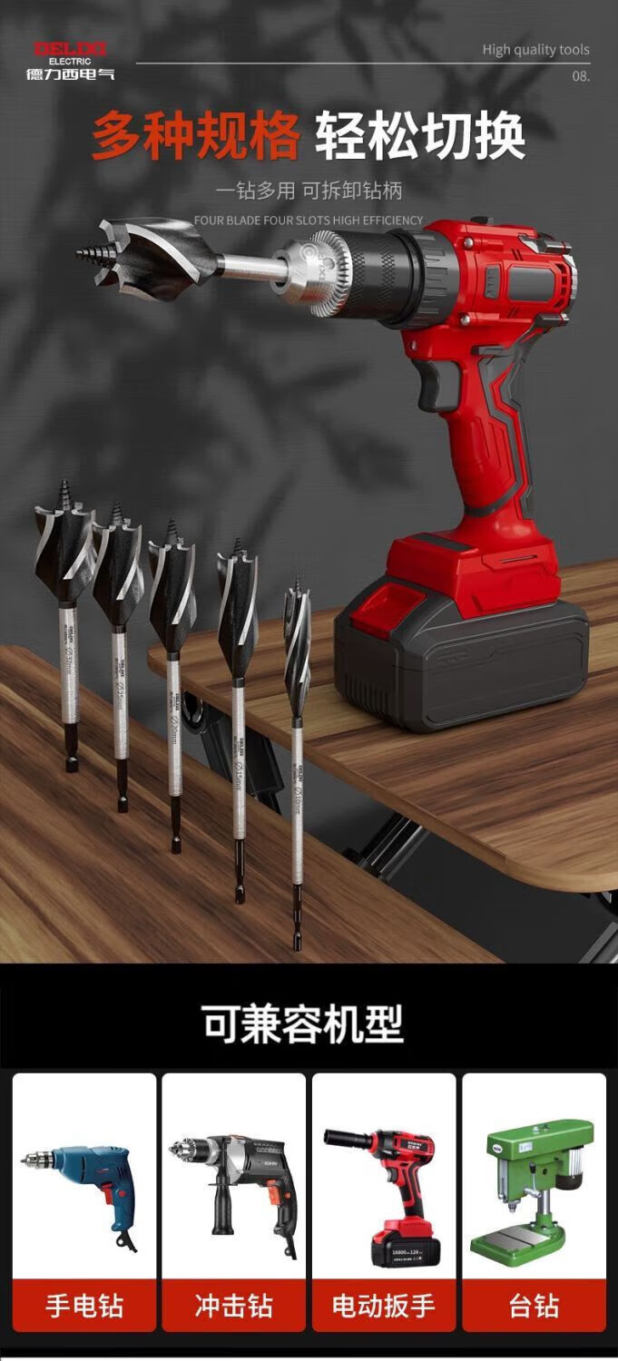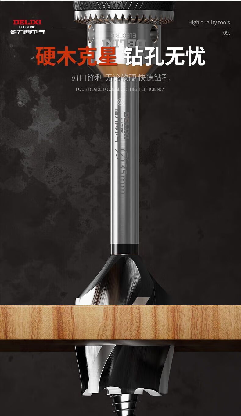 Delixi Electric woodworking drill four-slot four-edged hexagonal handle twist drill door lock drawer opening reaming drill wear-resistant 10mm 1