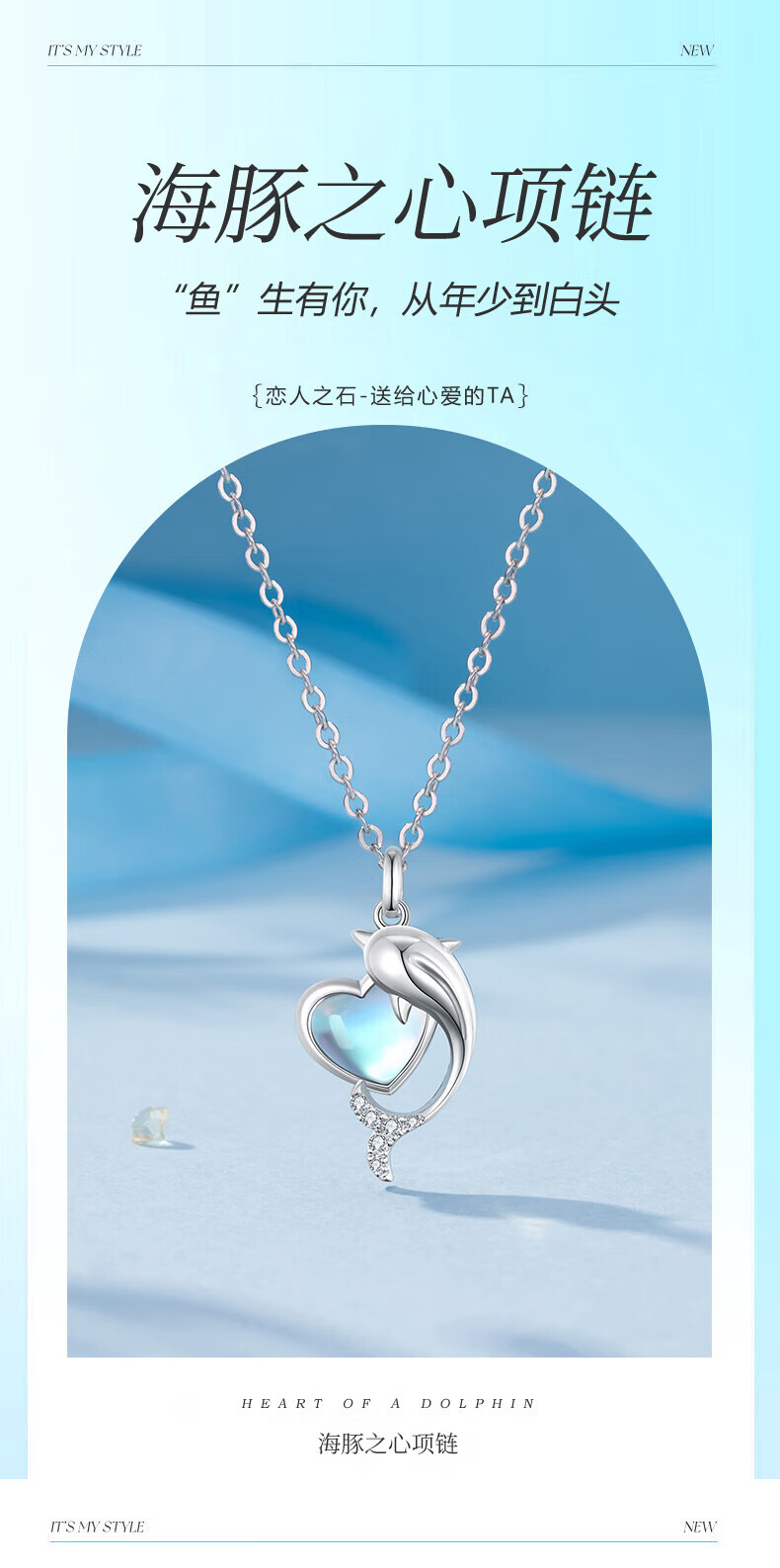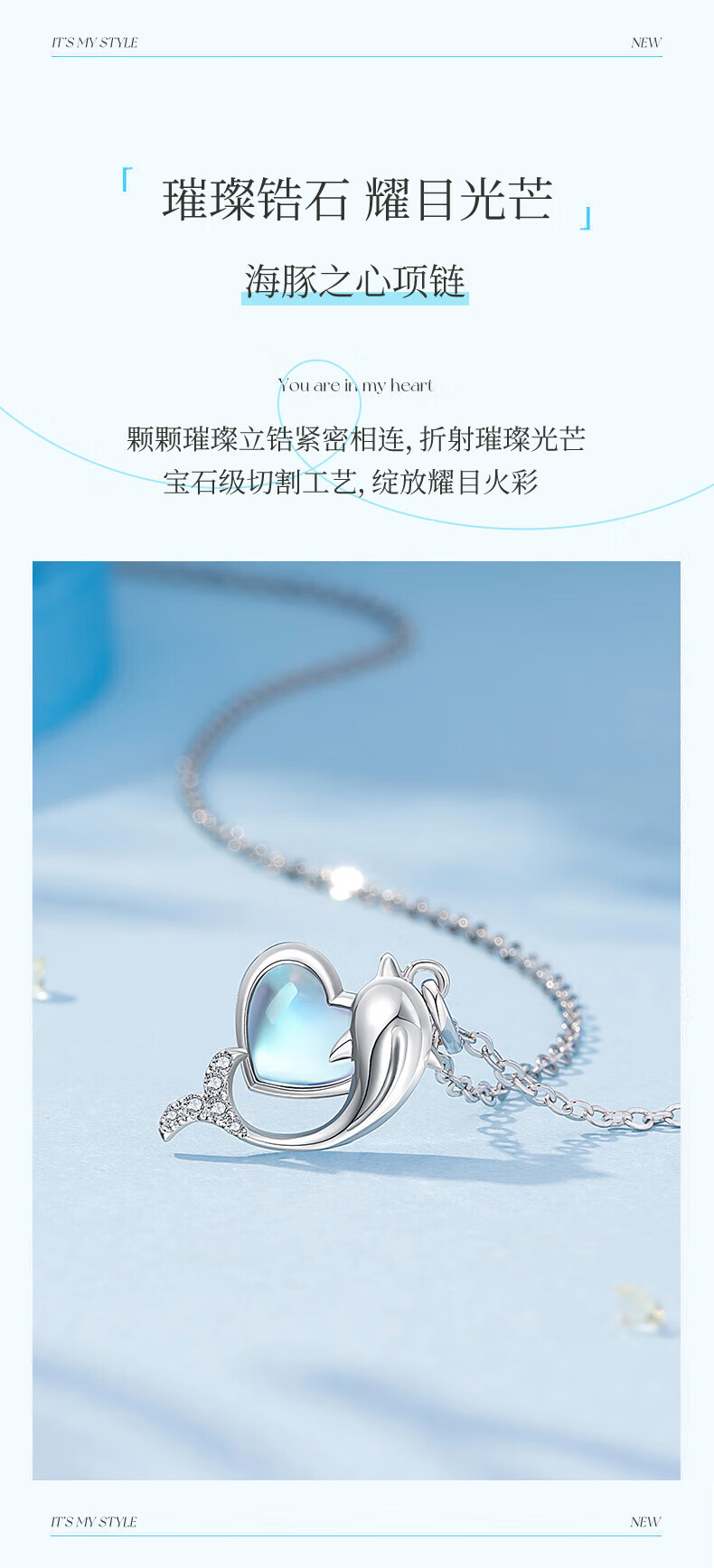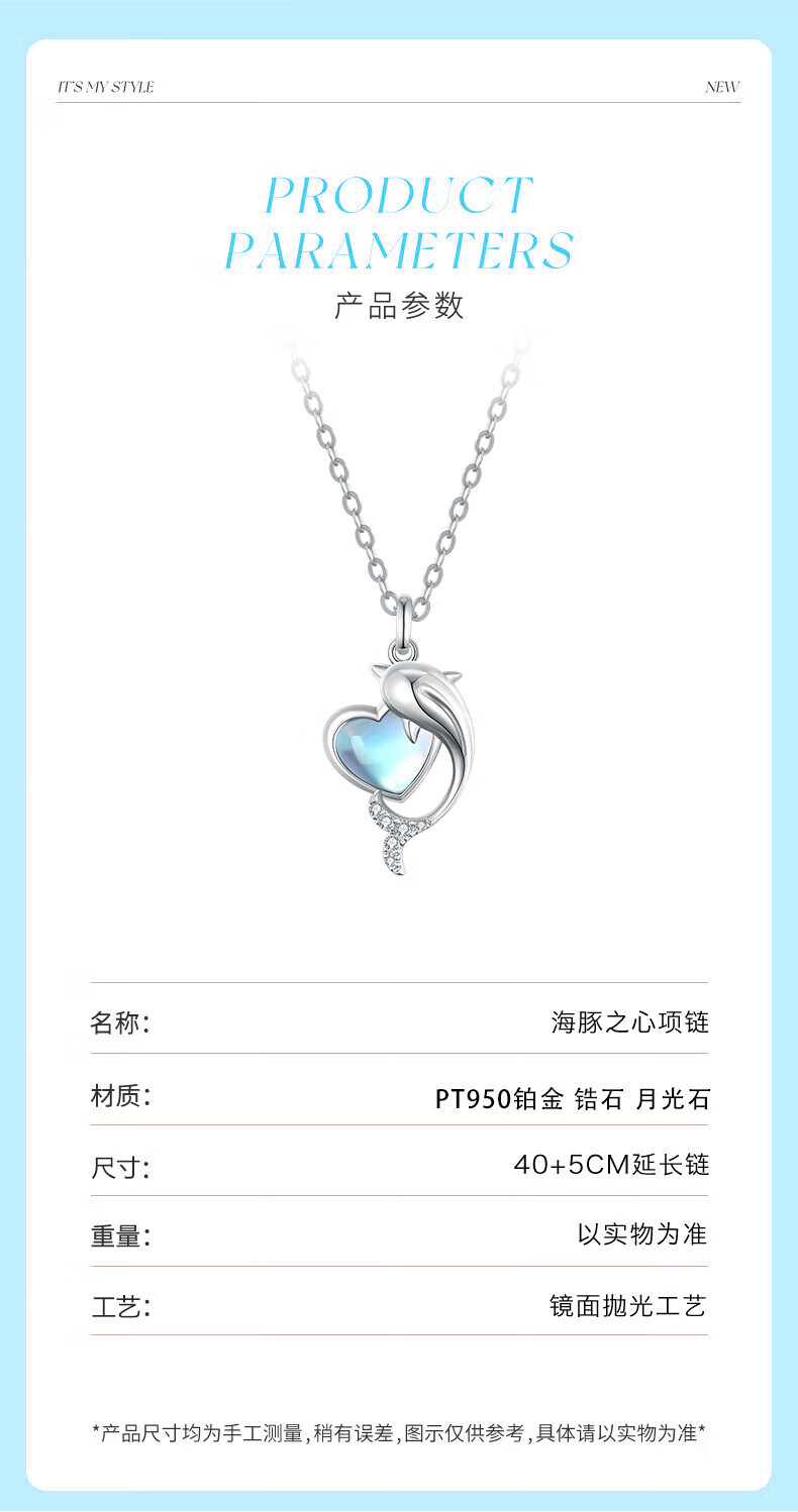 Grace GirlPT950 Platinum Necklace Dolphin Heart Platinum Pendant Practical Birthday Gift for Girlfriend and Wife Dolphin Heart Platinum Necklace