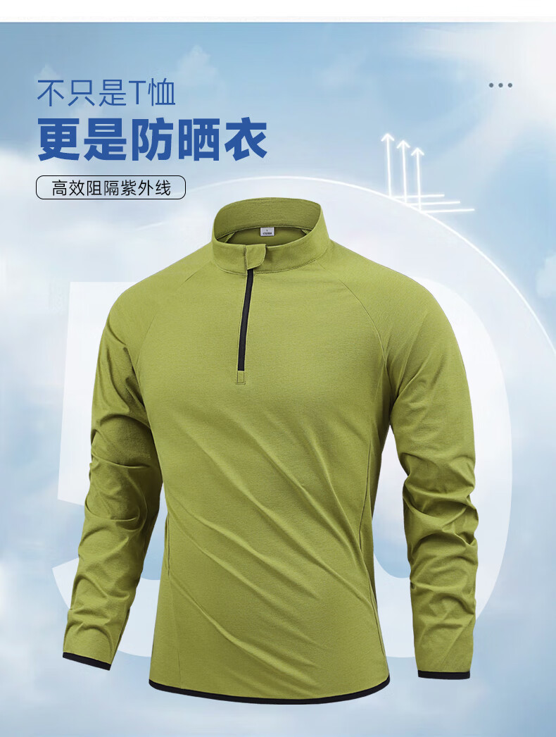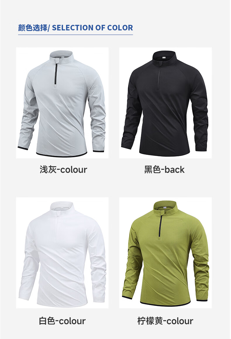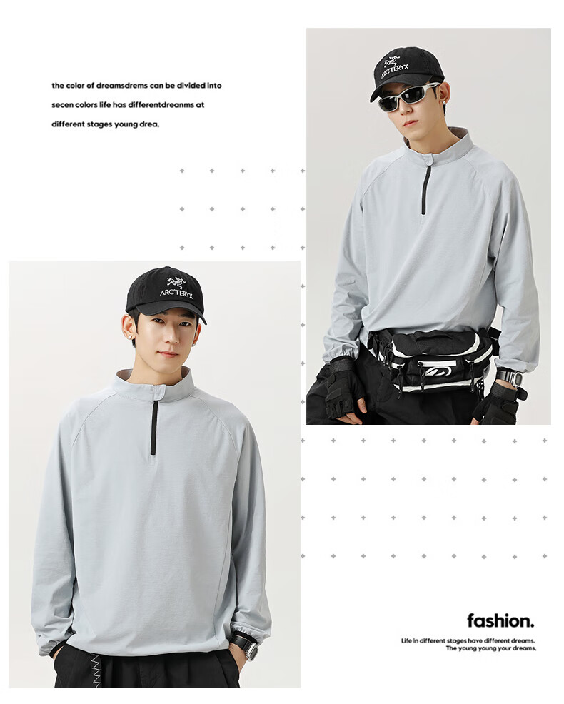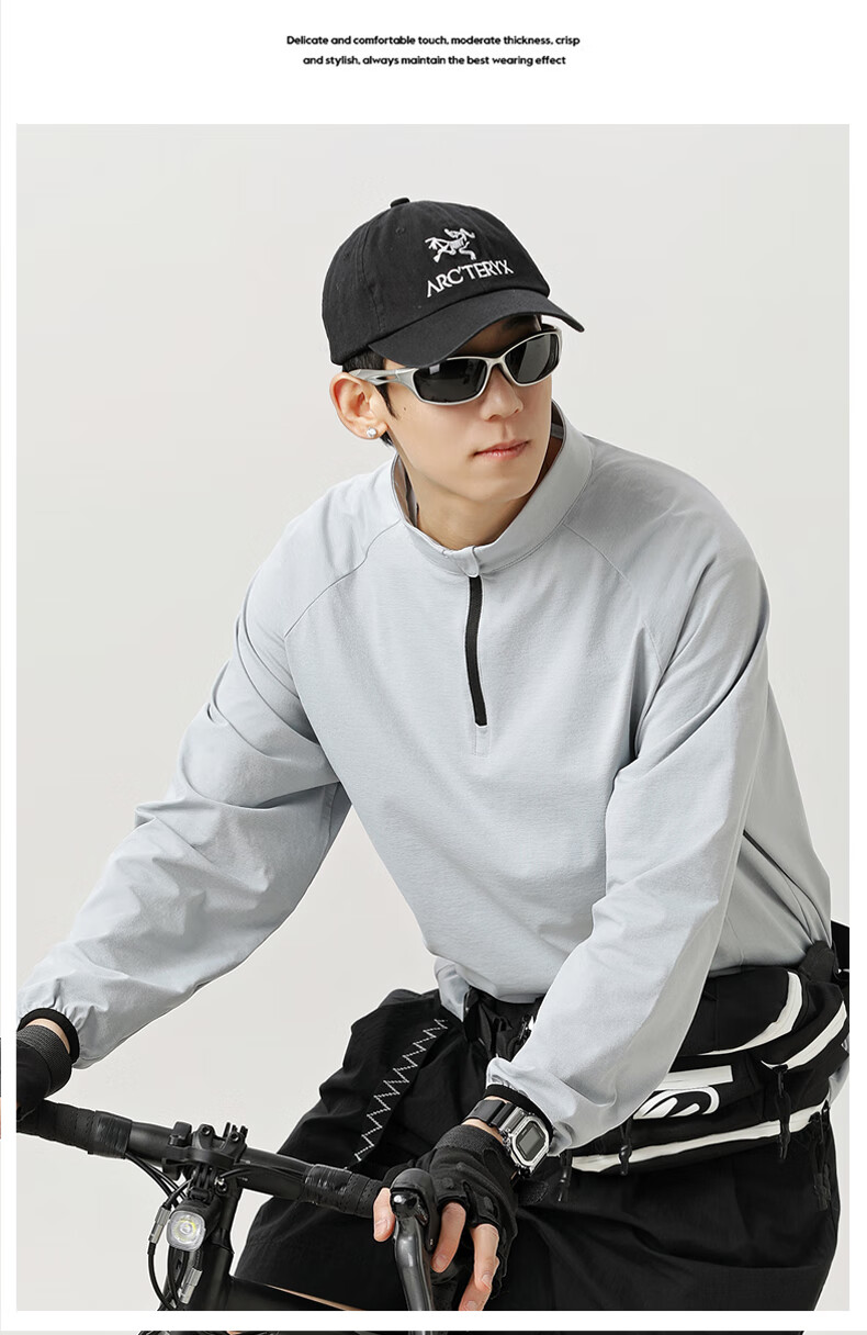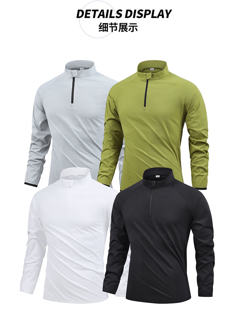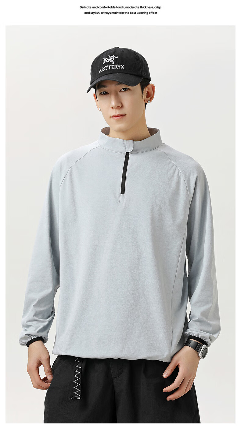 JEEP SPIRIT sports long-sleeved men's spring and summer breathable quick-drying half-zip T-shirt men's outdoor training sports top cycling jersey light gray M
