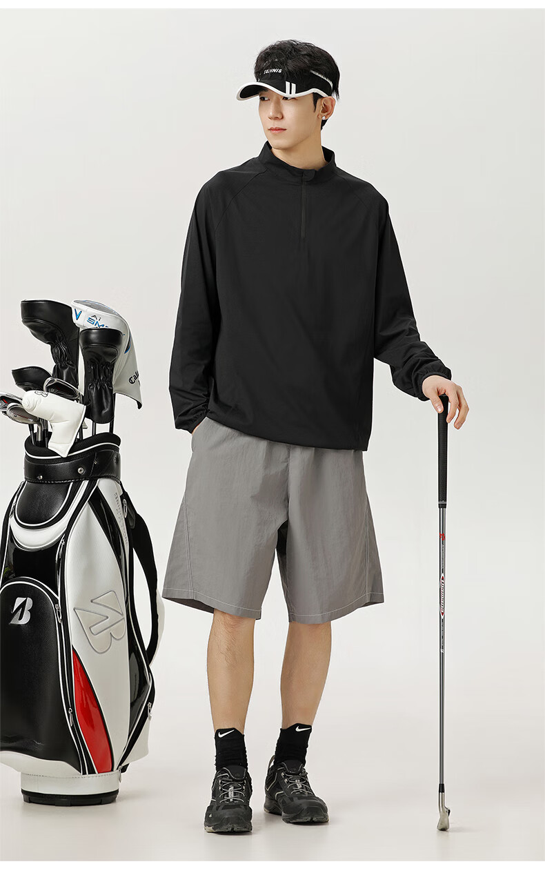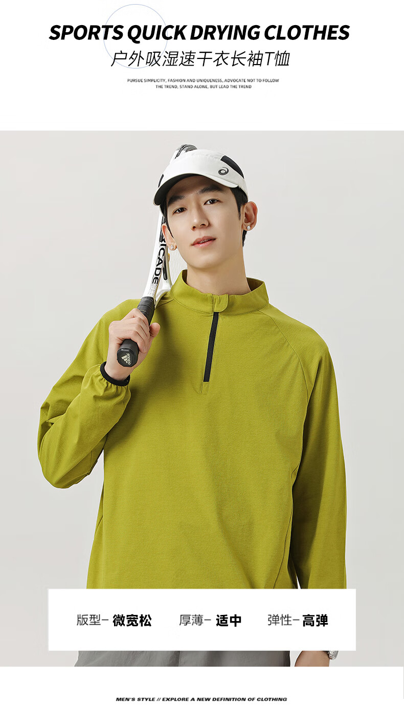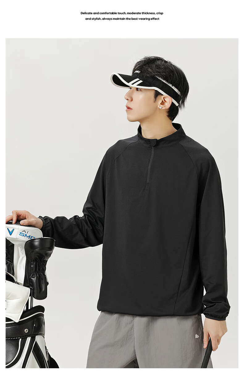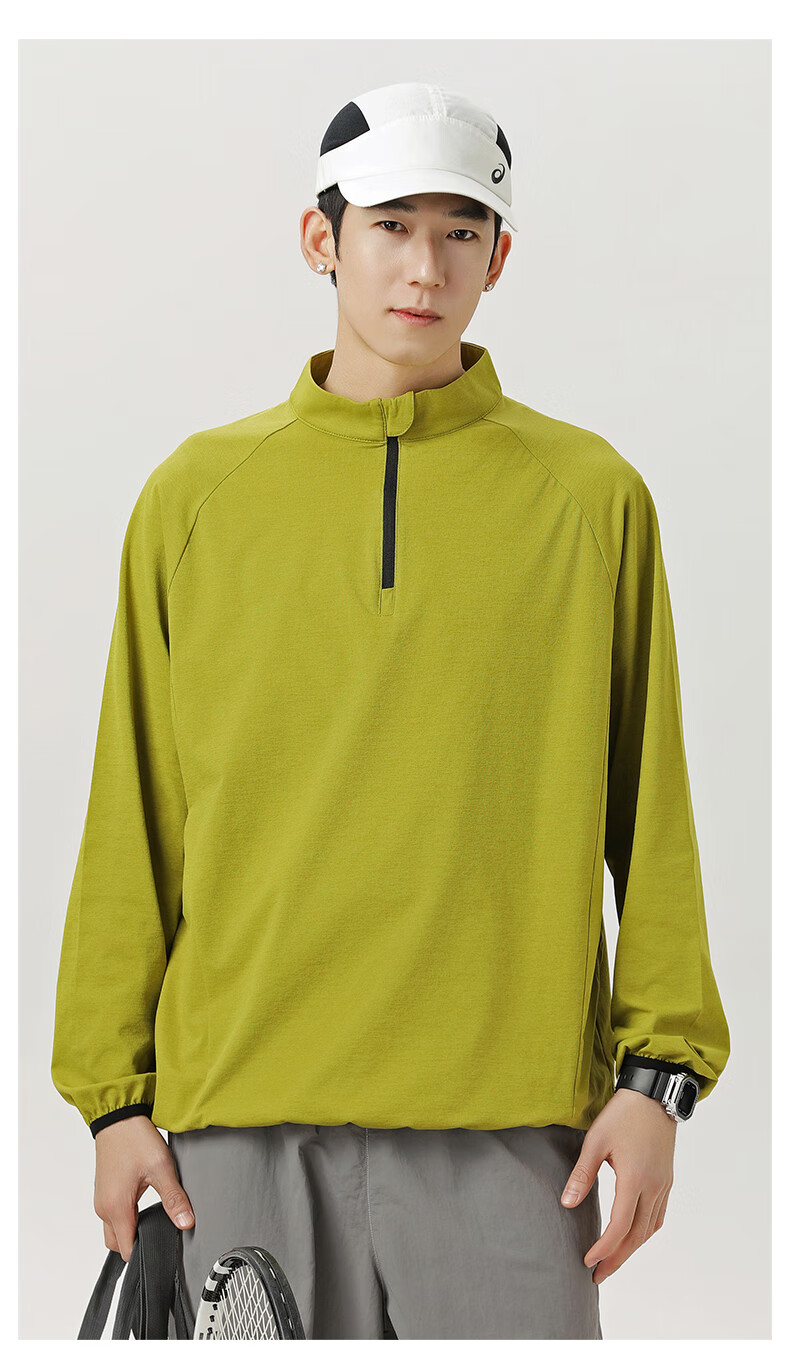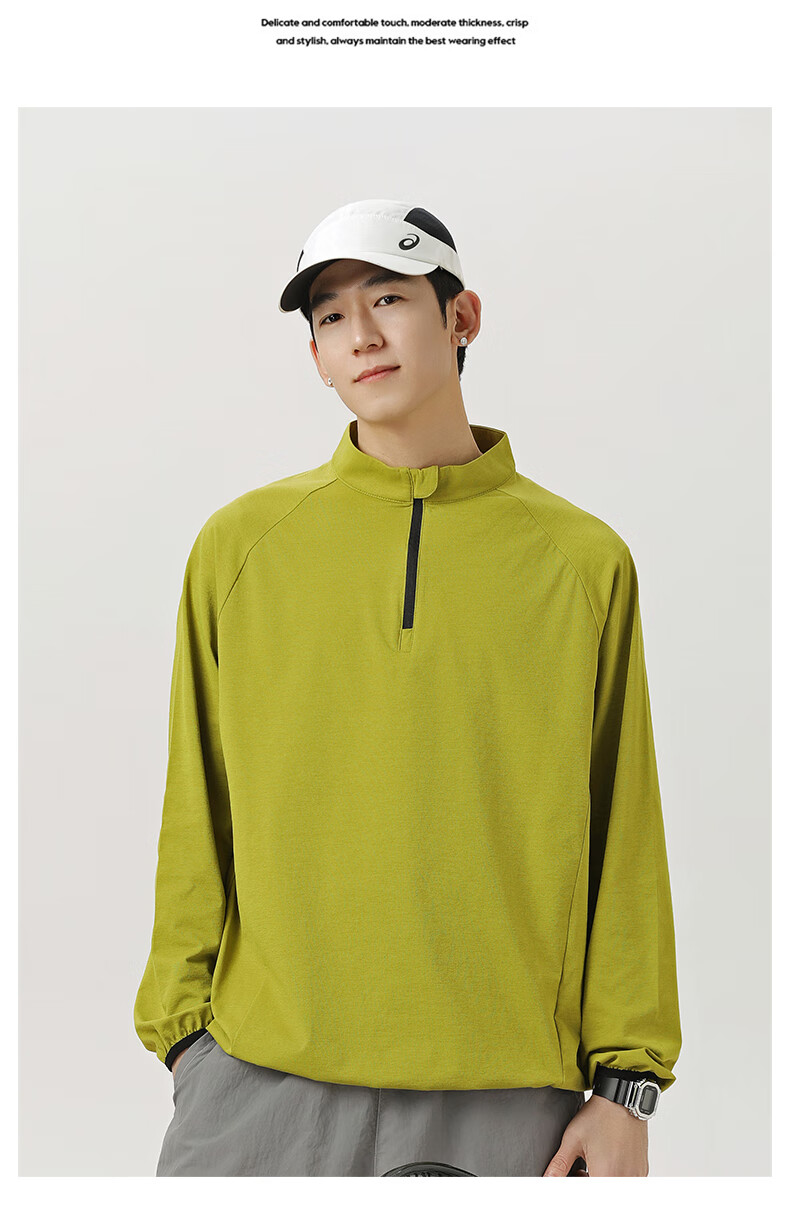 JEEP SPIRIT sports long-sleeved men's spring and summer breathable quick-drying half-zip T-shirt men's outdoor training sports top cycling jersey light gray M