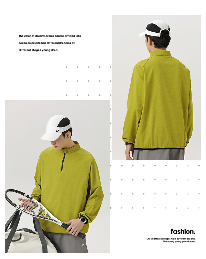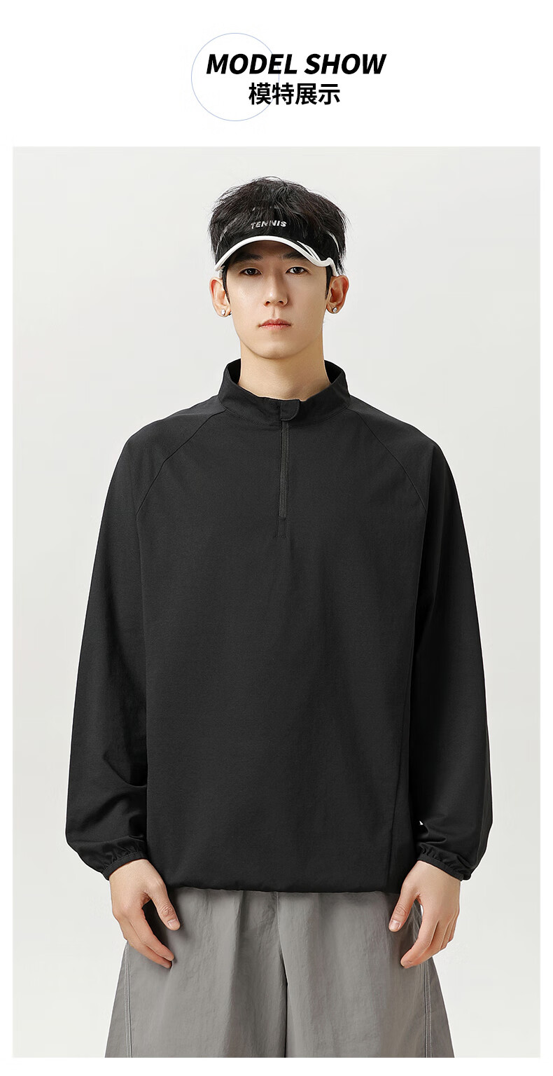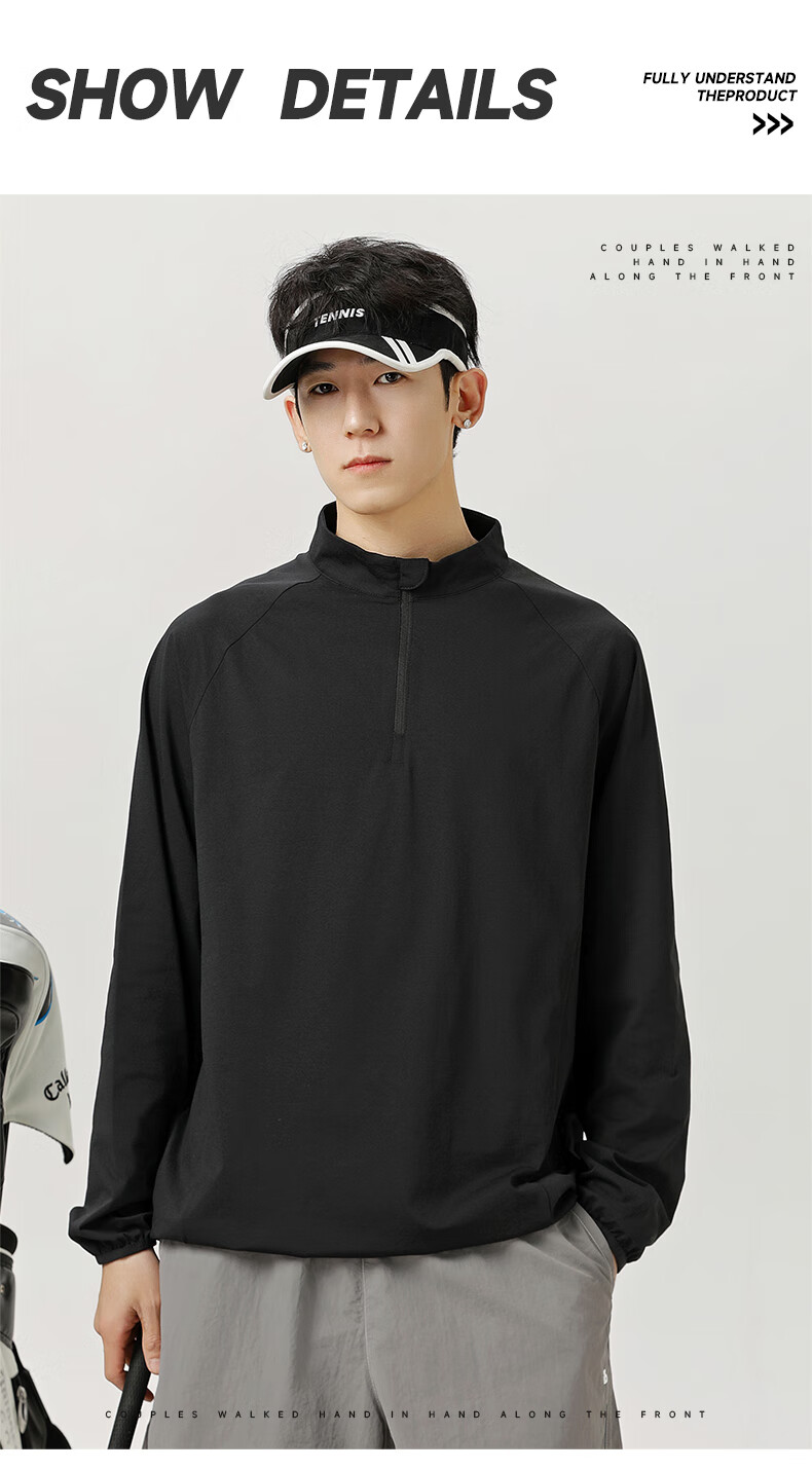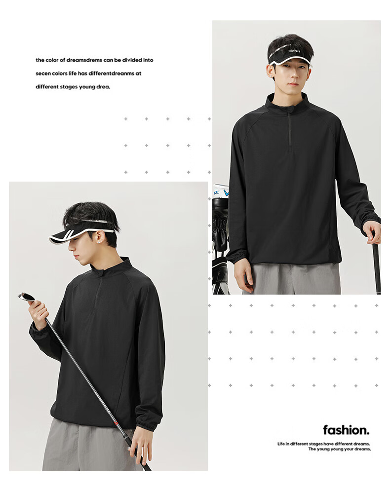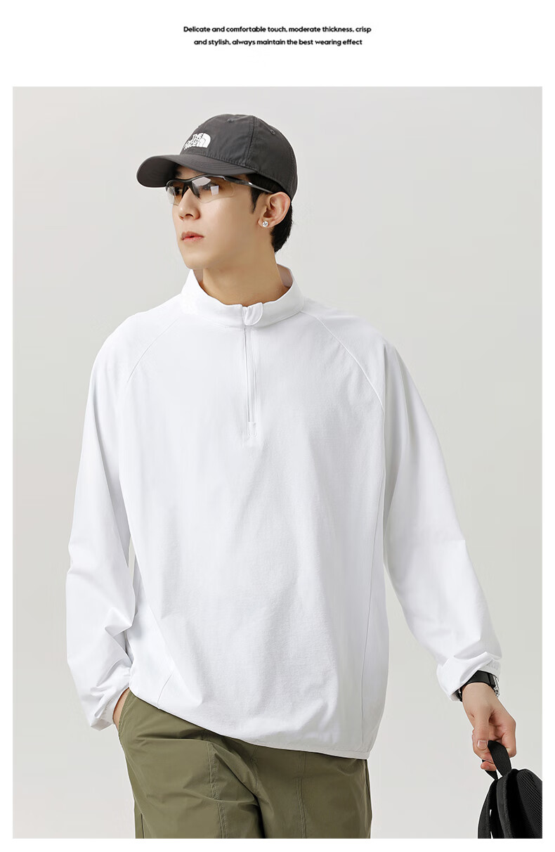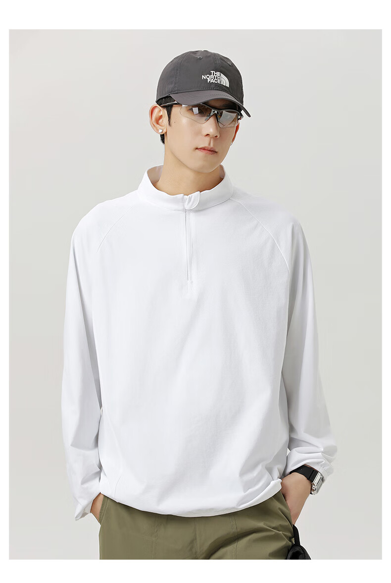JEEP SPIRIT sports long-sleeved men's spring and summer breathable quick-drying half-zip T-shirt men's outdoor training sports top cycling jersey light gray M