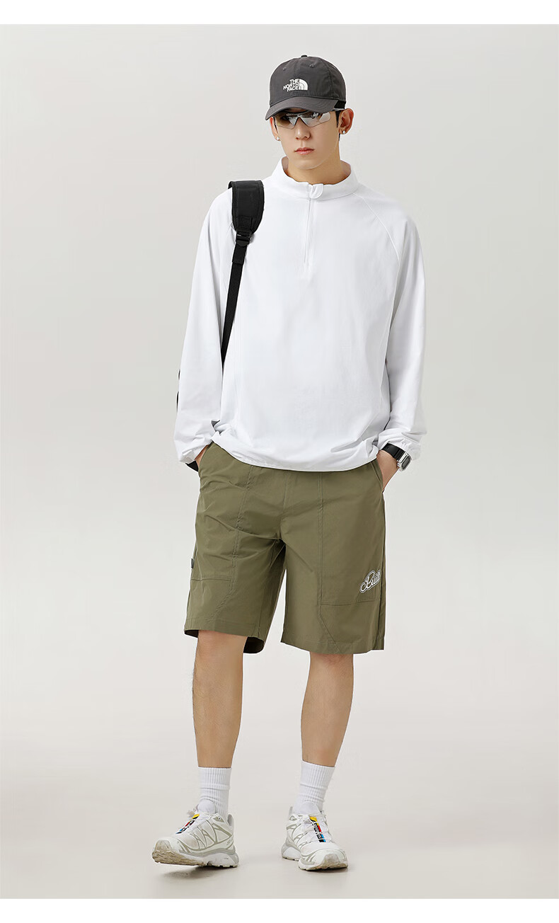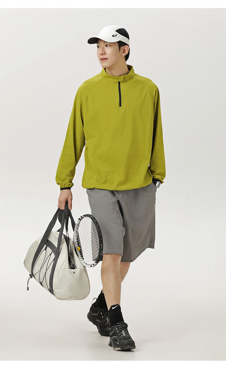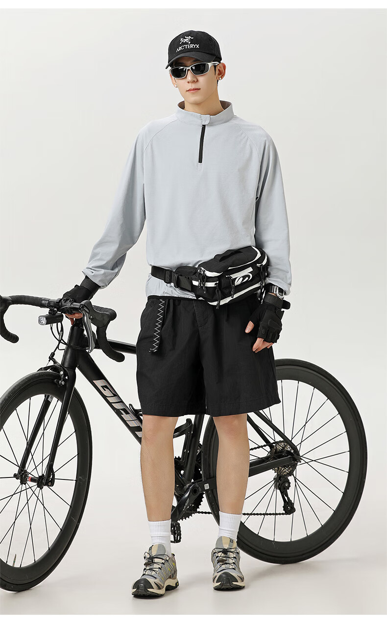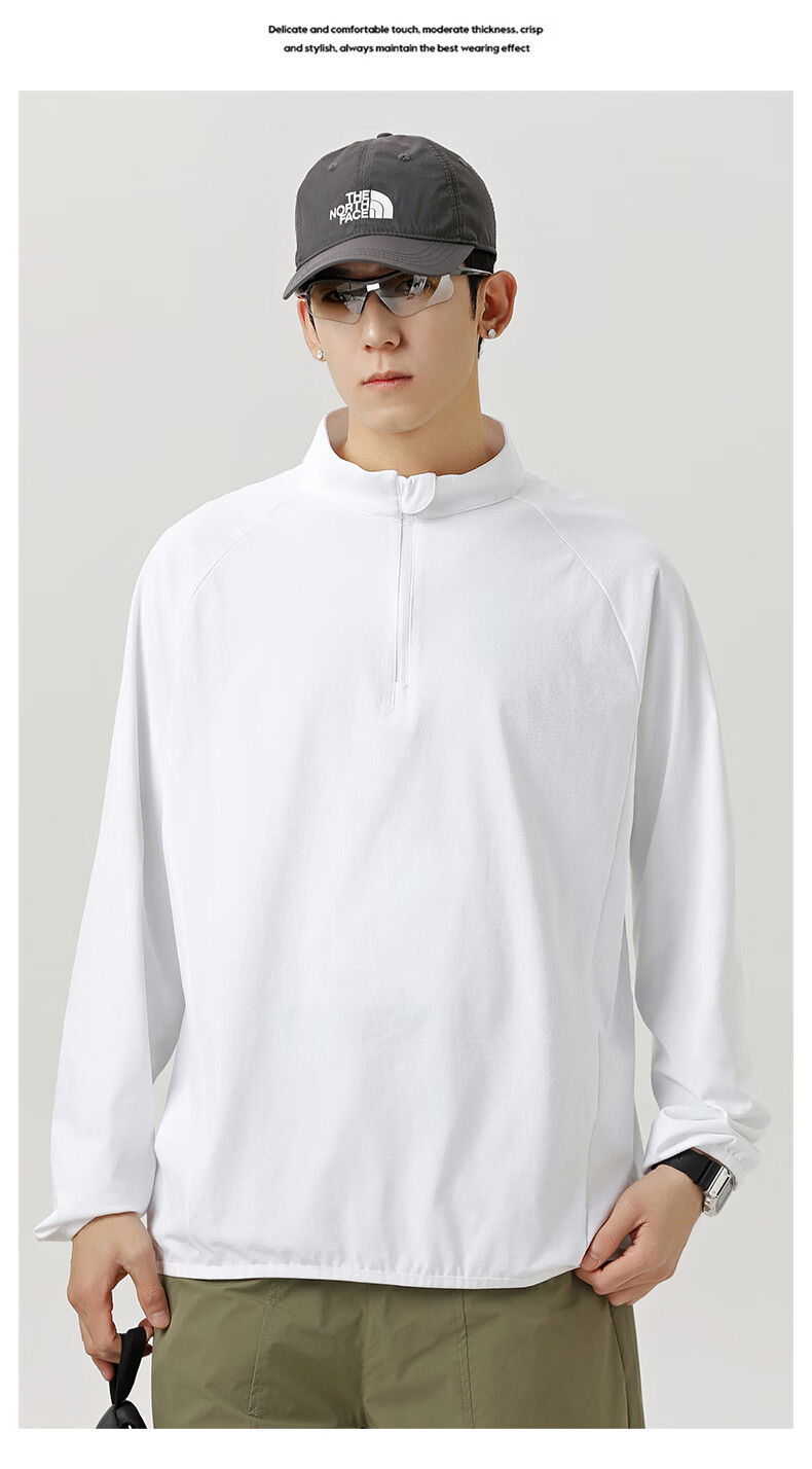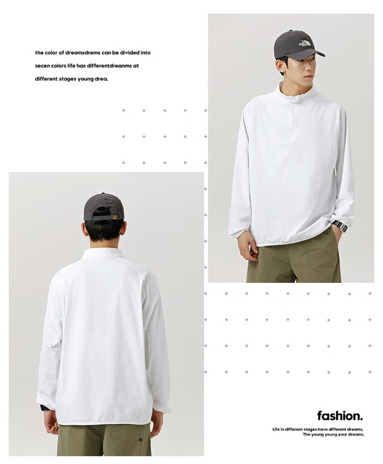 JEEP SPIRIT sports long-sleeved men's spring and summer breathable quick-drying half-zip T-shirt men's outdoor training sports top cycling jersey light gray M
