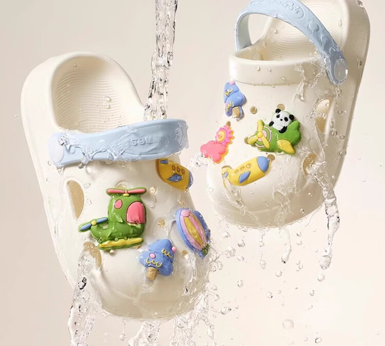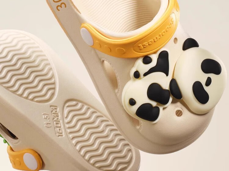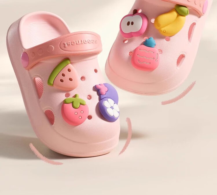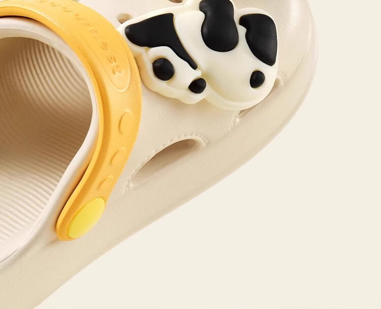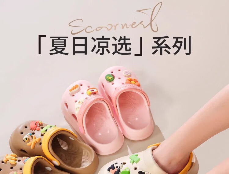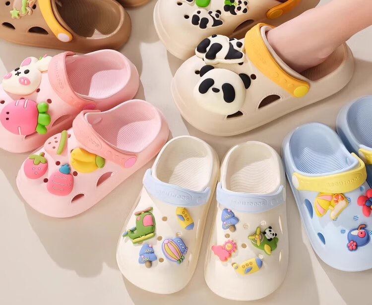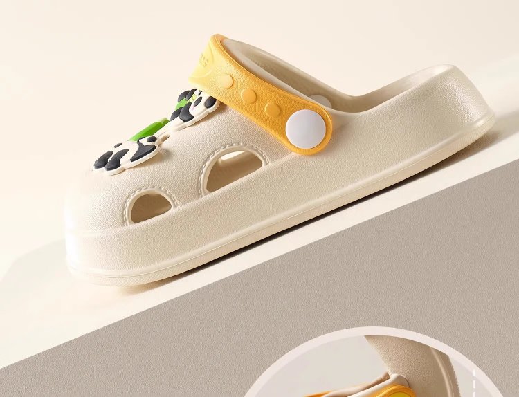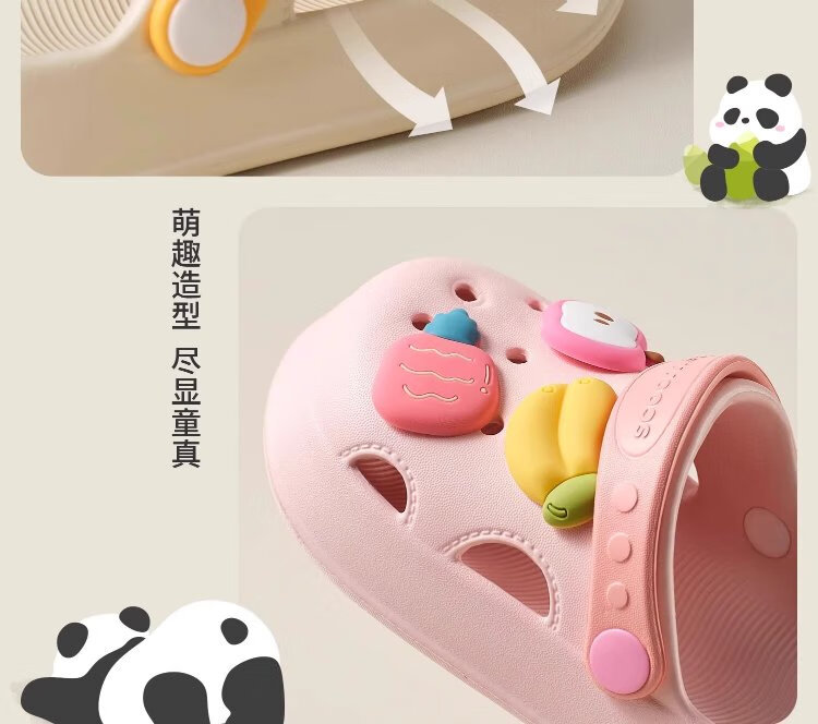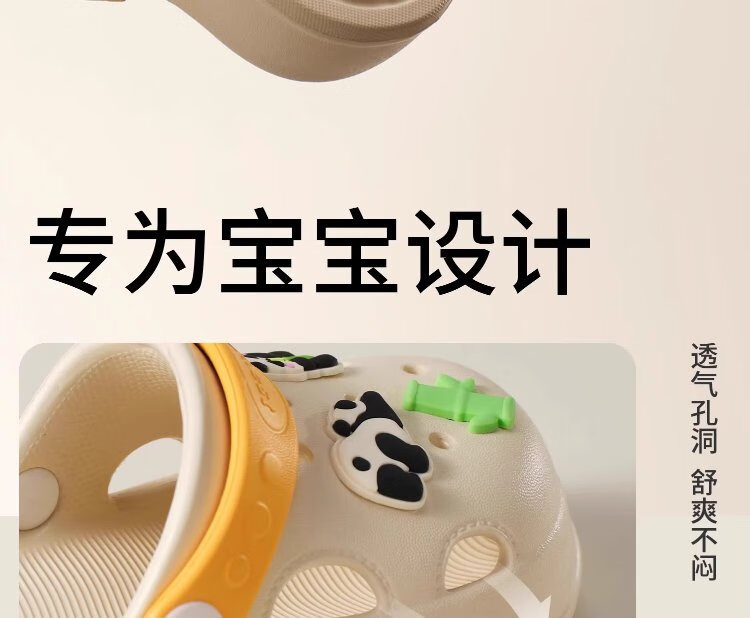 Kechao Kechao Children's Croc Shoes Summer Baby Infants and Toddlers Indoor Household Boys and Girls Baotou Soft Sole Anti-Slip Sandals Gray Shoe Shell + Chris Panda Buckle Label 14 cm ((Suitable for feet 13-14cm long))