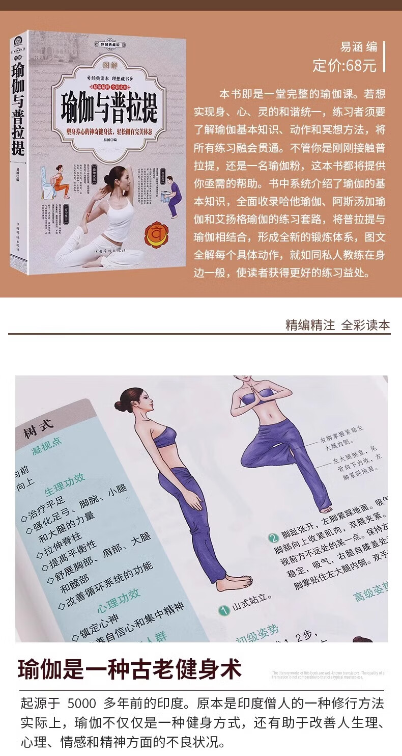 Genuine yoga and Pilates full-color illustrated Pilates tutorial Iyengar yoga book for beginners from novice to expert women's weight loss and body shaping zero-based tutorial fitness exercise book