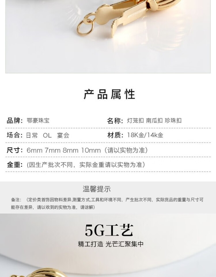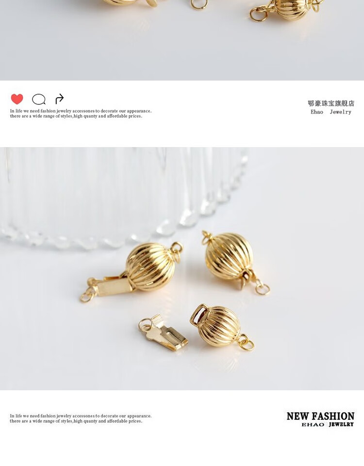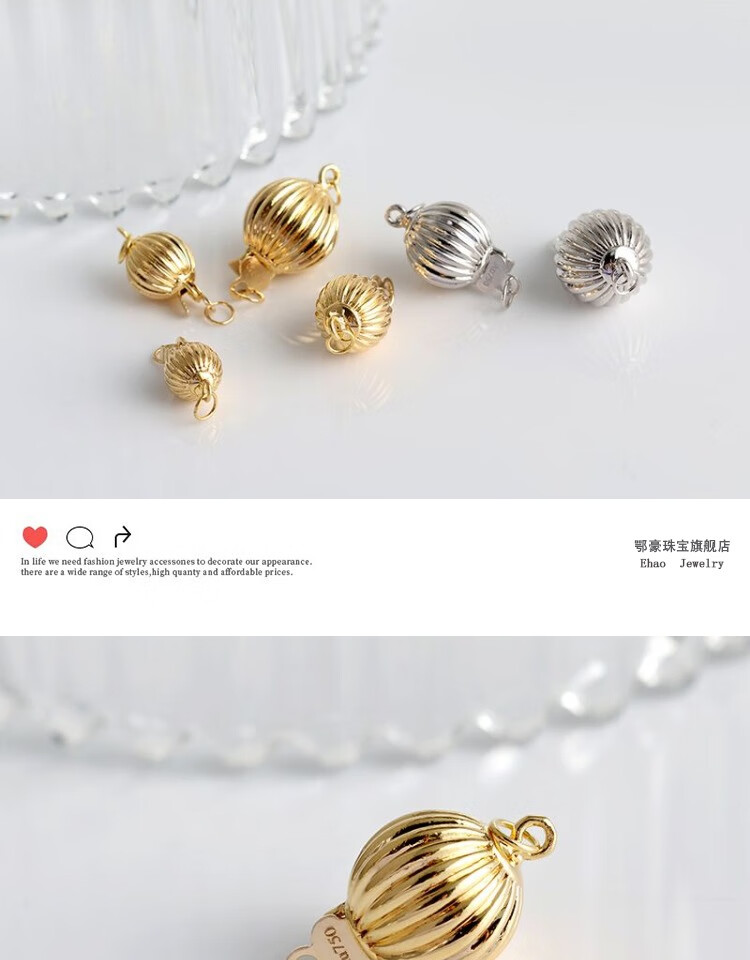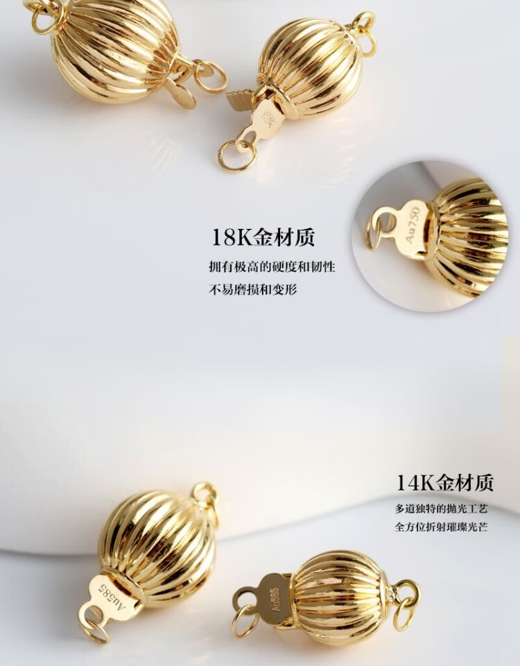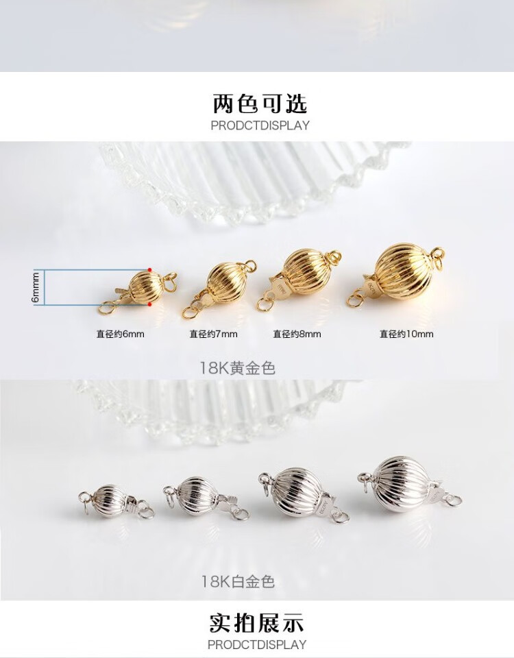 Juke 18k-14k gold accessories pearl buckle head k gold lantern buckle DIY handmade beaded gold necklace buckle bracelet connection buckle 18K yellow 8mm 0.41g or so