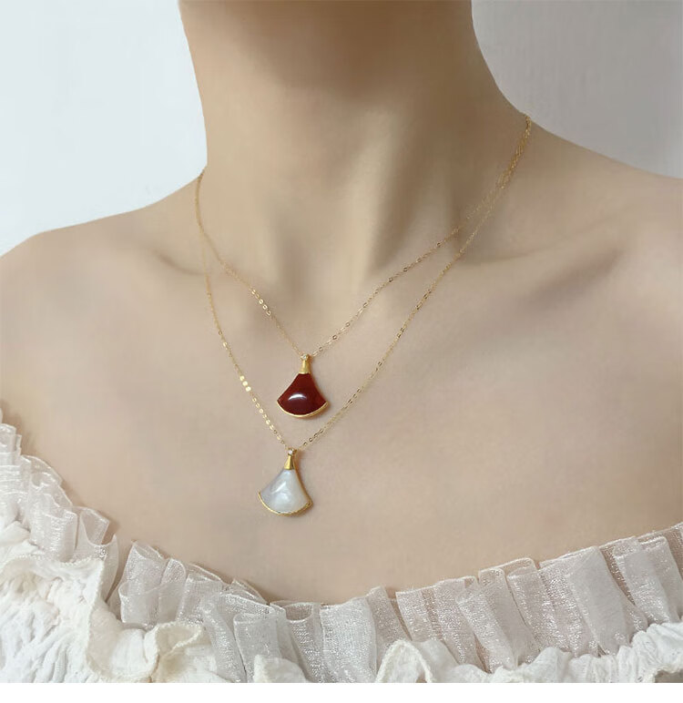 Juke 18K gold mini skirt pendant color gold rose gold gold pendant fan clavicle chain necklace women au750 rose gold white mother-of-pearl pendant + 18K gold chain