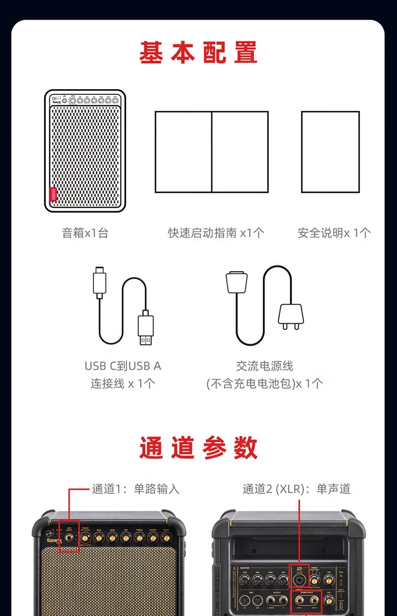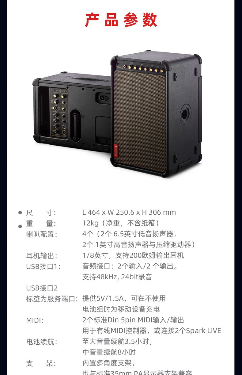 Positive Grid Spark LIVE Speaker Street Show Electric Guitar Bass Guitar Outdoor Playing and Singing Spark LIVE comes standard with original rechargeable battery