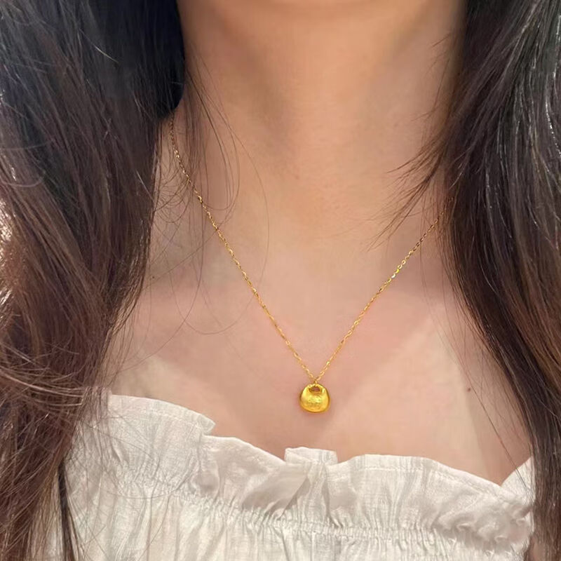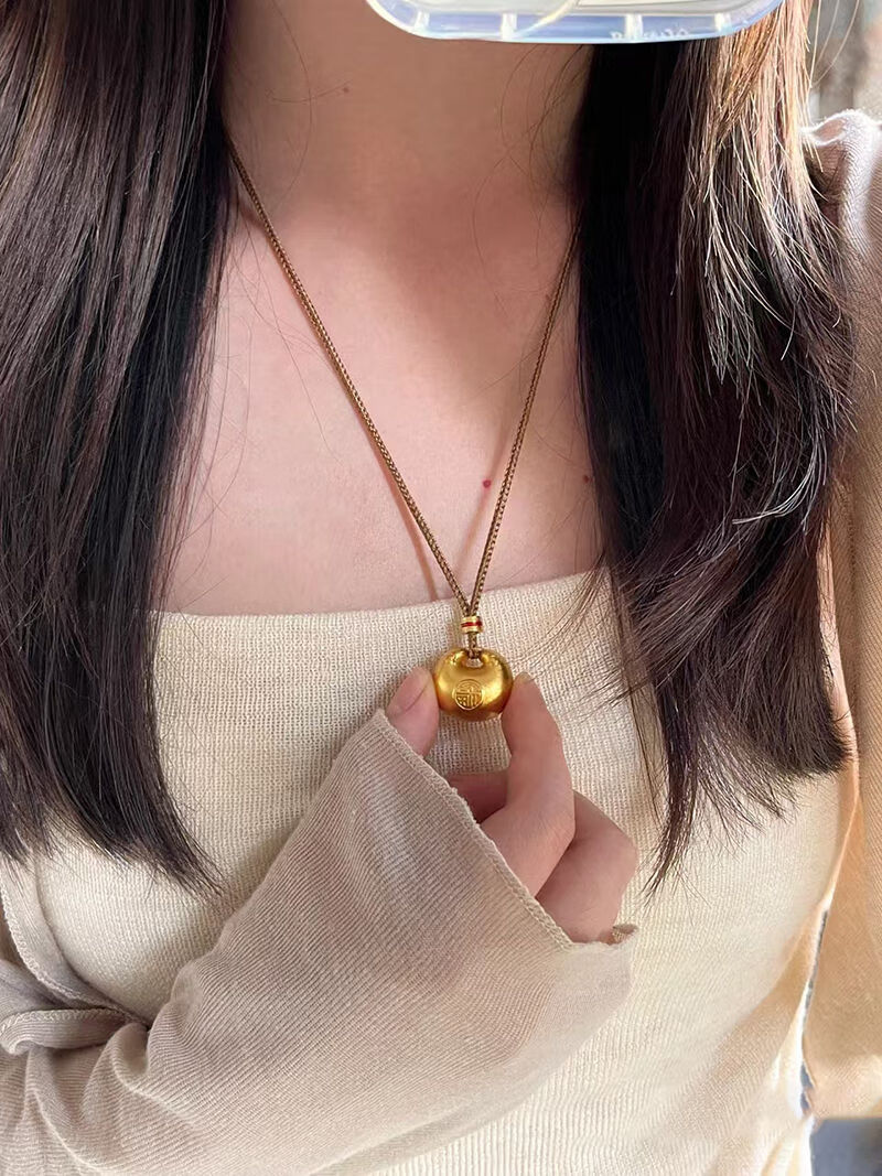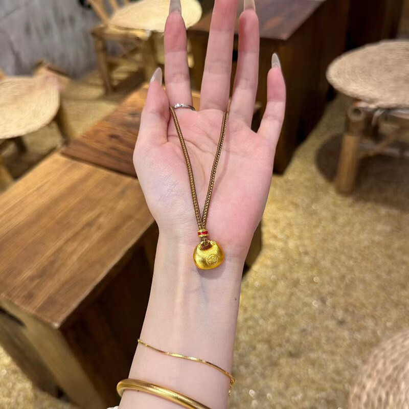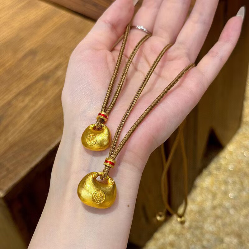 Juke's new 18K Fat Fu Gold Baby Small Jin Tuo Pendant Peace Lock Necklace 3D Hard Gold Baifu Pendant for Gifts Premium Small Fat Fu Pendant + Black Rope