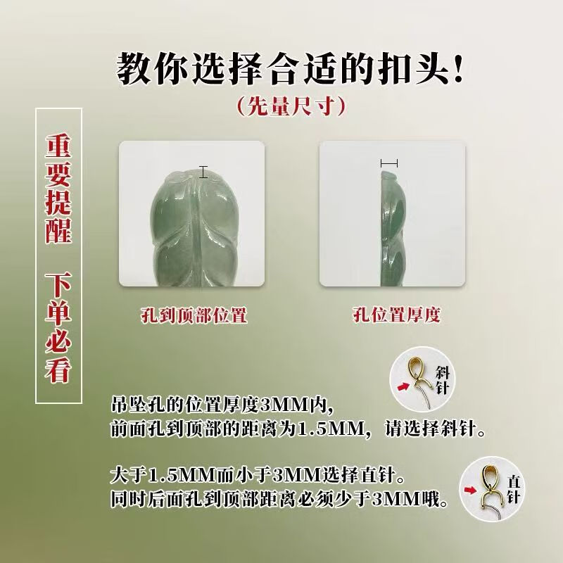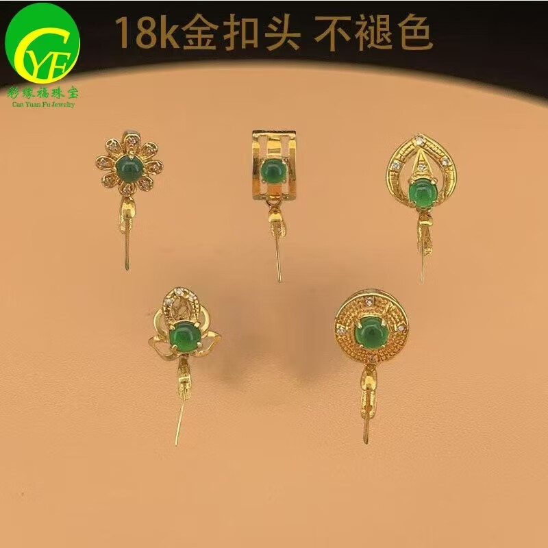 Juke 18K gold buckle head emerald top bead and jade pendant enlarged diamond melon seed buckle Guanyin Buddha pendant gold oblique hole clip buckle No. 2 gold color straight hole