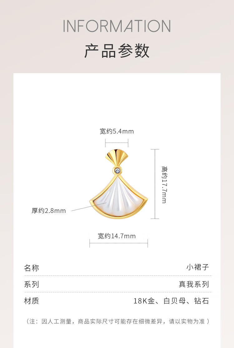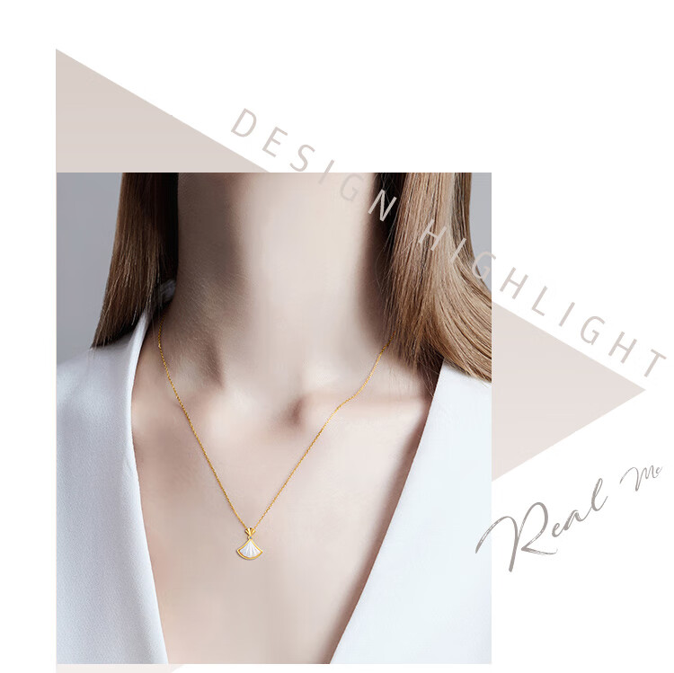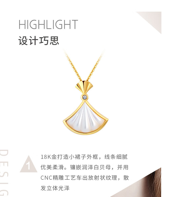 Juke Dada Jewelry 18K Gold Diamond White Shell Pendant Small Skirt Fashionable Sweet Neck Jewelry Gift for Girlfriend or Wife 18K Gold Diamond White Shell Pendant