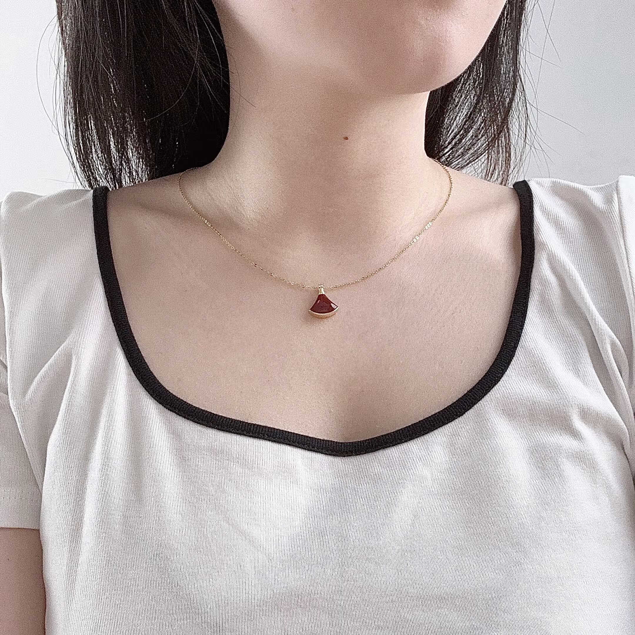 Juke 18K gold mini skirt rose gold pendant au750 color gold gold clavicle chain chain female birthday gift 18k gold rose gold (pendant + 18K gold necklace) mini skirt (red agate)