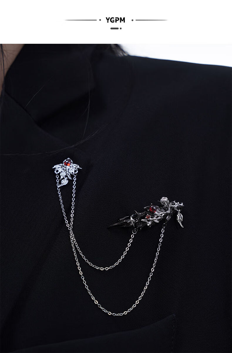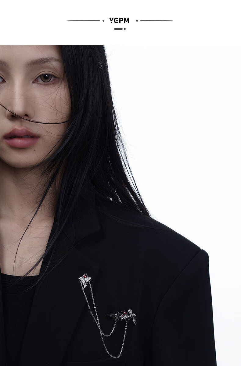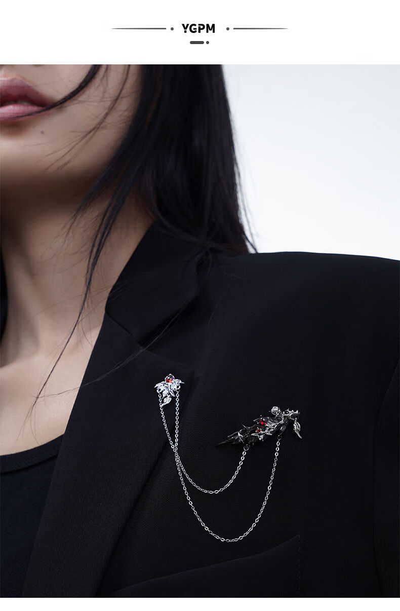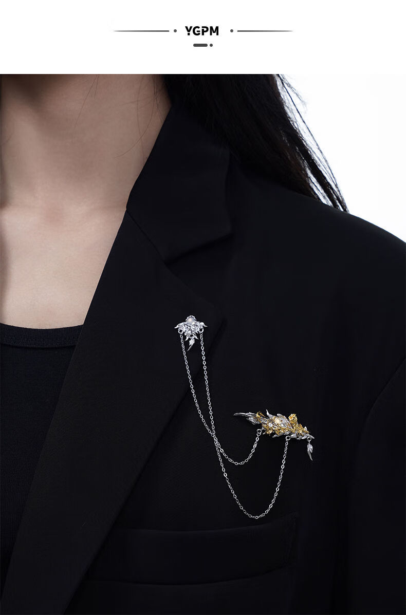 Kuang Yi Huayu student feather brooch, high-end exquisite fashion design, niche women's suit embellishment accessories, black feather brooch