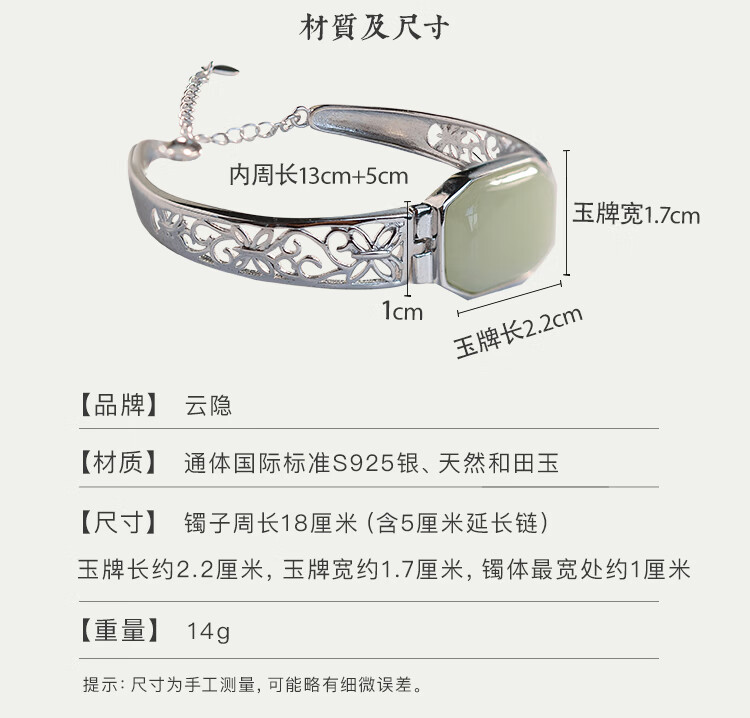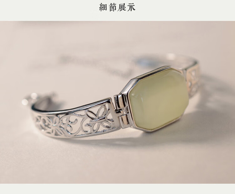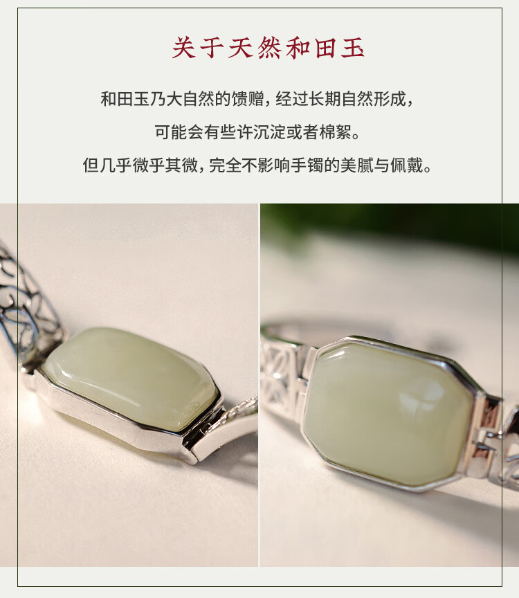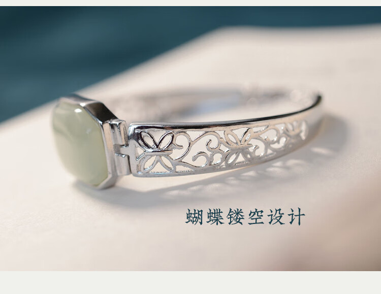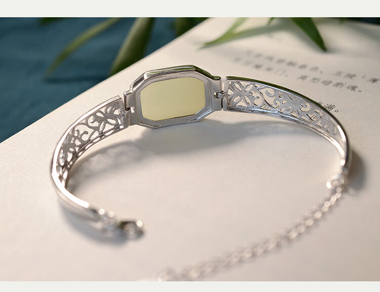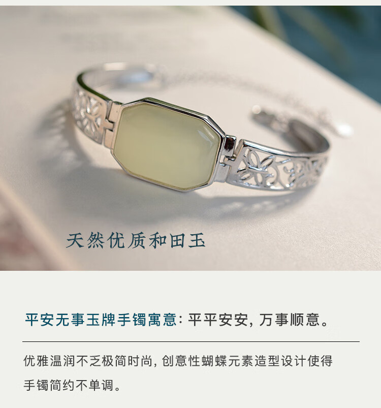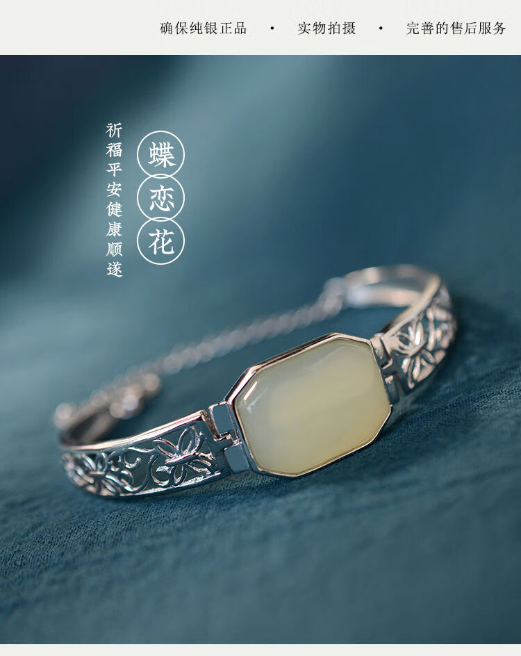 Mo Qianxue Ping An Wu Shi brand 925 silver hollow bracelet new Chinese style Hetian jade bracelet jade bracelet open Chinese style half bracelet for women hollow Hetian jade bracelet