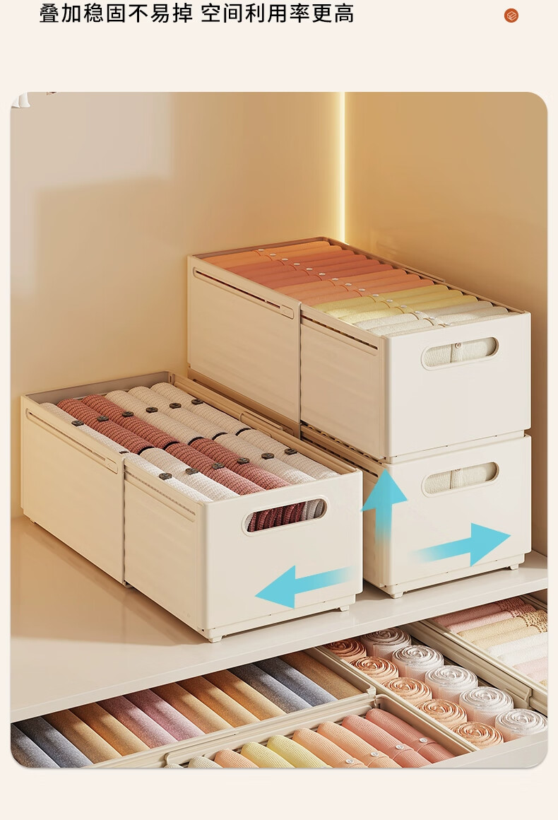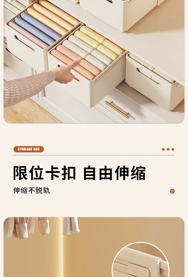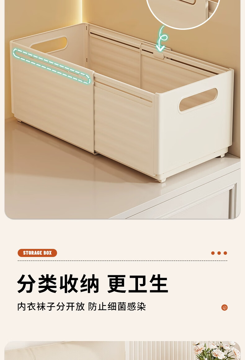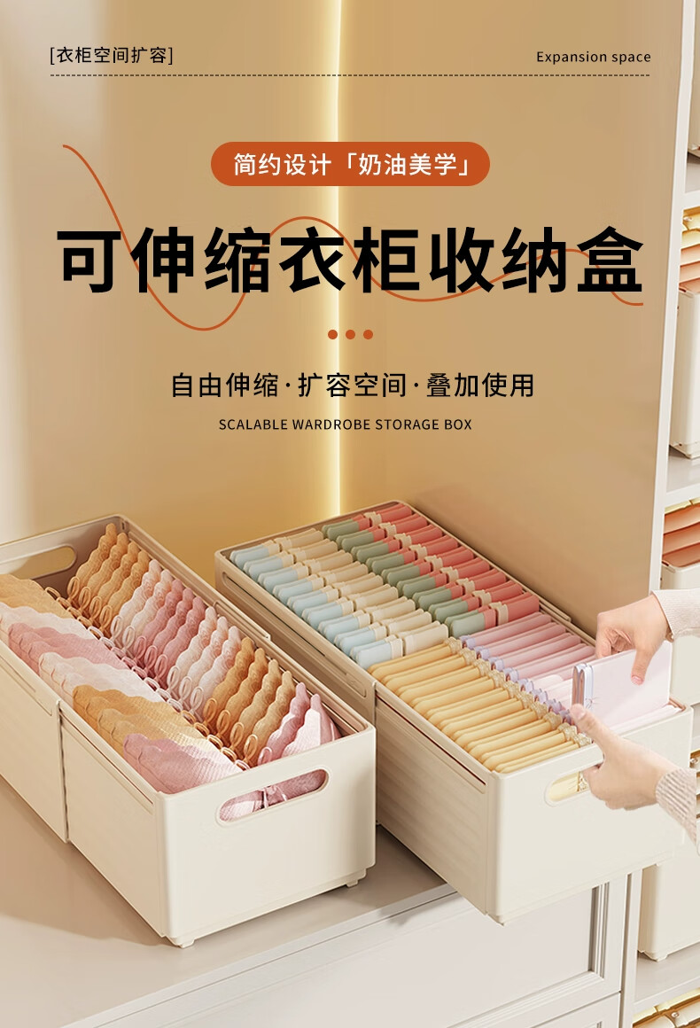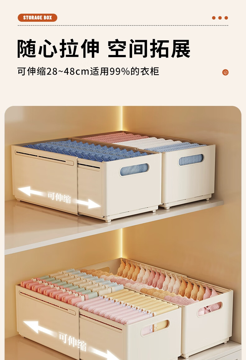 Youna Underwear Storage Box Retractable Socks and Underwear Organizer Long Box Clothes Compartment Wardrobe Layered Artifact Storage Box Medium Size - Cream White 1 Pack