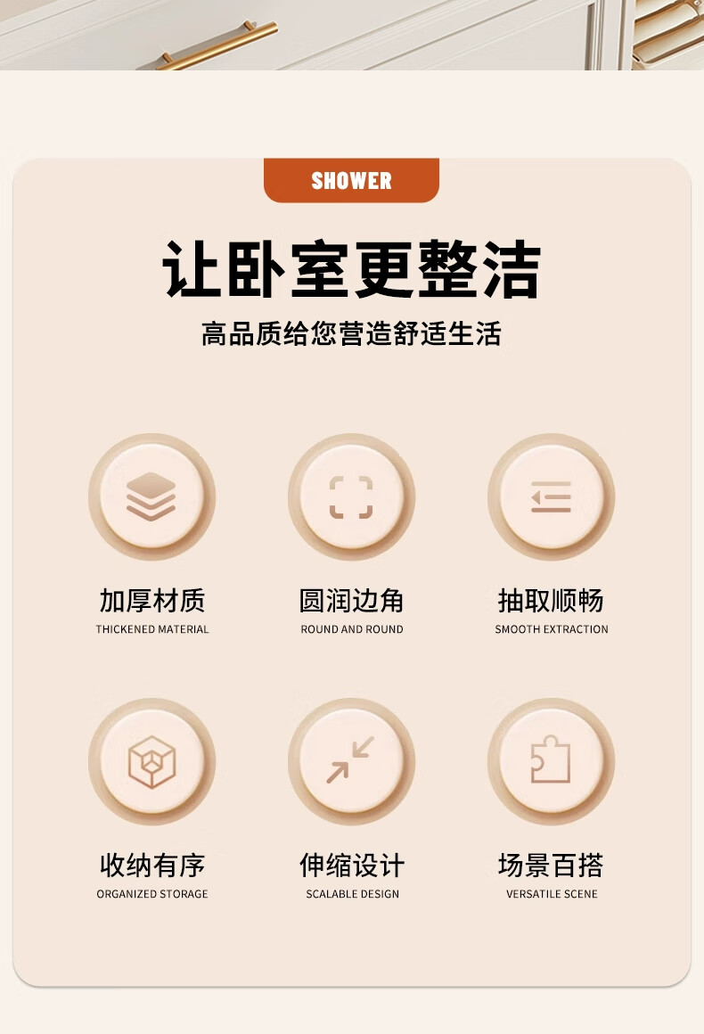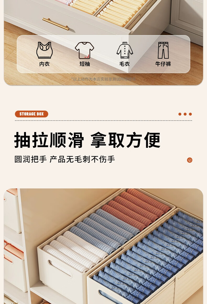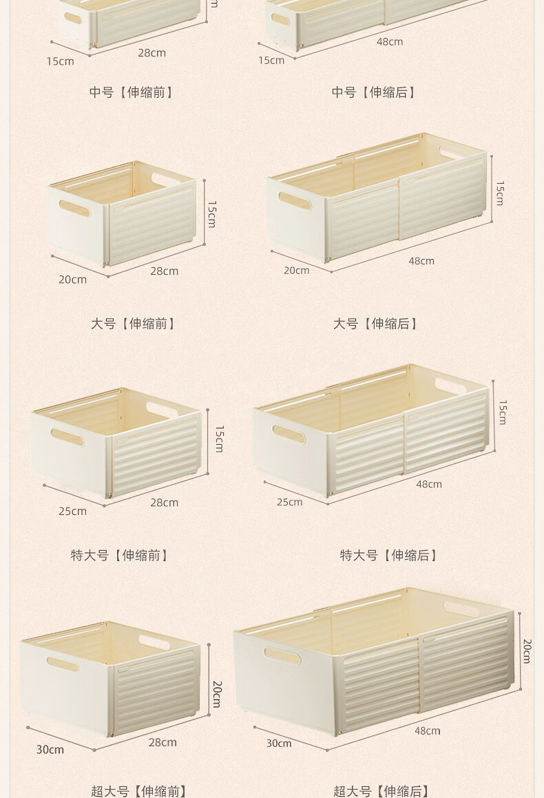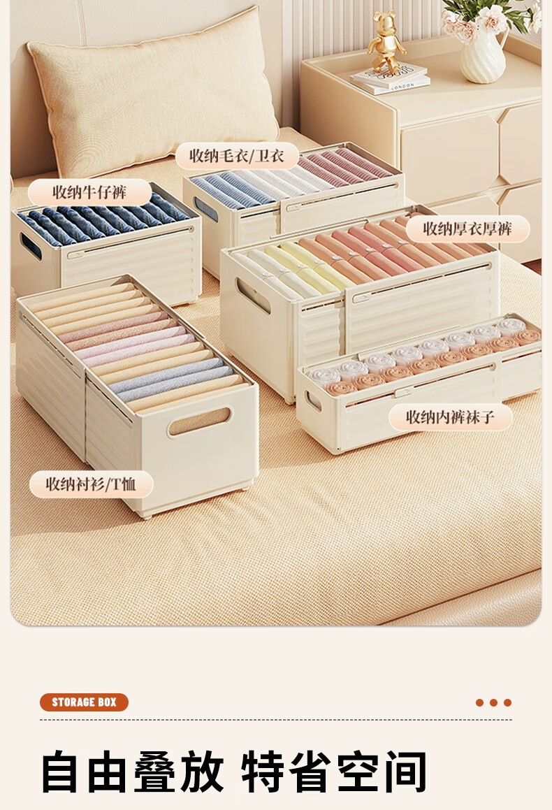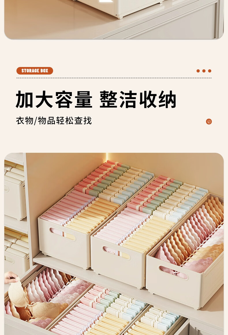Youna Underwear Storage Box Retractable Socks and Underwear Organizer Long Box Clothes Compartment Wardrobe Layered Artifact Storage Box Medium Size - Cream White 1 Pack