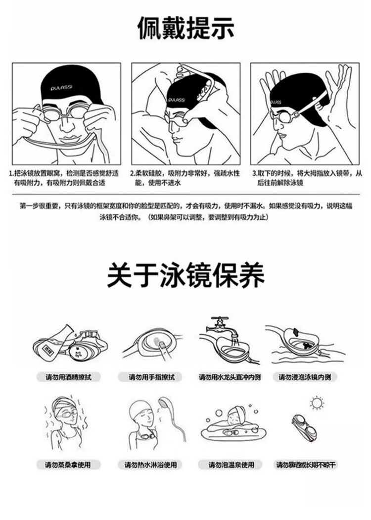 PULASSI Swimming Goggles for Men and Women Adult Professional Racing Set HD Anti-fog Waterproof Myopia Training Equipment Panda White + Swimming Cap + Nose Clip + Earplugs 600