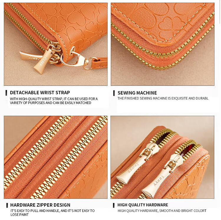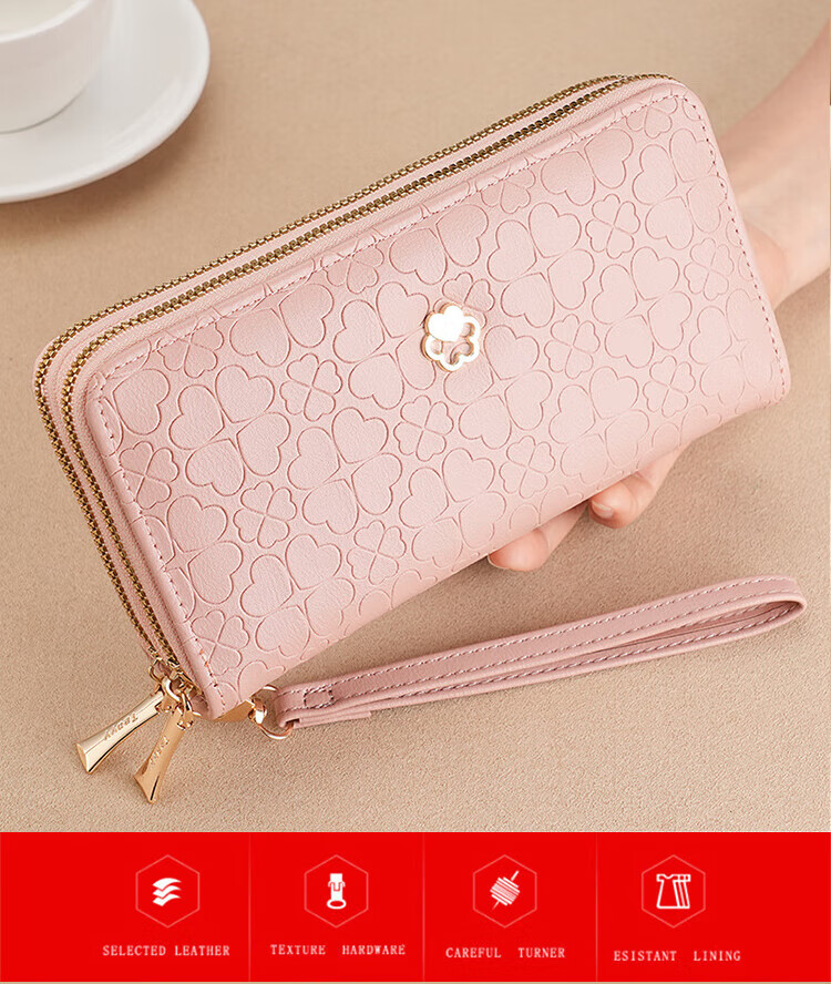Wan Jiazhen Women's Wallet Long Double Zipper Clutch Korean Style Fashion Wallet Large Capacity Versatile High-end Simple Wallet Double Pull Flower Long Wallet Women Pink