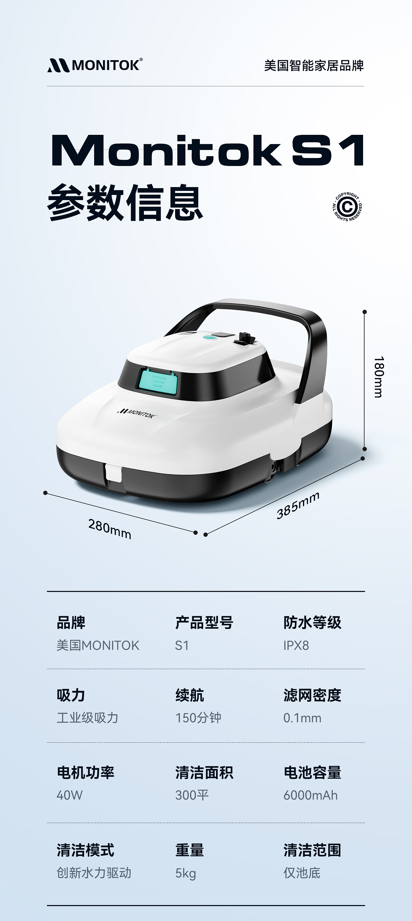 Monitok hot spring bathing center swimming pool sewage suction machine fully automatic cleaning robot filter turtle pool bottom underwater vacuum cleaner hot spring sewage suction machine / master model can climb the wall XL09