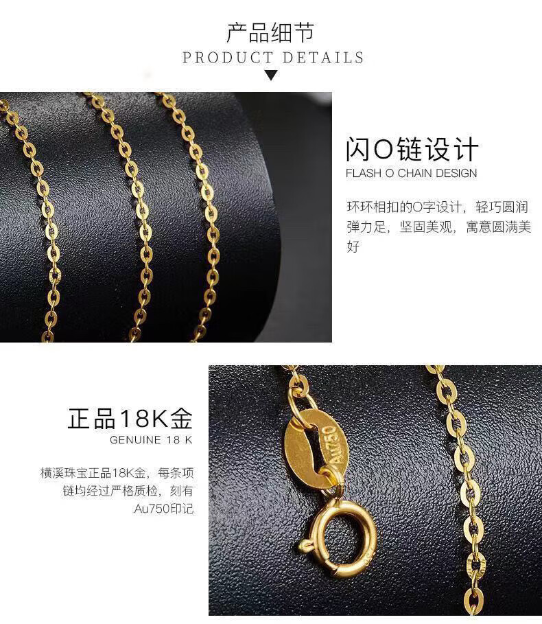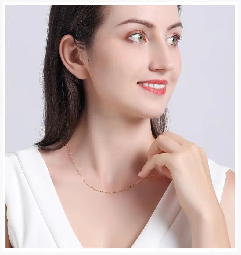 SHEMANDI 18K gold necklace women's O-shaped chain clavicle chain plain chain AU750 gold rose gold color gold K gold-red 0.8mm