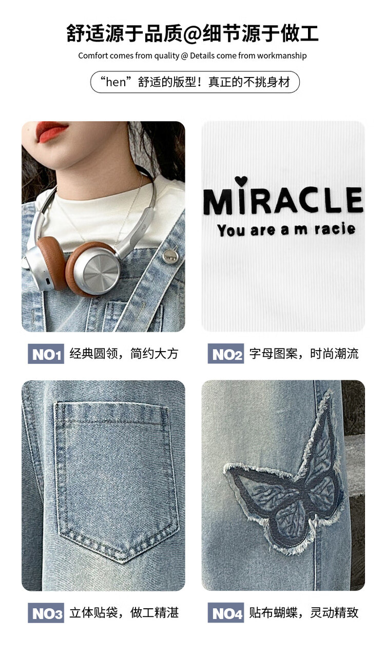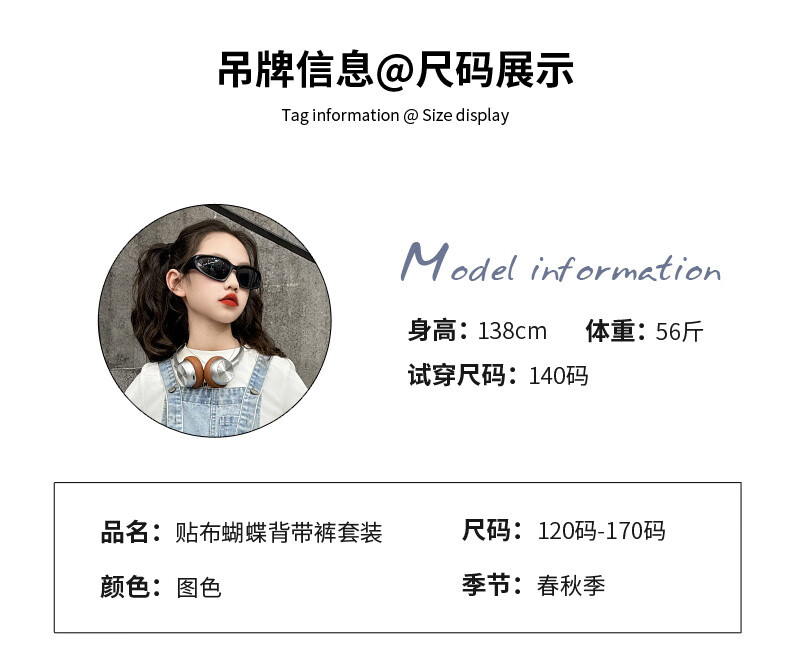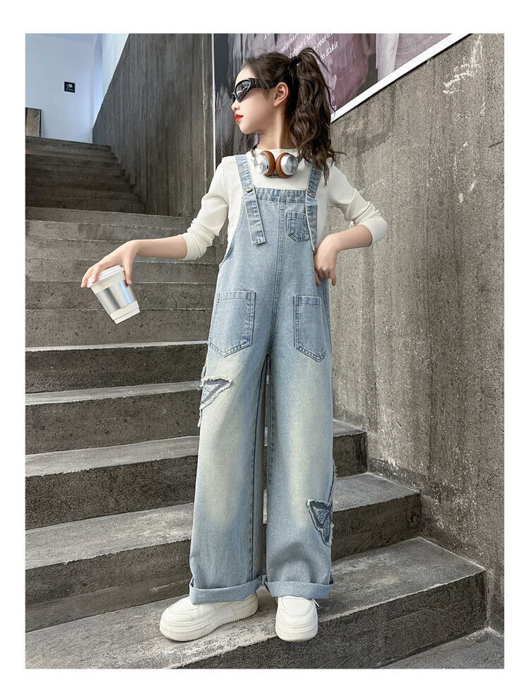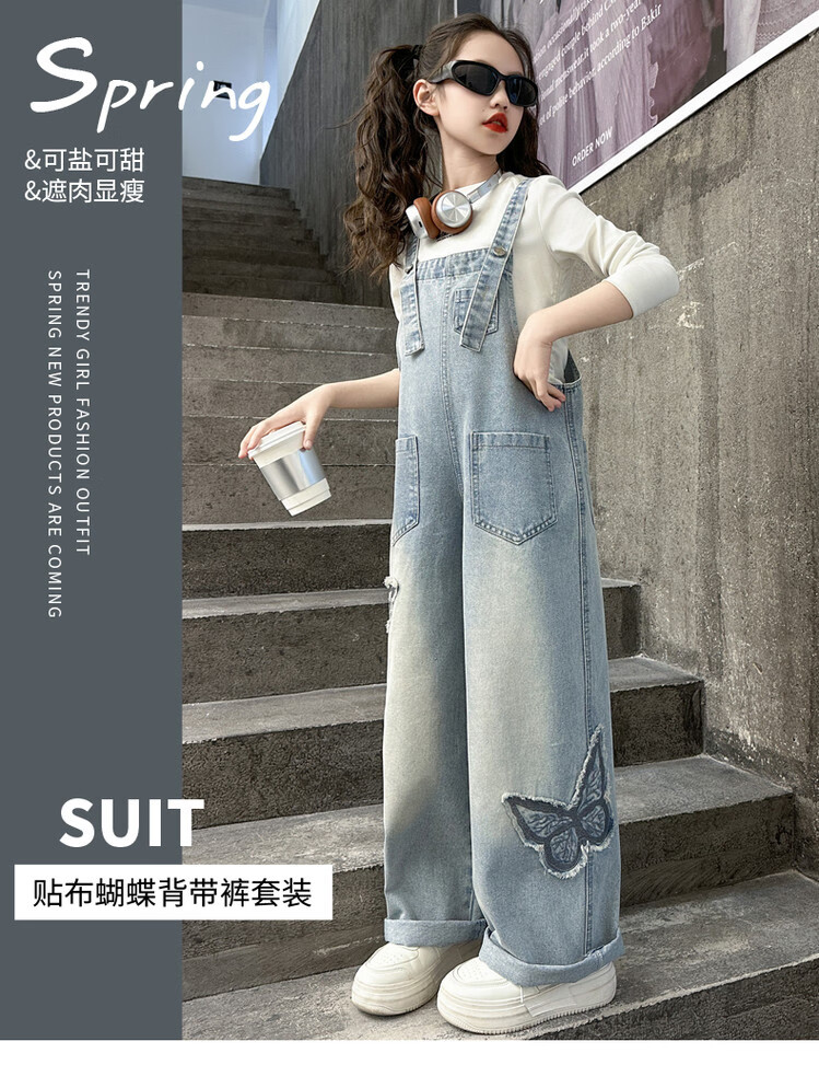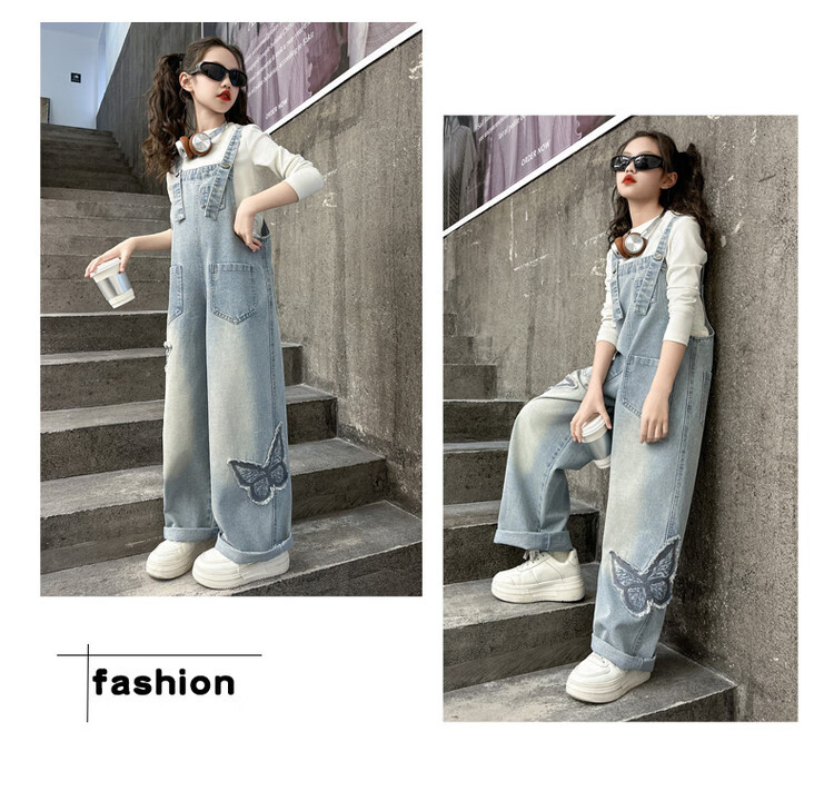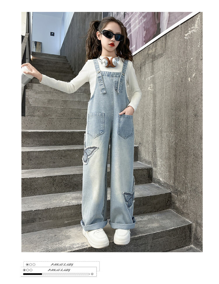 Disney (Disney) Girls Spring Pants 2025 New Style Wide Leg Pants Girls Straight Overalls Children's Clothing Spring Middle and Older Children Patch Butterfly Overalls 120 cm