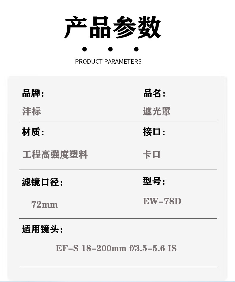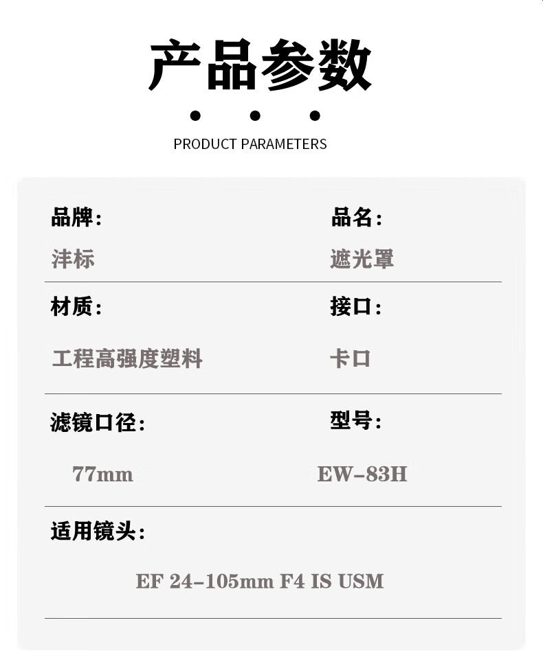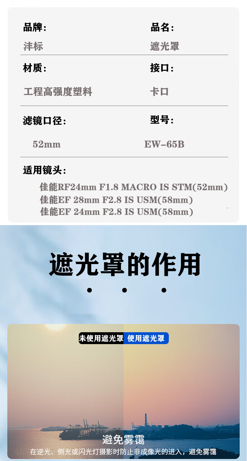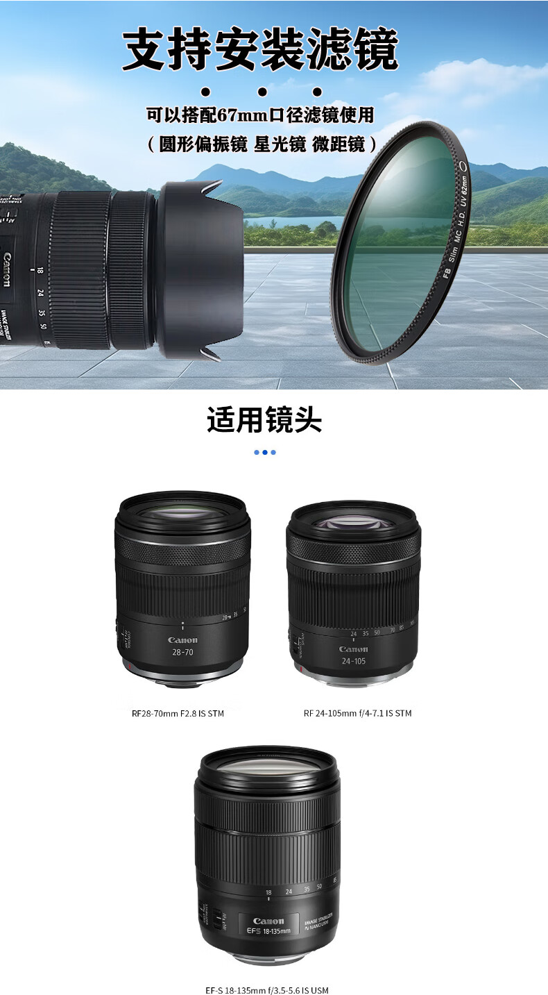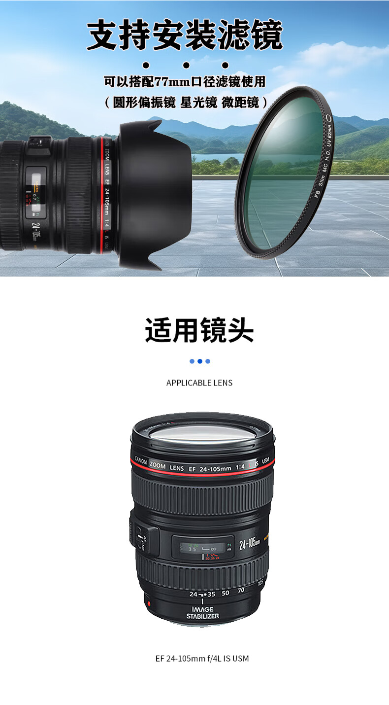 沣标(FB)相机镜头遮光罩适用佳能R52 R62 RF24-105mm RF100-400 RF85mmf2 RF24-50 EF 18-200 RF14-30mm EW-73D遮光罩(RF 24-105mmSTM)