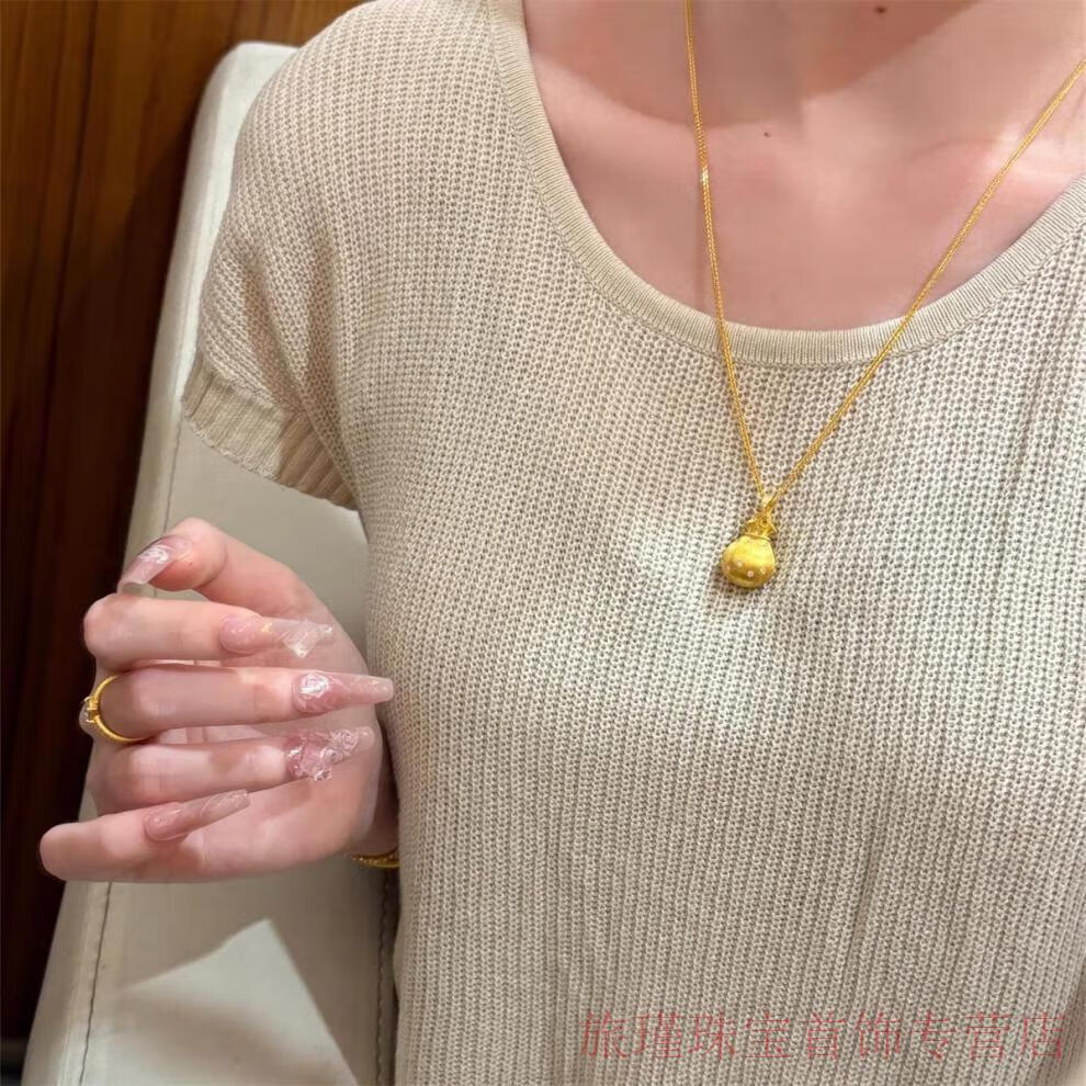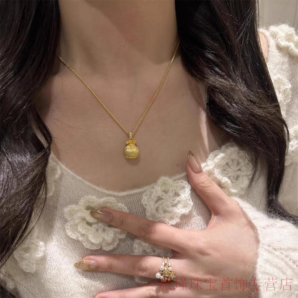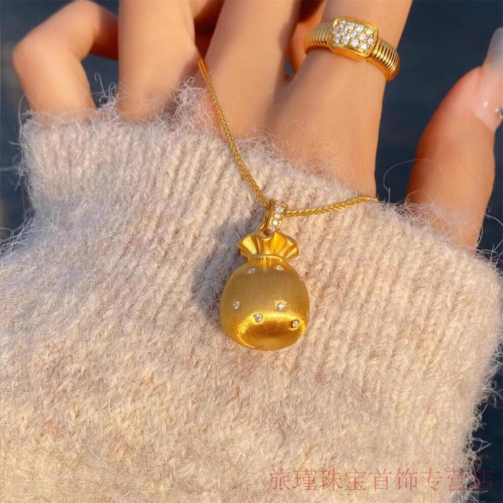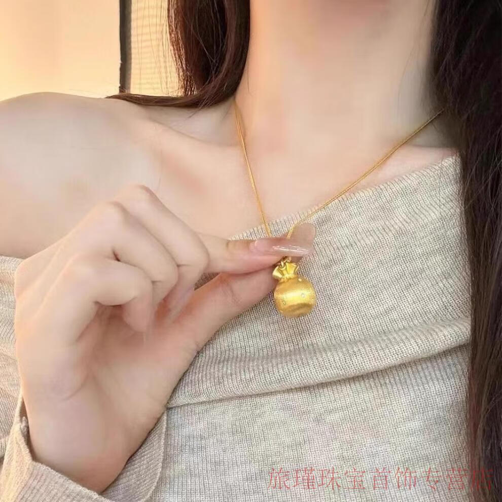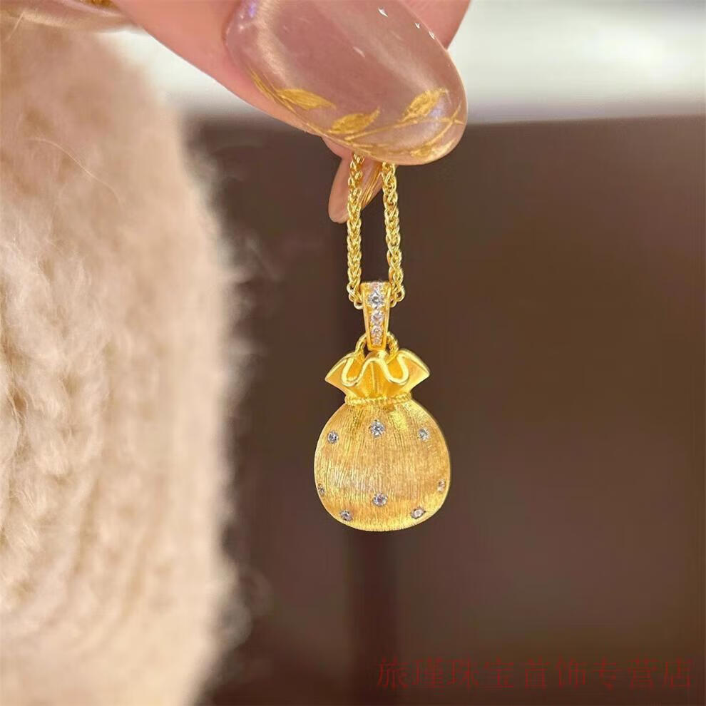 CAMPUSKINGLY Old Phoenix 999 gold sterling silver gold-plated brushed small lucky bag pendant necklace light luxury treasure clavicle chain brushed lucky bag necklace same style exquisite gift box gift giving
