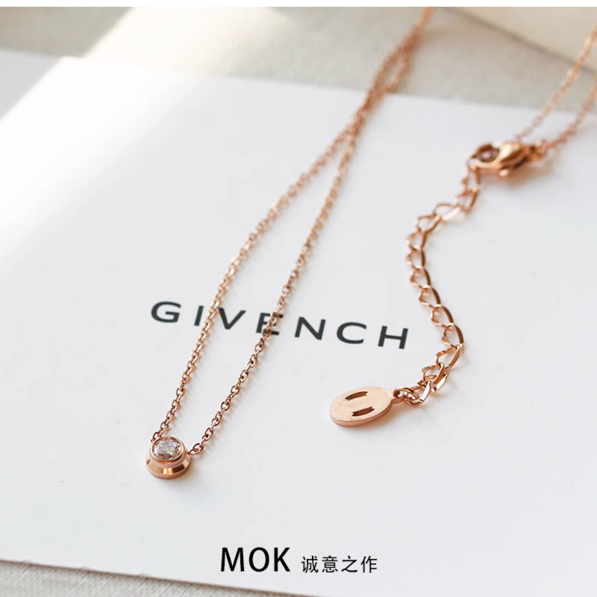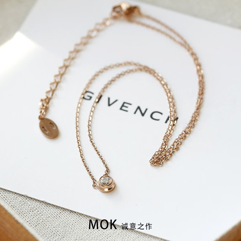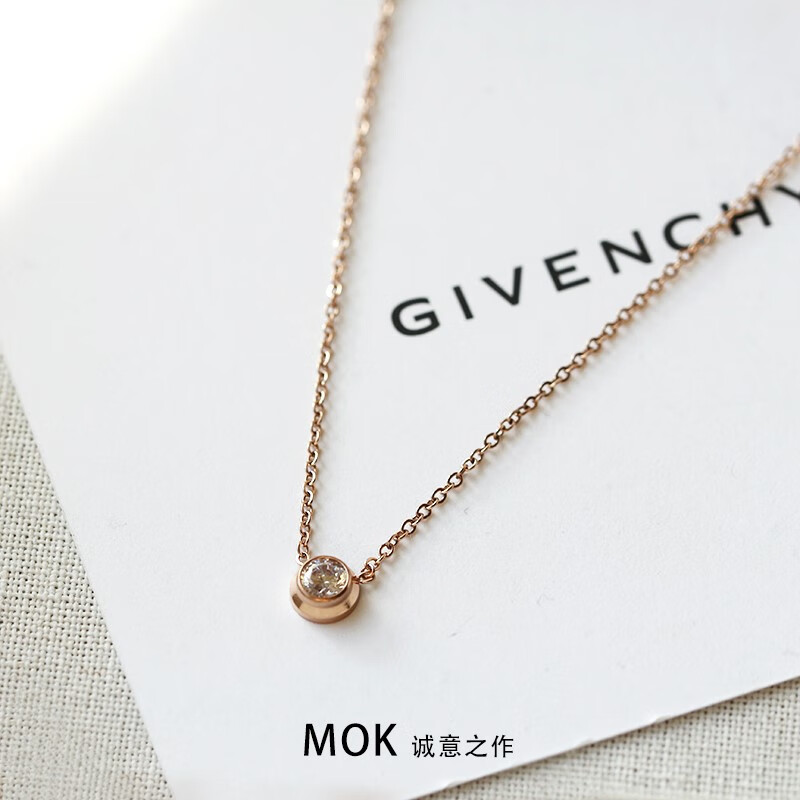 DRTE titanium steel 18k rose gold single diamond necklace for women, non-fading, exquisite and fine single diamond clavicle chain necklace gift