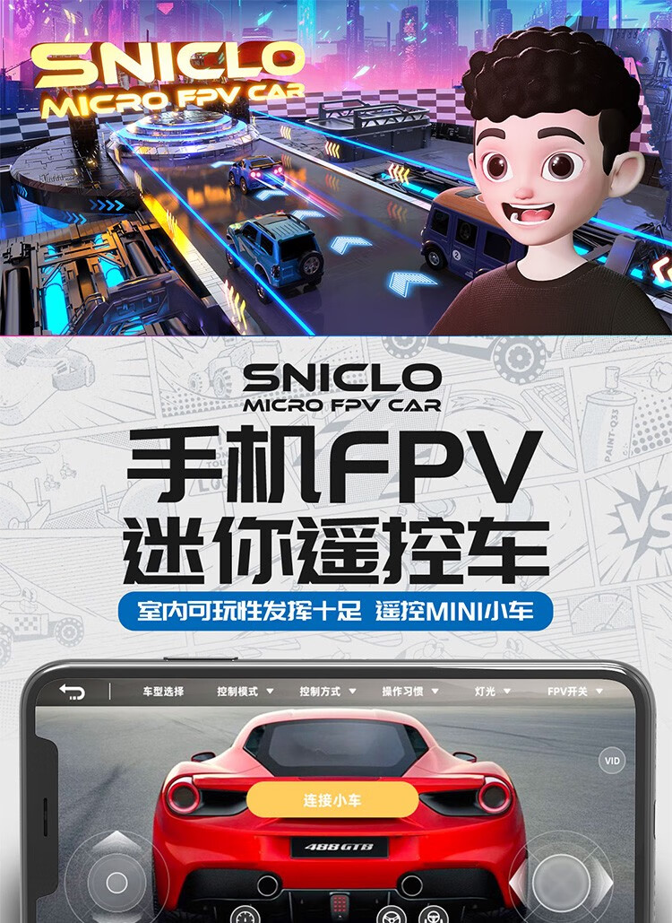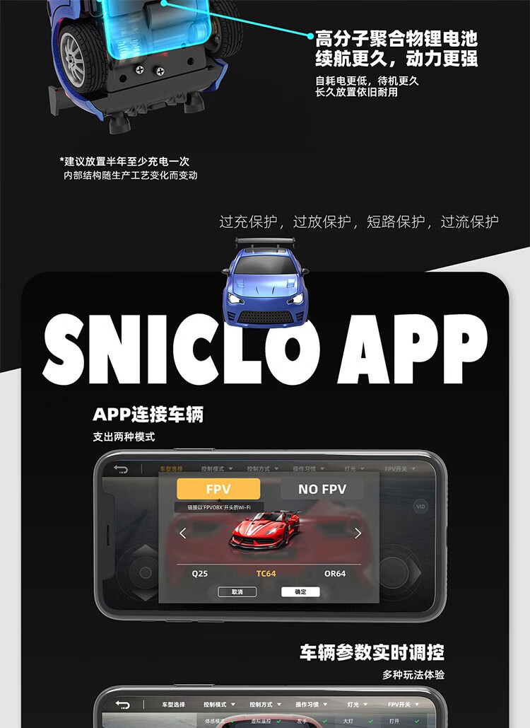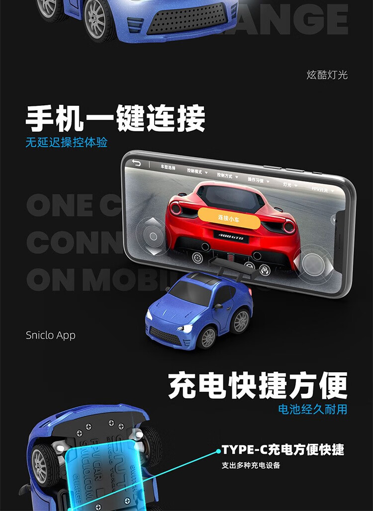Sisi Locke Mobile Phone FPV Remote Control Car Camera RC Immersive VR Personal Children Gift WIFI Midnight Black Official WiFi Version