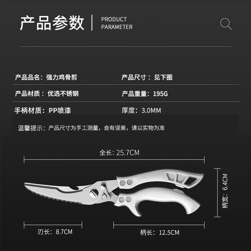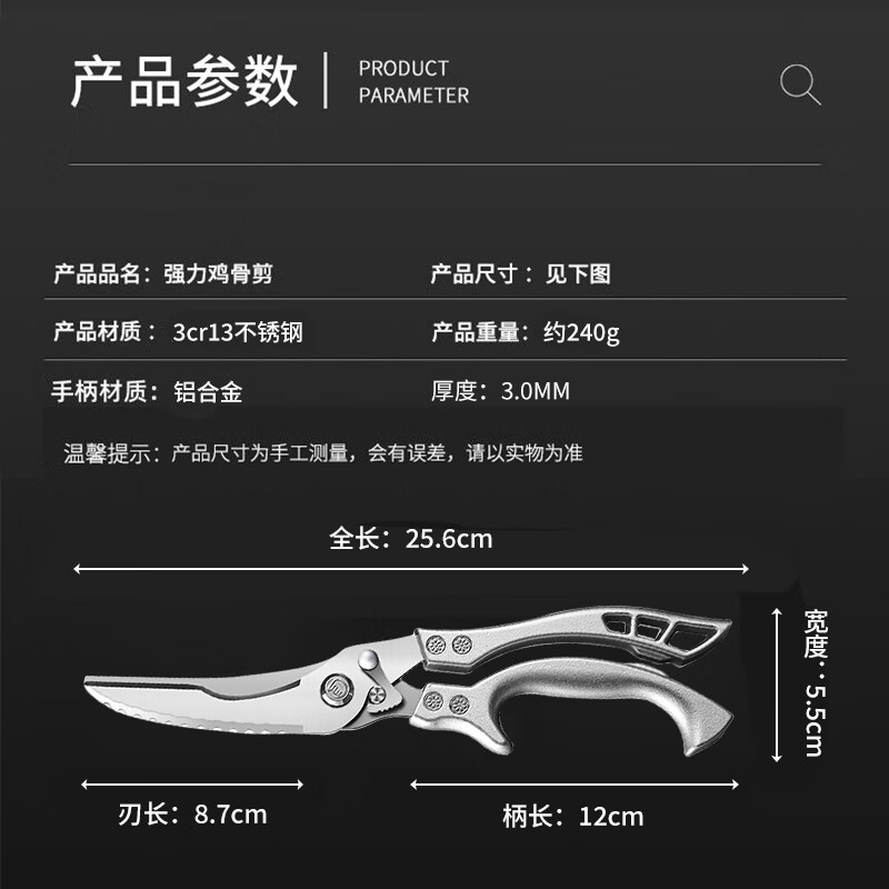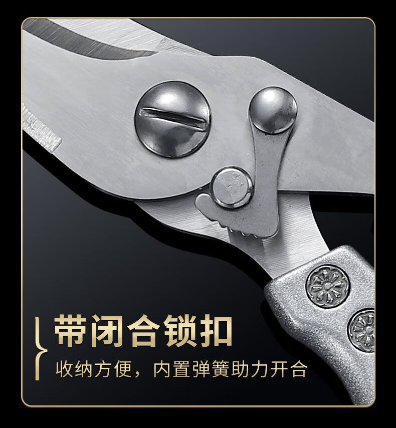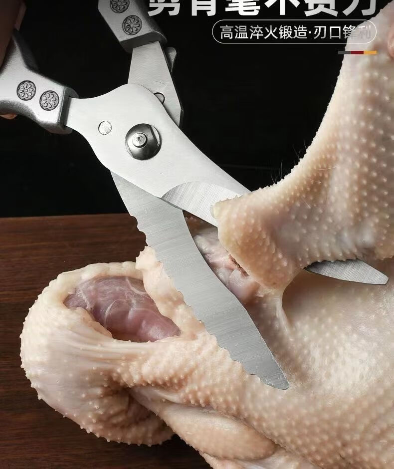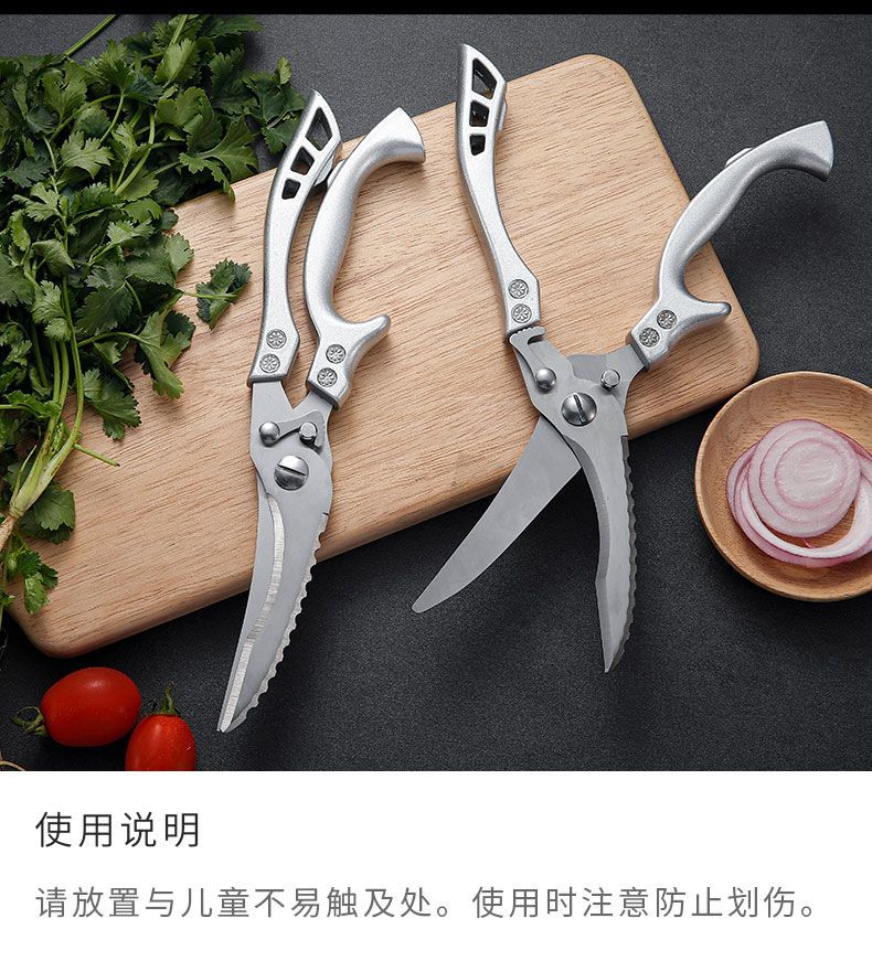 Kitchen scissors household stainless steel all-steel strong chicken bone scissors multi-functional fish cutting scissors meat vegetable scissors barbecue scissors strong scissors (aluminum alloy handle)