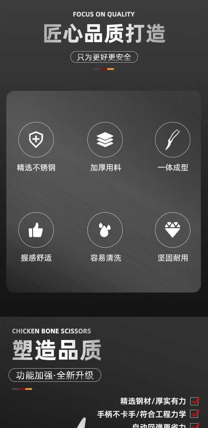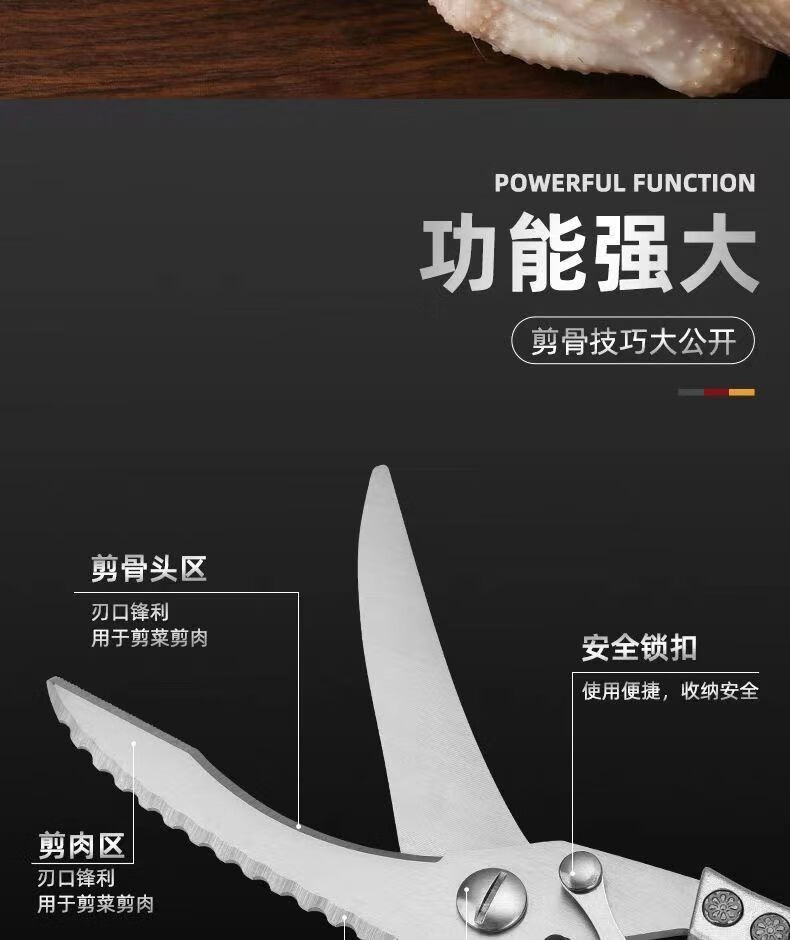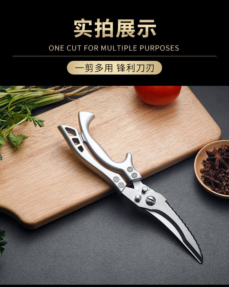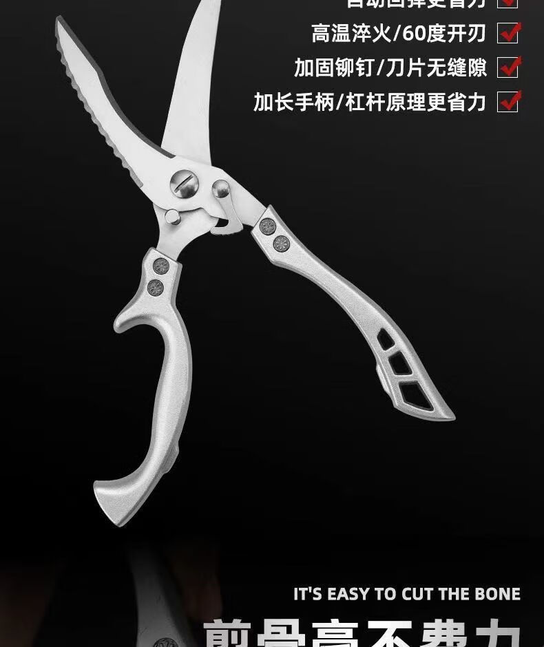 Kitchen scissors household stainless steel all-steel strong chicken bone scissors multi-functional fish cutting scissors meat vegetable scissors barbecue scissors strong scissors (aluminum alloy handle)