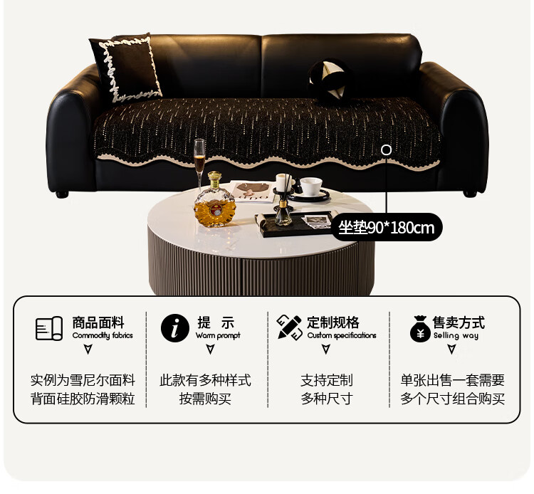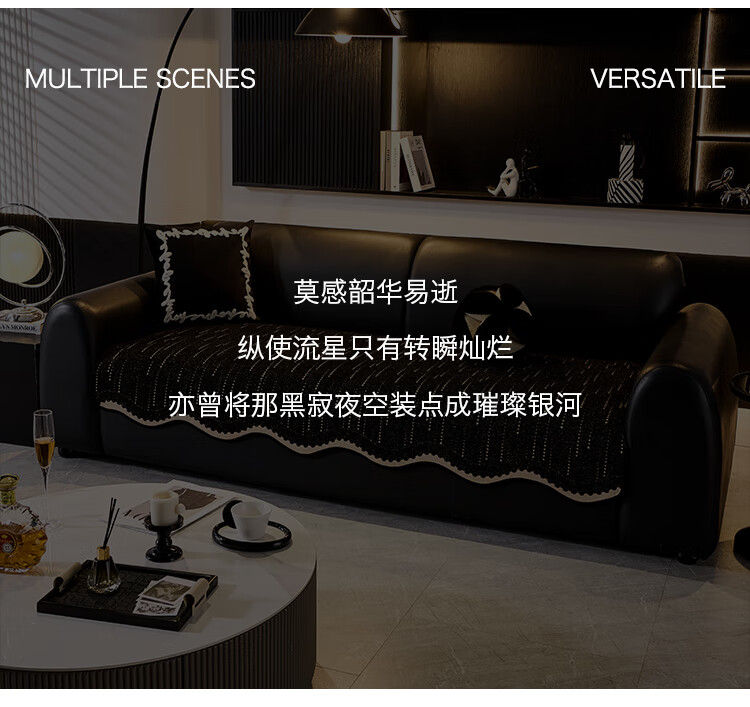 Baixini one-piece light luxury sofa cushion 2026 new four-season universal fixed non-slip leather sofa cushion YM special-shaped meteor-black 70*70CM can be used as armrests and backrests