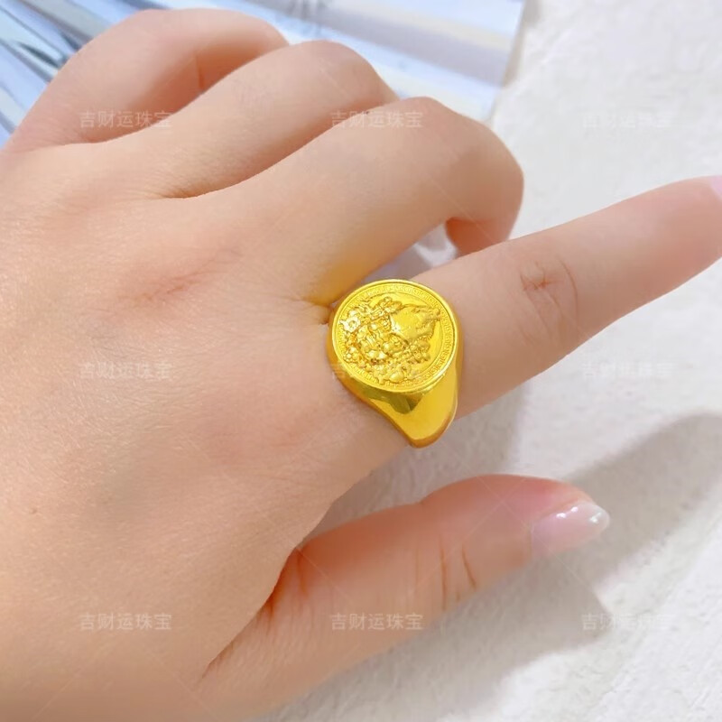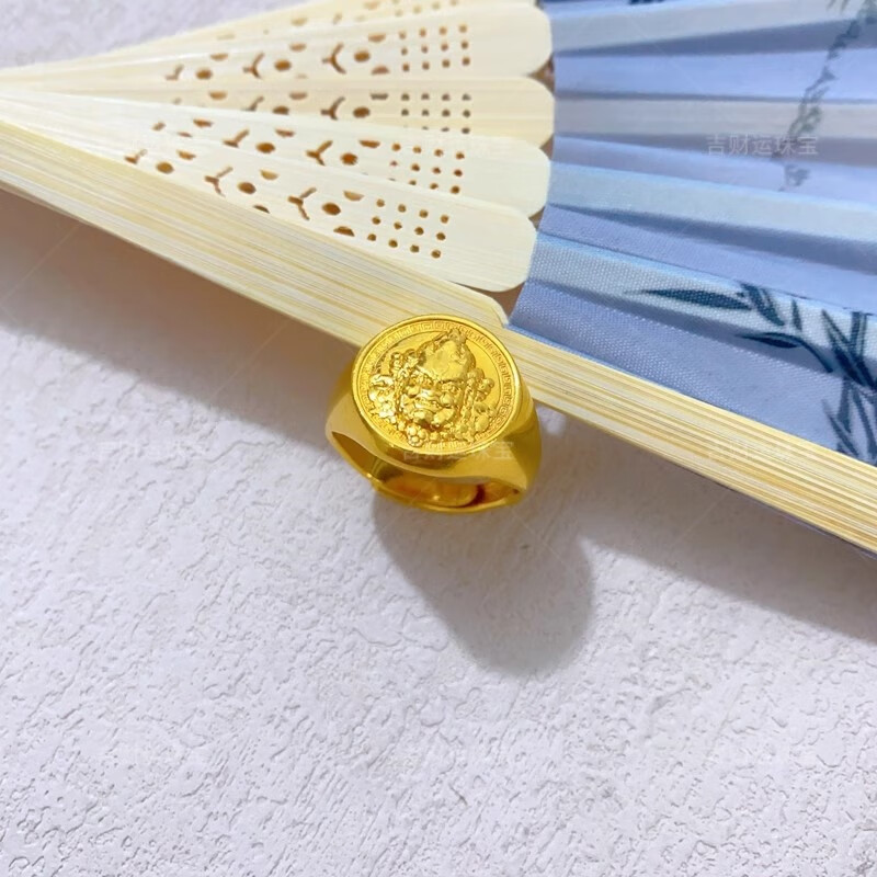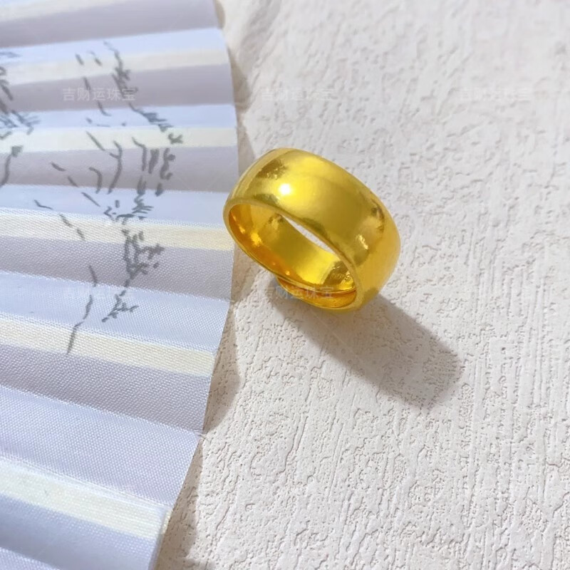 Lucky gold-covered silver-covered wide glossy live gold ring for men 999 pure gold loach back ring as a gift for husband. Gold-covered 1.2g loach back ring with a total weight of about 10 grams