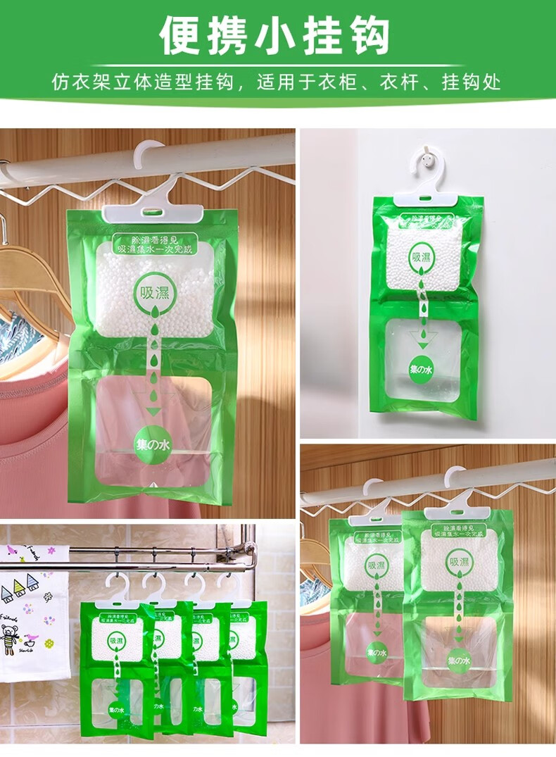 Dehumidification bag desiccant moisture absorption dormitory student hanging wardrobe bag moisture absorption household artifact 5 packs double moisture absorption + each bag is individually packaged