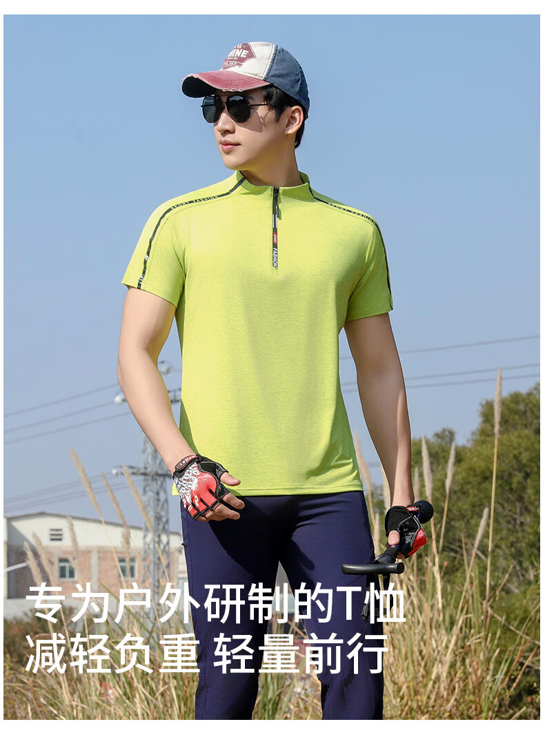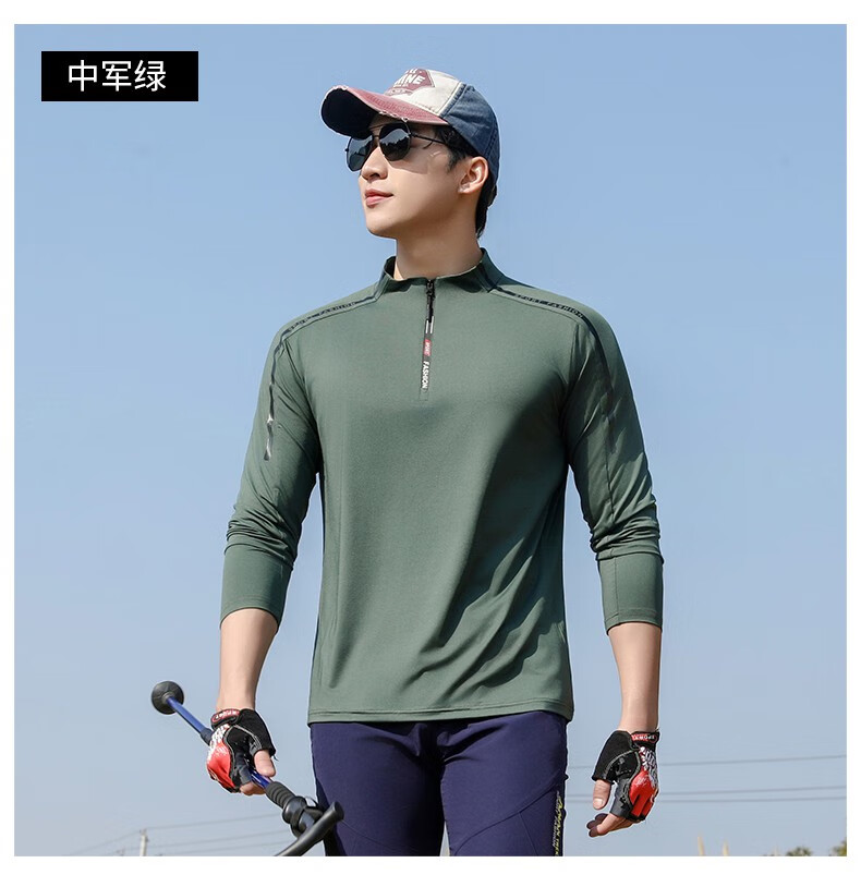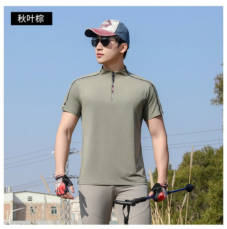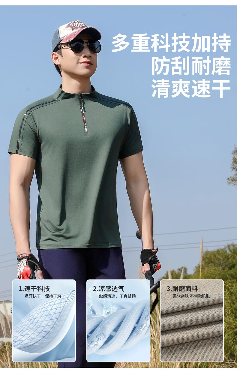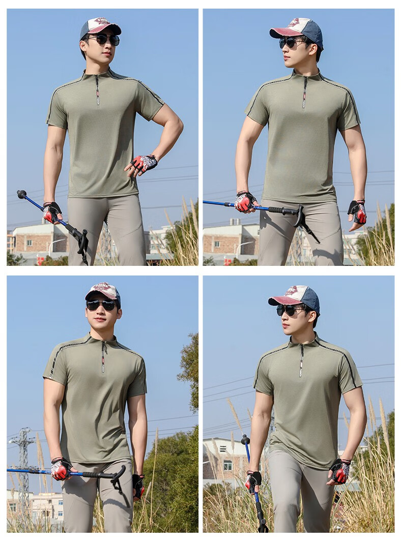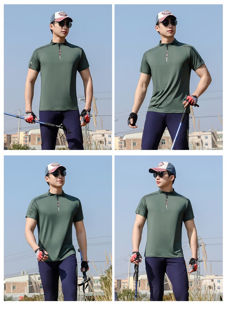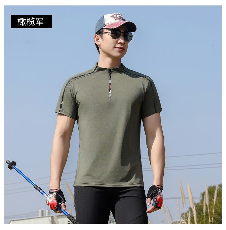 Jeep (JEEP) outdoor mountaineering hiking short-sleeved ice silk quick-drying T-shirt men's sports morning running half-zip quick-drying clothing cycling suit summer AJ71 Chinese army green cool short-sleeved L recommended 100/120Jin Jin equals 0.5 kg