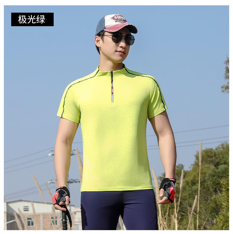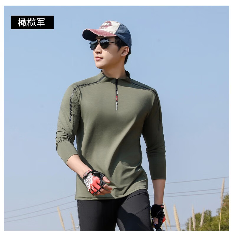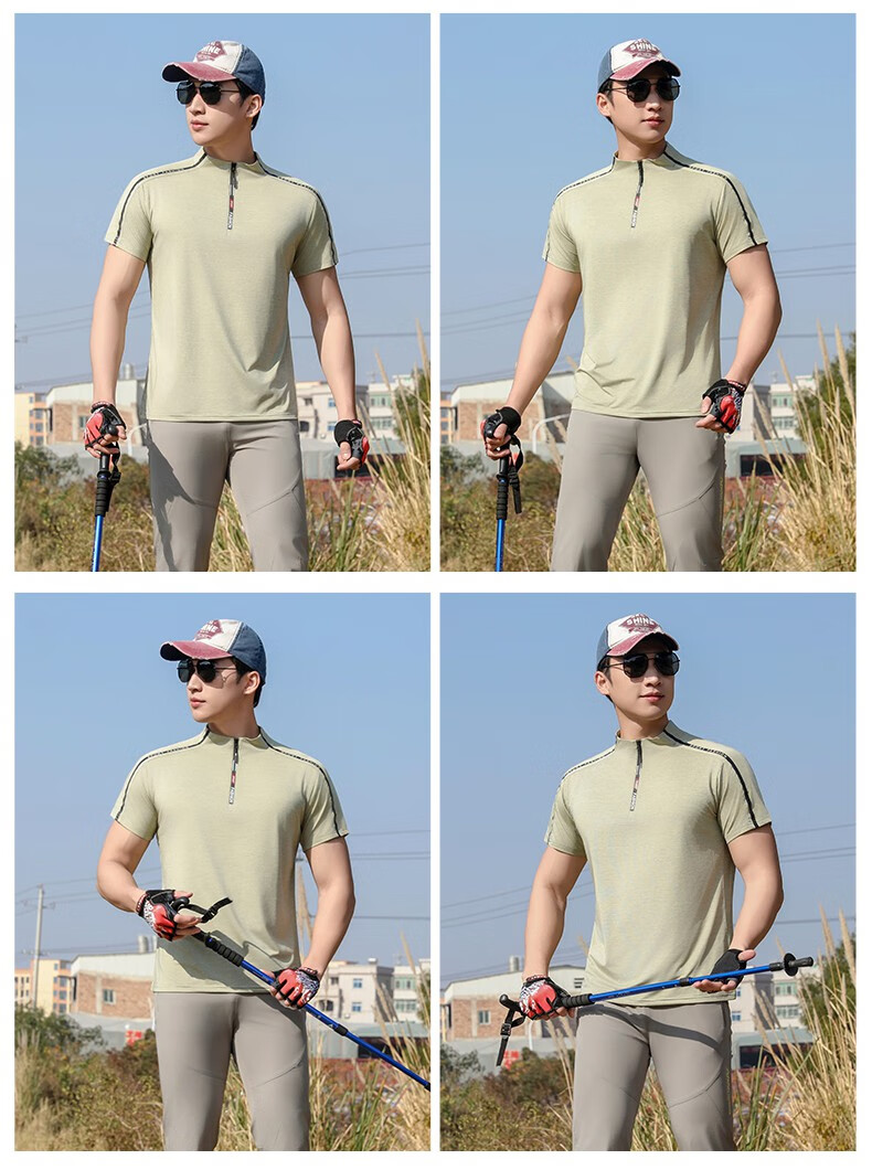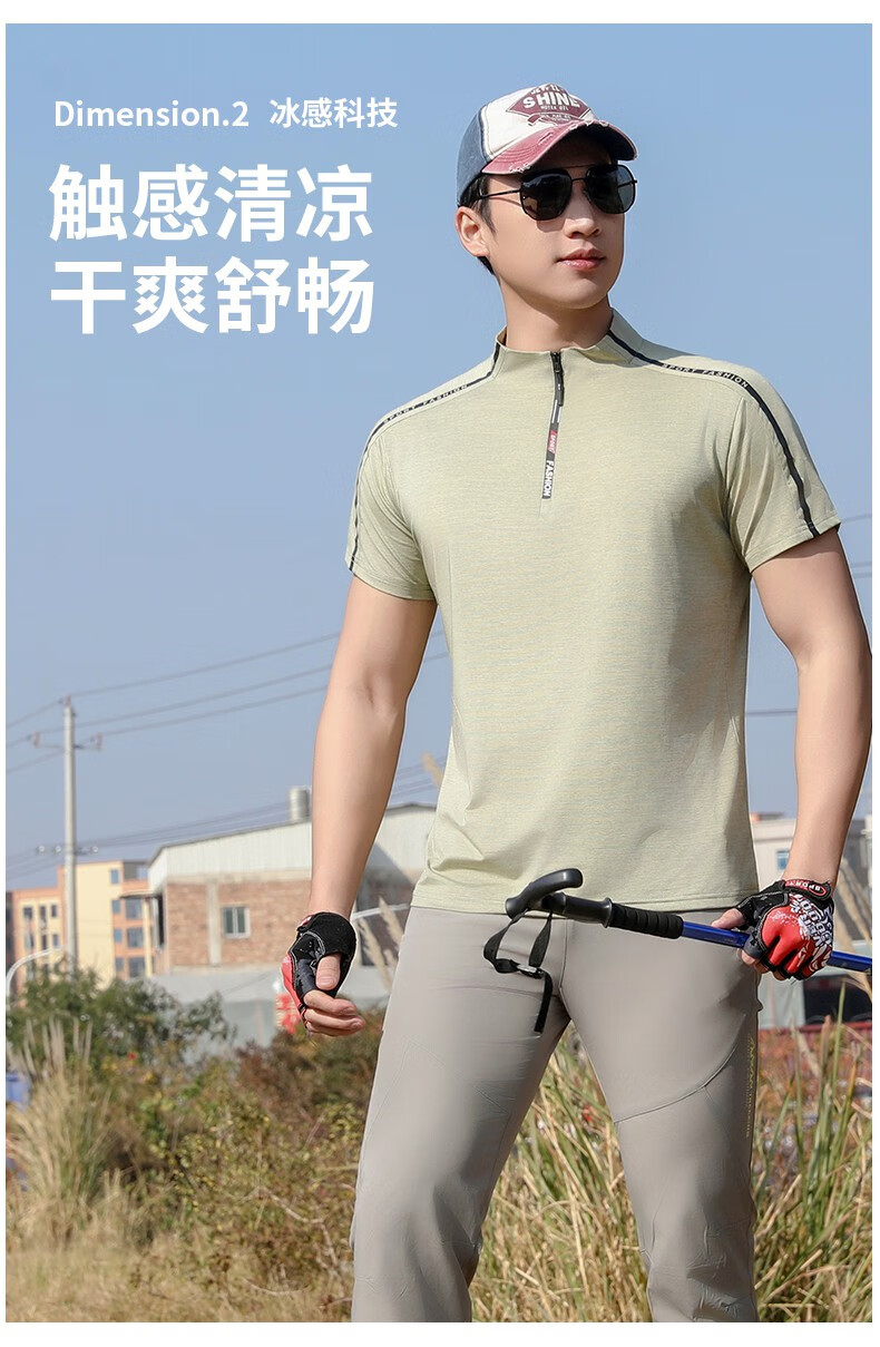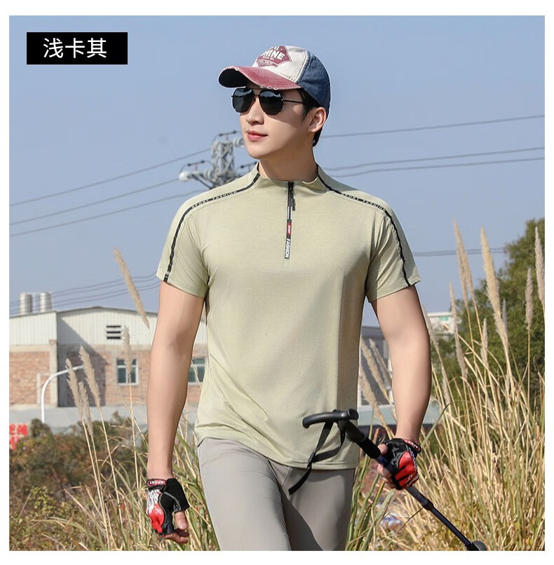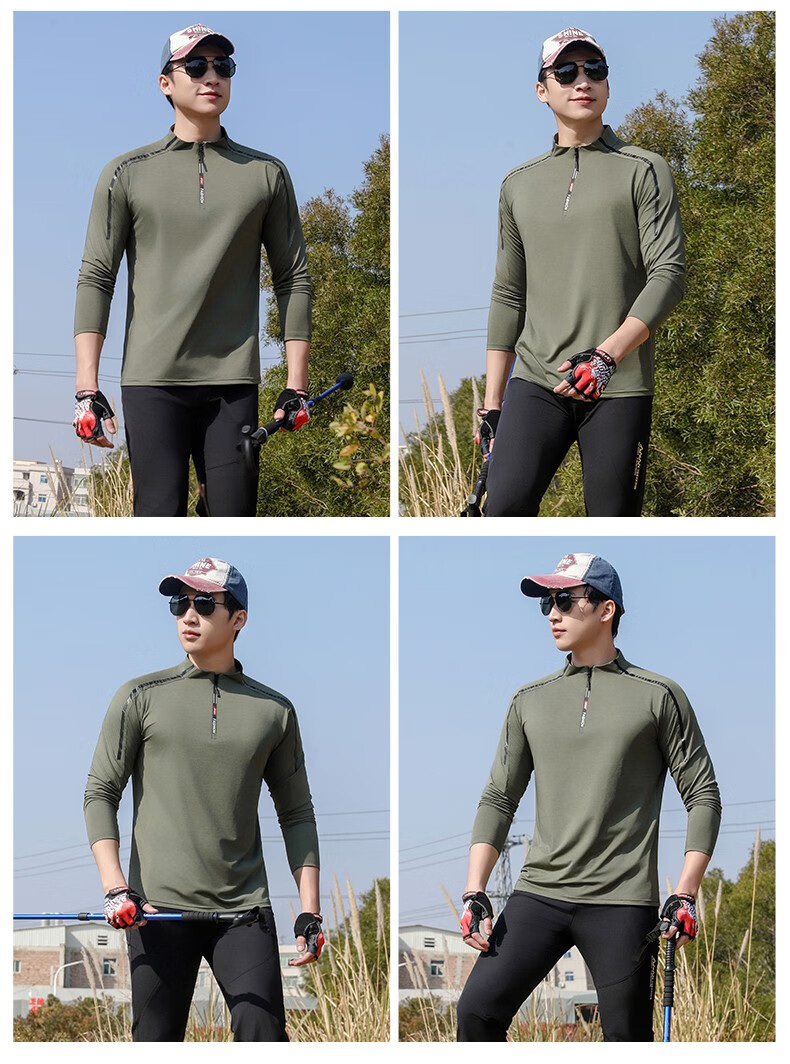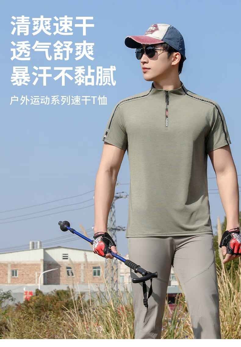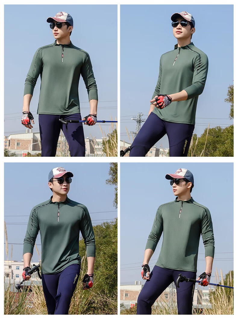 Jeep (JEEP) outdoor mountaineering hiking short-sleeved ice silk quick-drying T-shirt men's sports morning running half-zip quick-drying clothing cycling suit summer AJ71 Chinese army green cool short-sleeved L recommended 100/120Jin Jin equals 0.5 kg