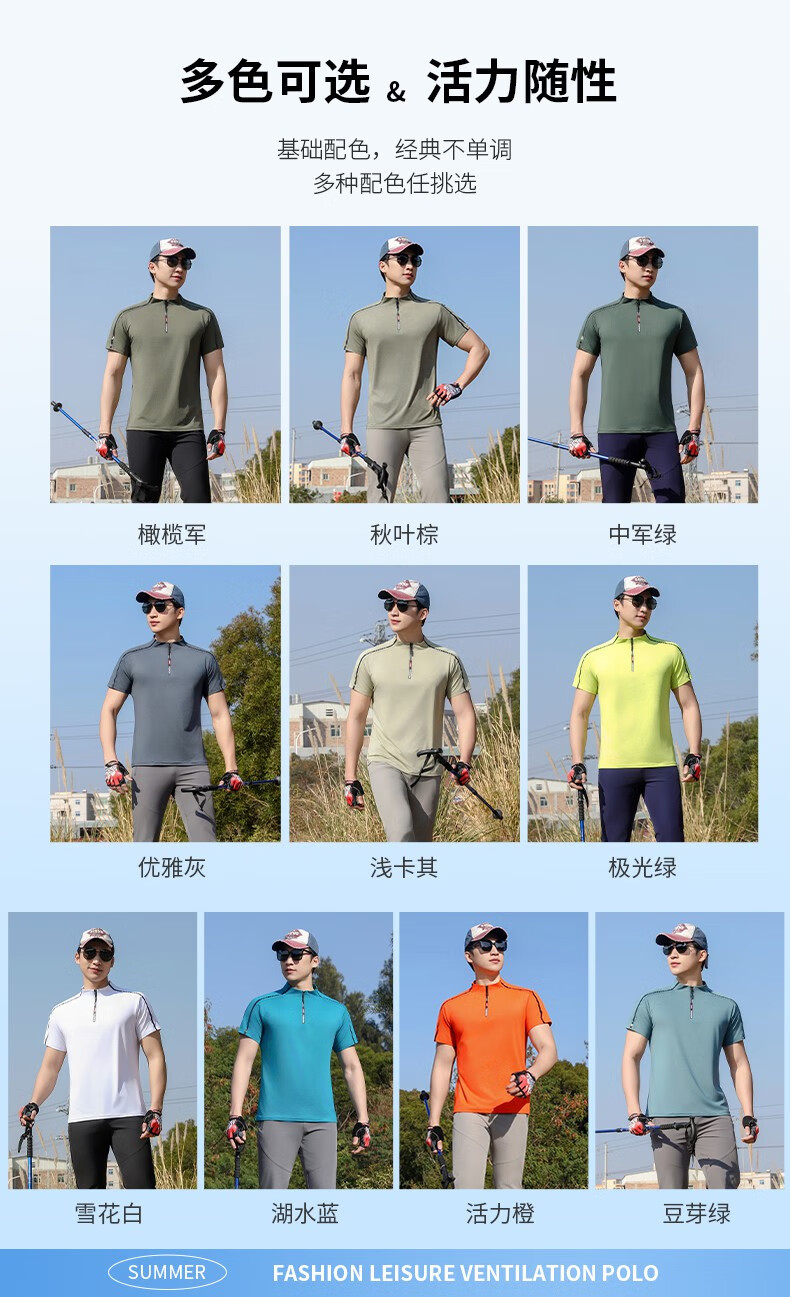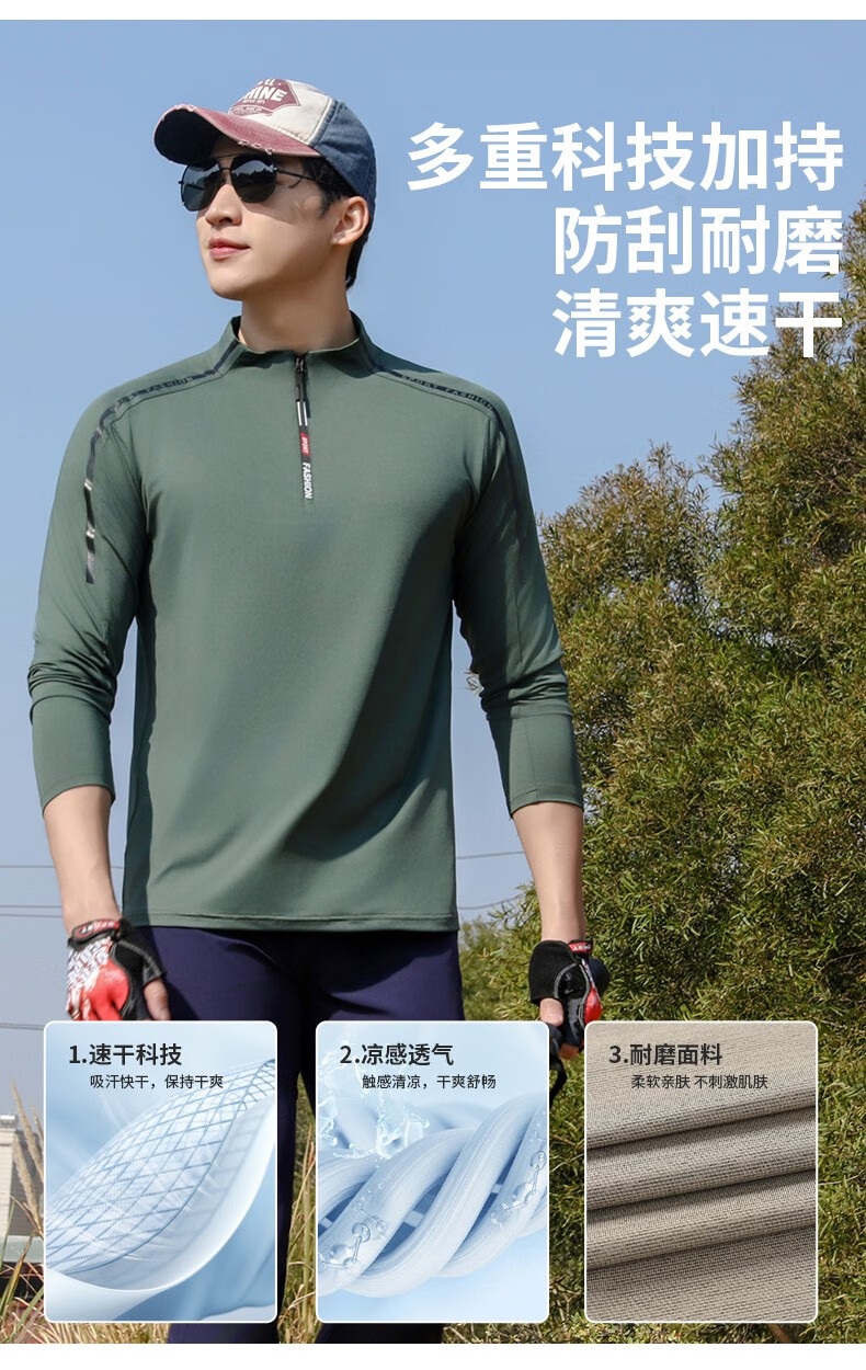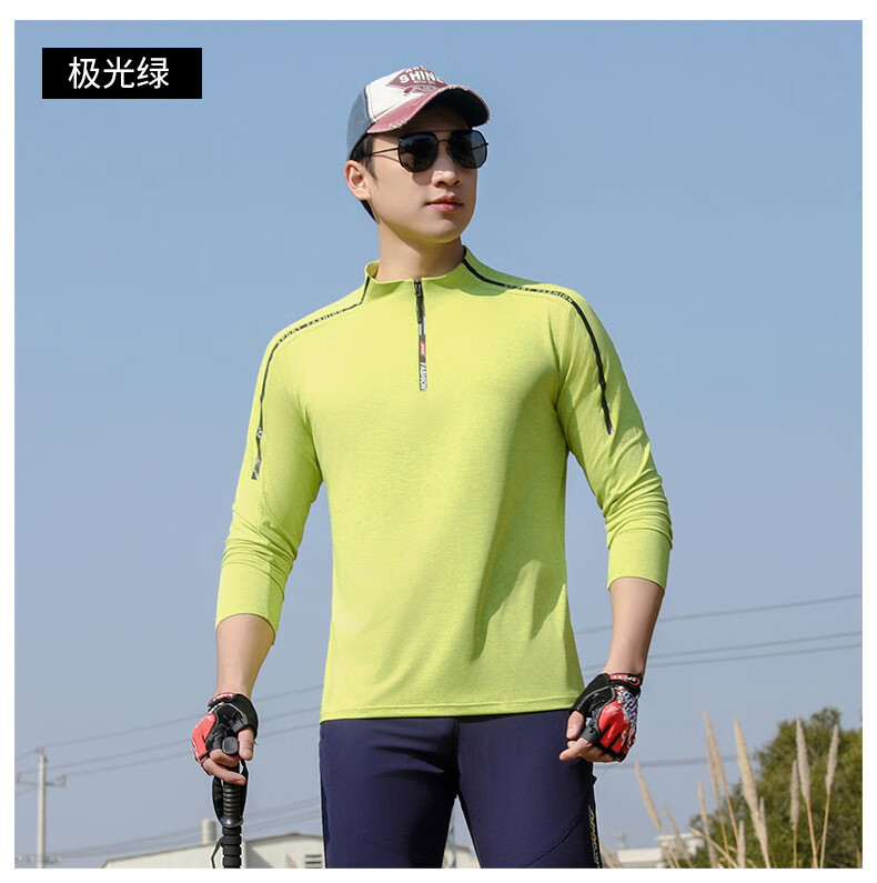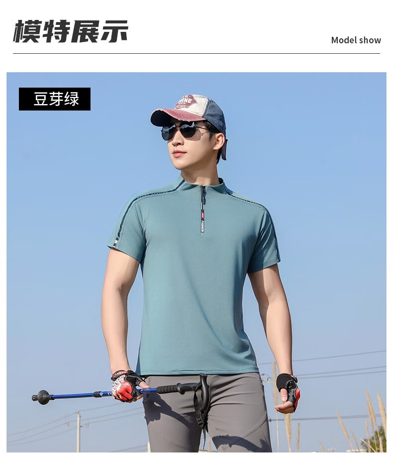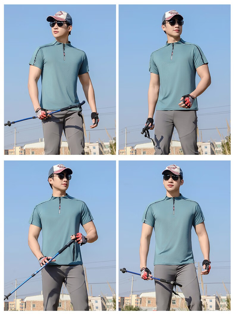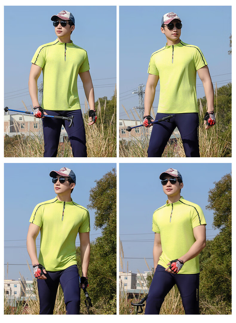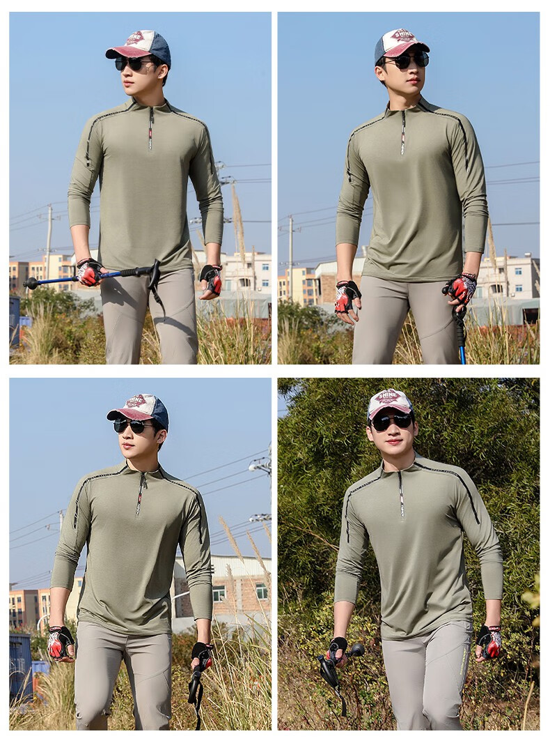 Jeep (JEEP) outdoor mountaineering hiking short-sleeved ice silk quick-drying T-shirt men's sports morning running half-zip quick-drying clothing cycling suit summer AJ71 Chinese army green cool short-sleeved L recommended 100/120Jin Jin equals 0.5 kg