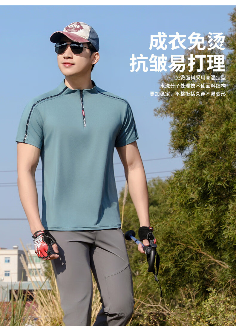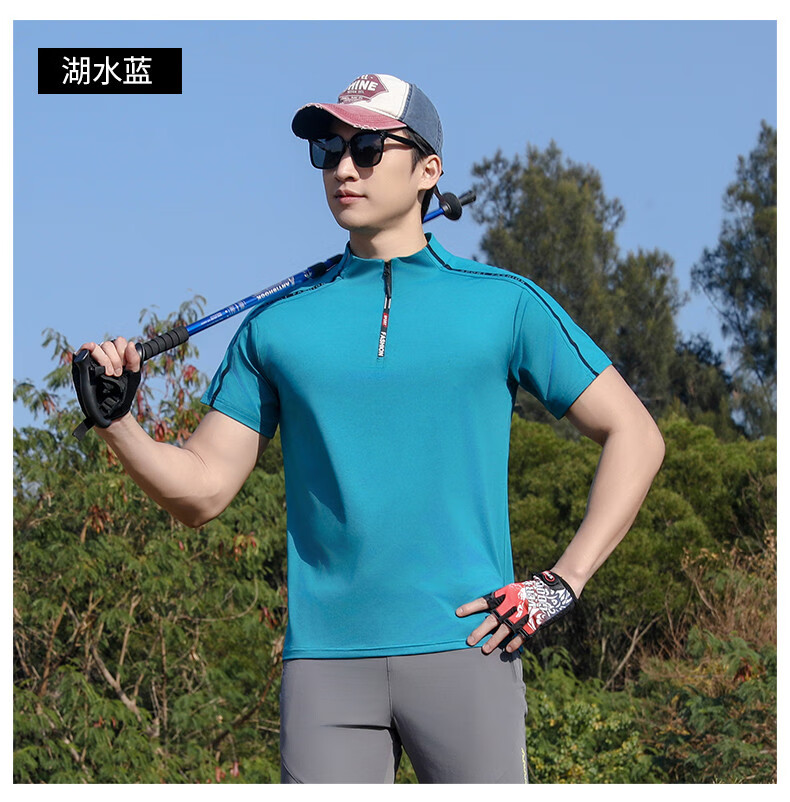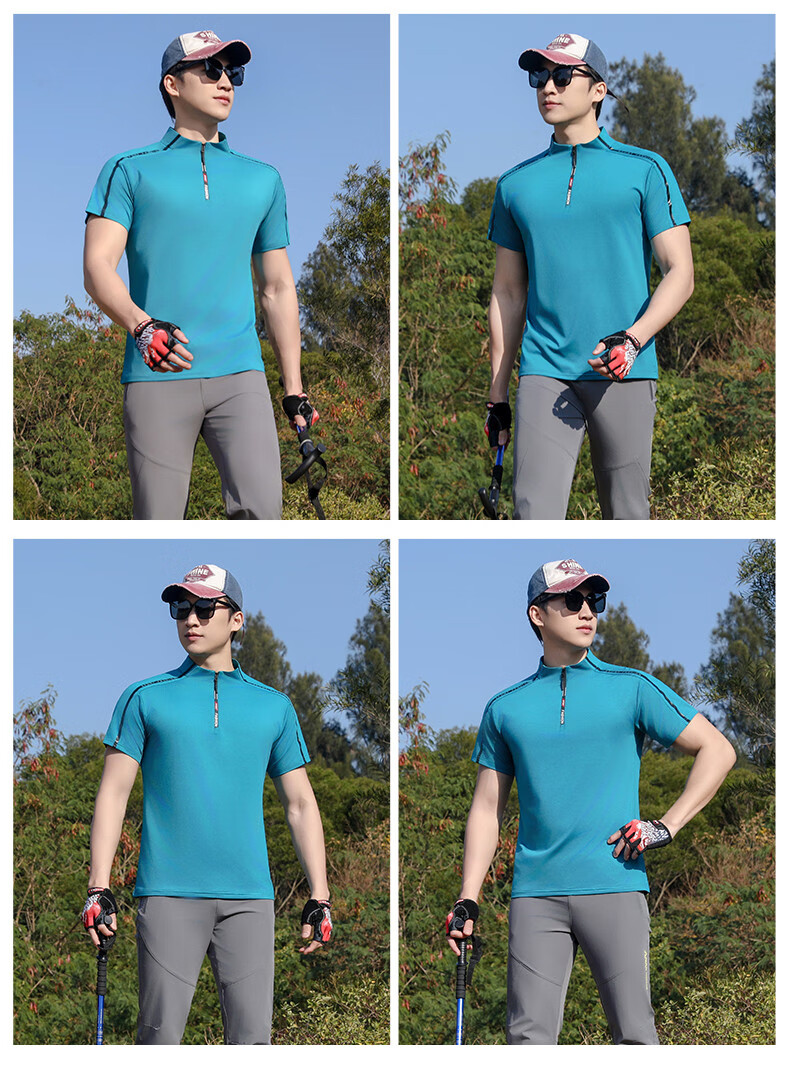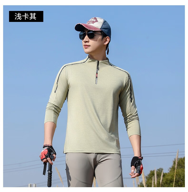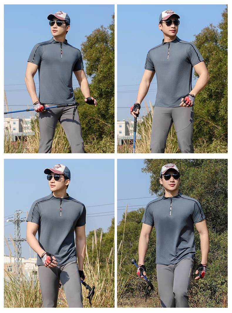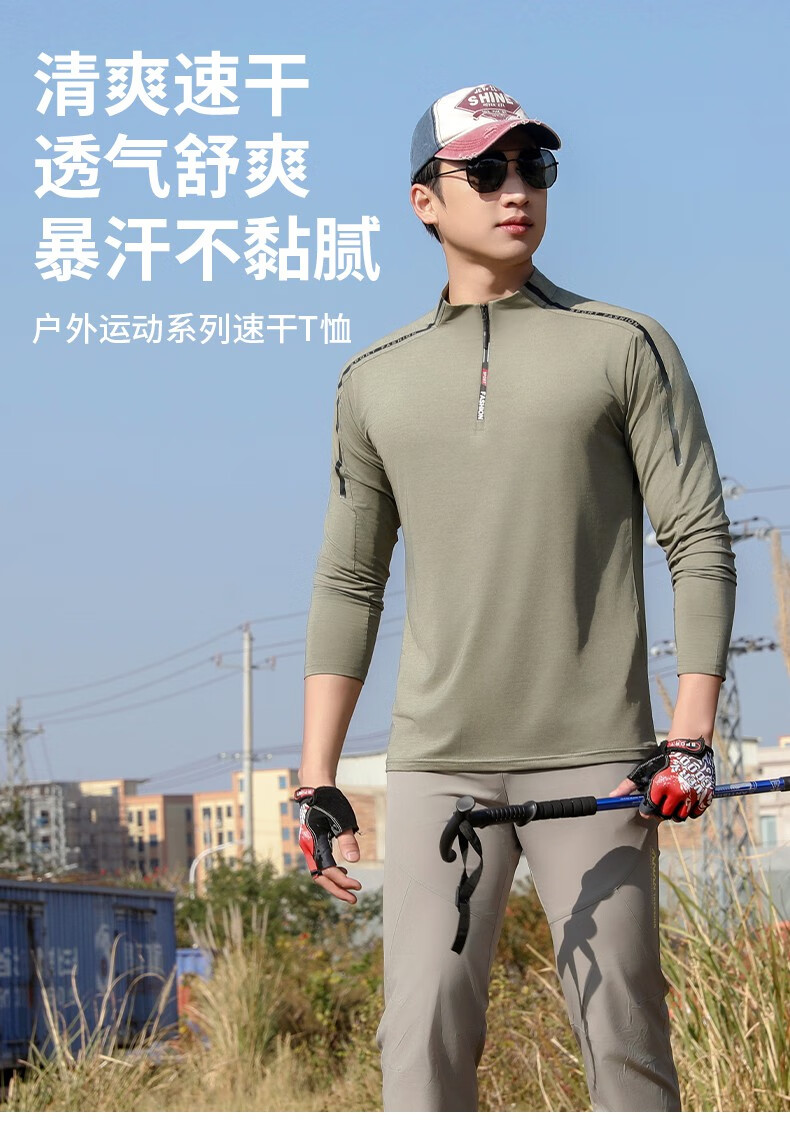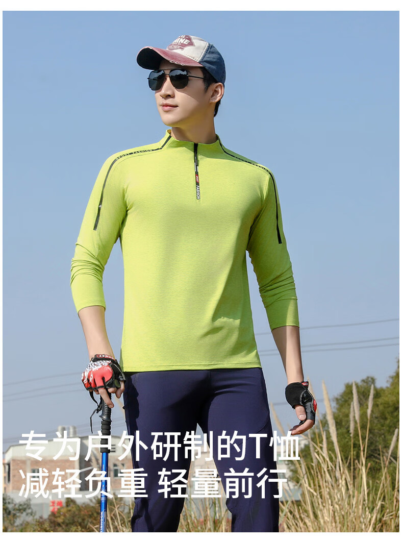 Jeep (JEEP) outdoor mountaineering hiking short-sleeved ice silk quick-drying T-shirt men's sports morning running half-zip quick-drying clothing cycling suit summer AJ71 Chinese army green cool short-sleeved L recommended 100/120Jin Jin equals 0.5 kg