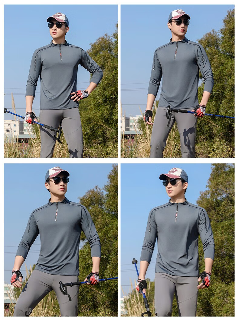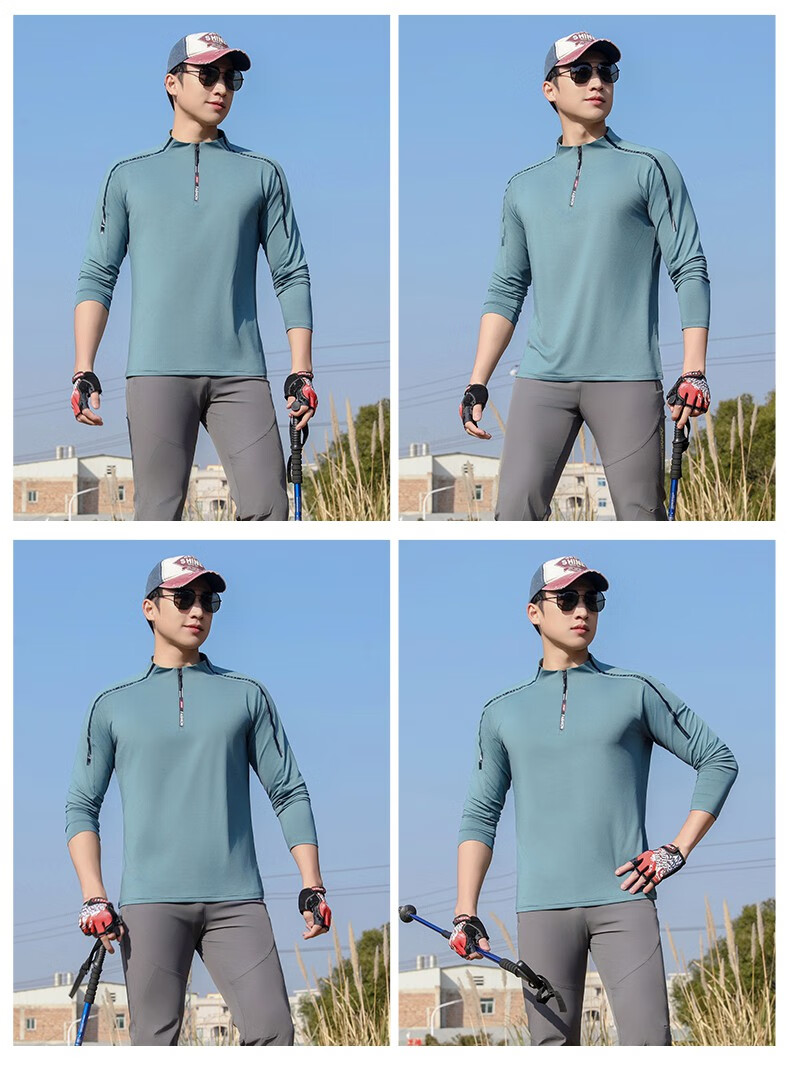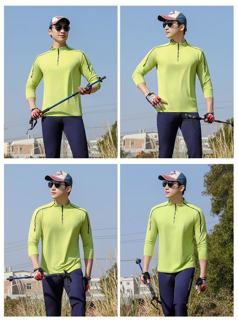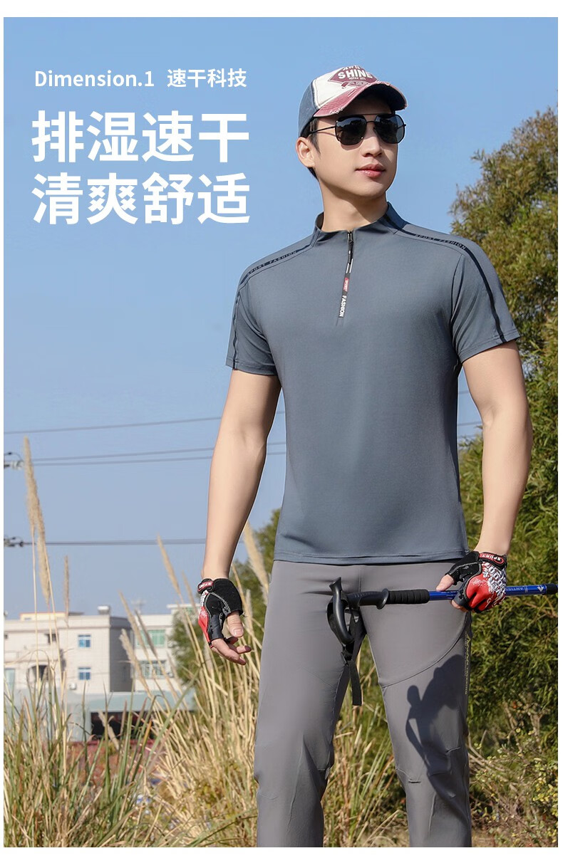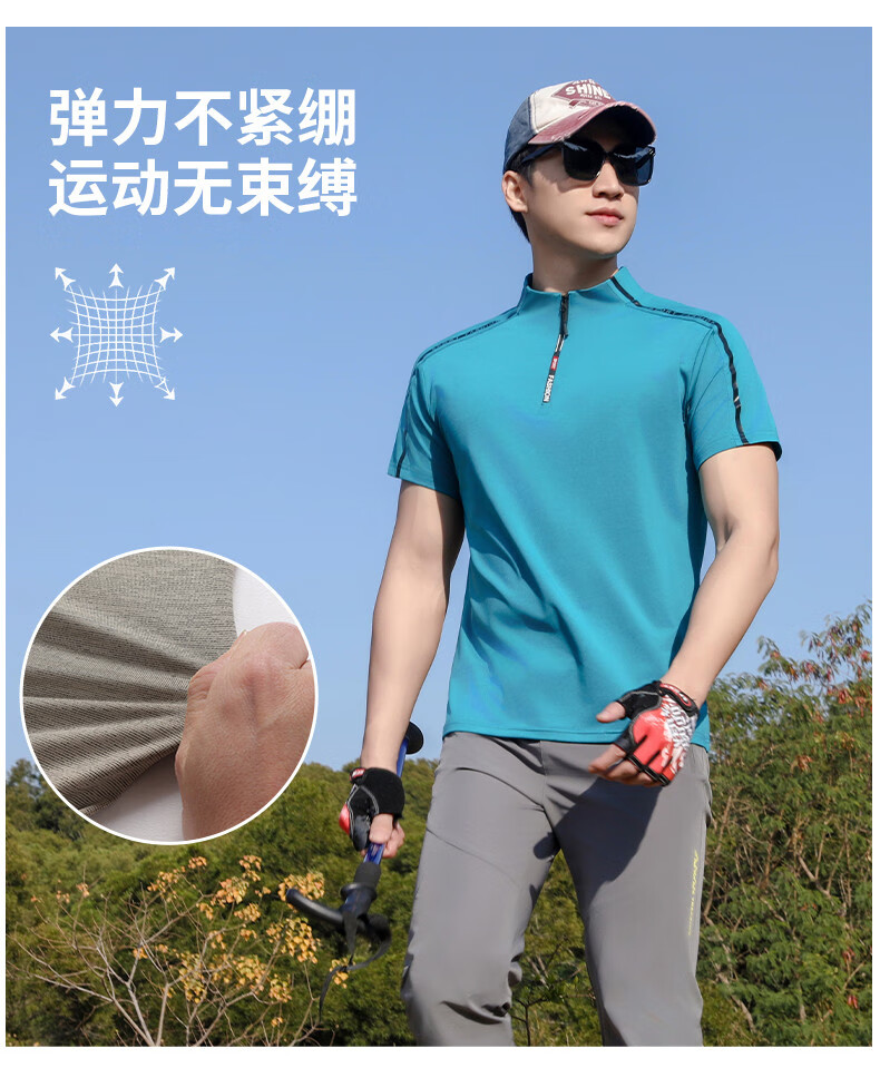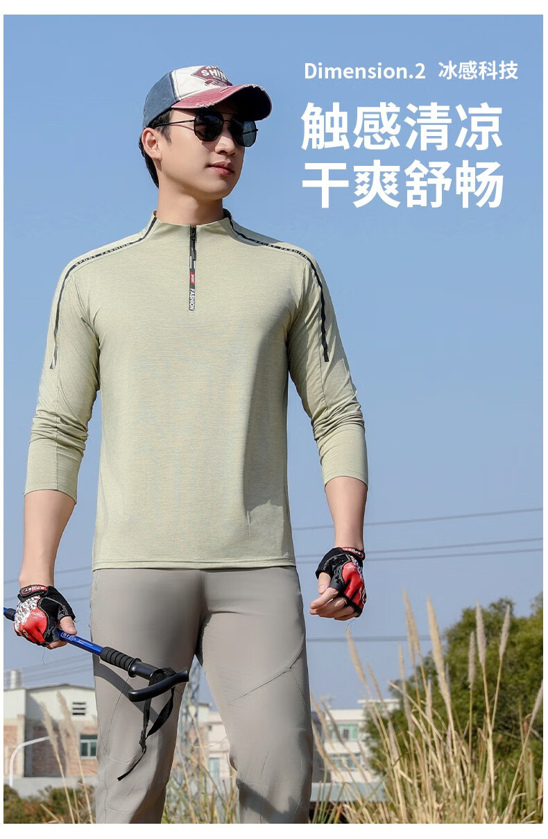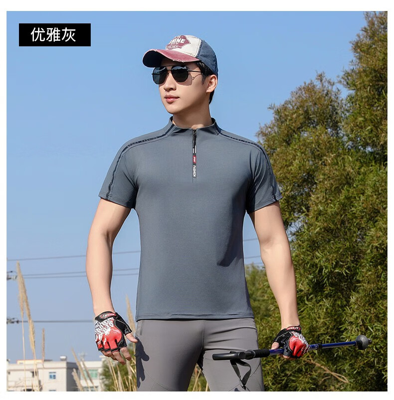 Jeep (JEEP) outdoor mountaineering hiking short-sleeved ice silk quick-drying T-shirt men's sports morning running half-zip quick-drying clothing cycling suit summer AJ71 Chinese army green cool short-sleeved L recommended 100/120Jin Jin equals 0.5 kg