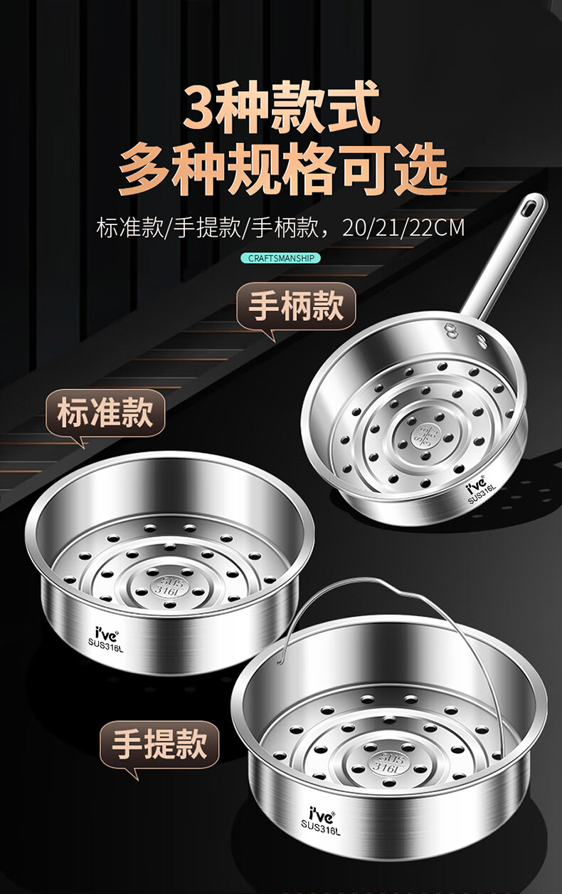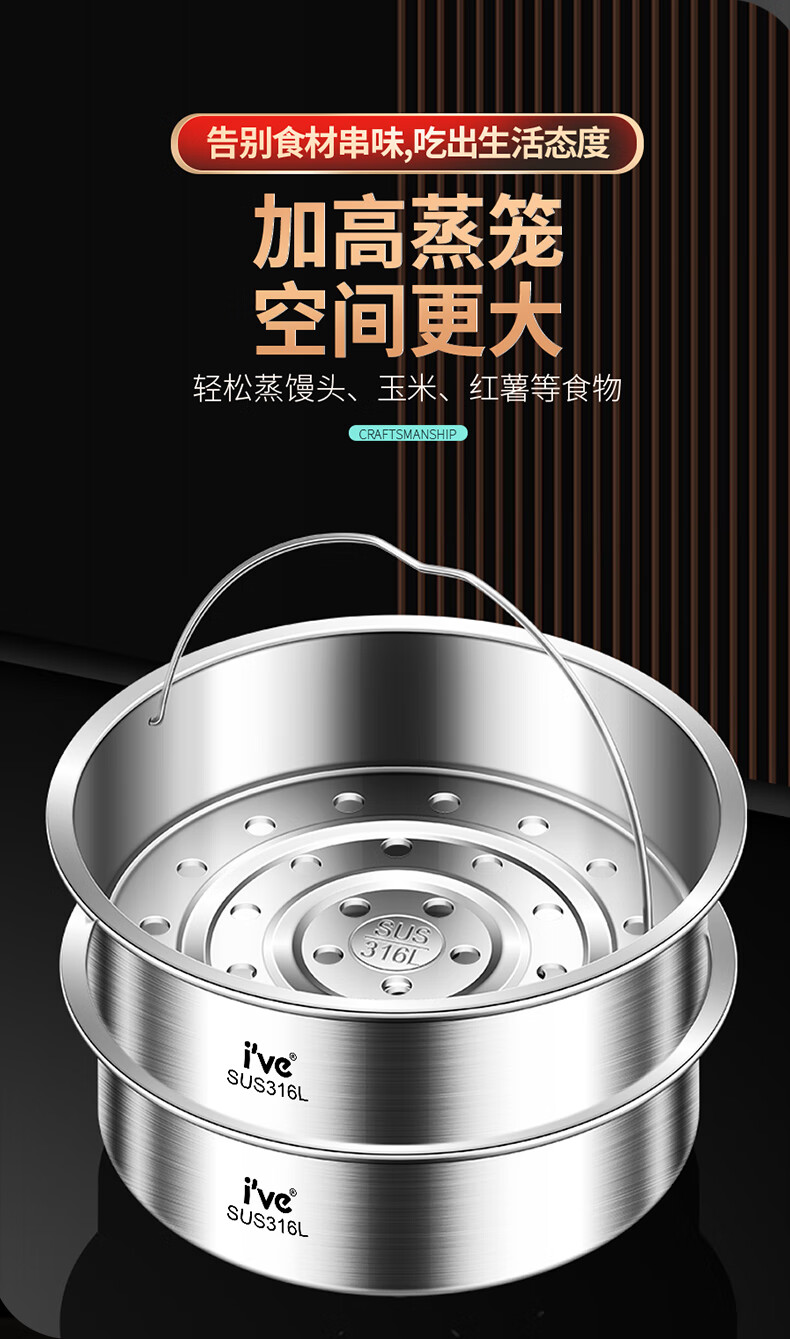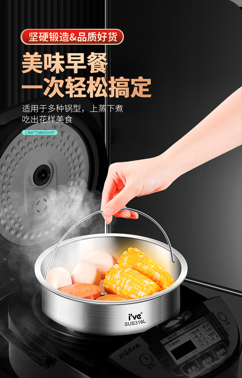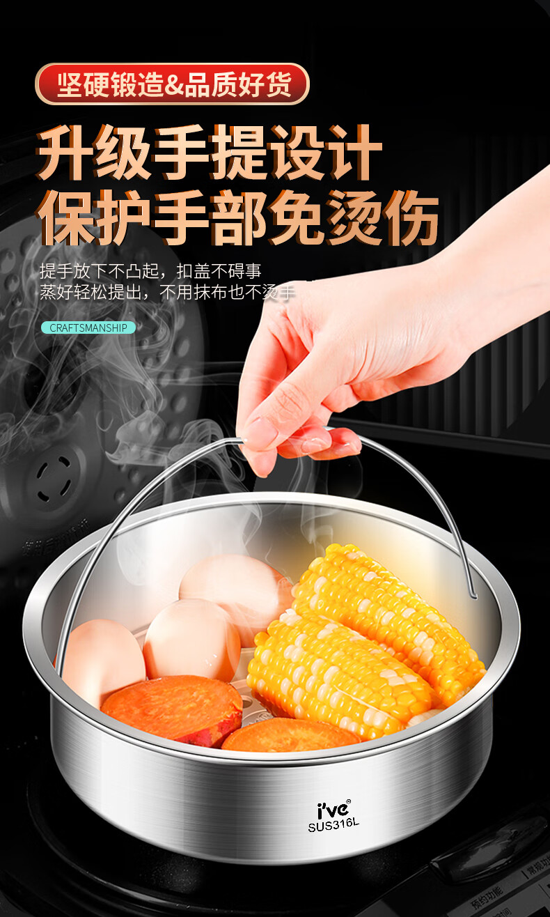 I VE 316 Stainless Steel Rice Cooker Steamer Large Capacity Round Steaming Rack Thickened Rice Pot Steamer Rack Steaming Buns Universal Steaming Rack Handle Model 22.5CM 316 Steel Heightened Steamer | Free Two Steaming Cloths with Order