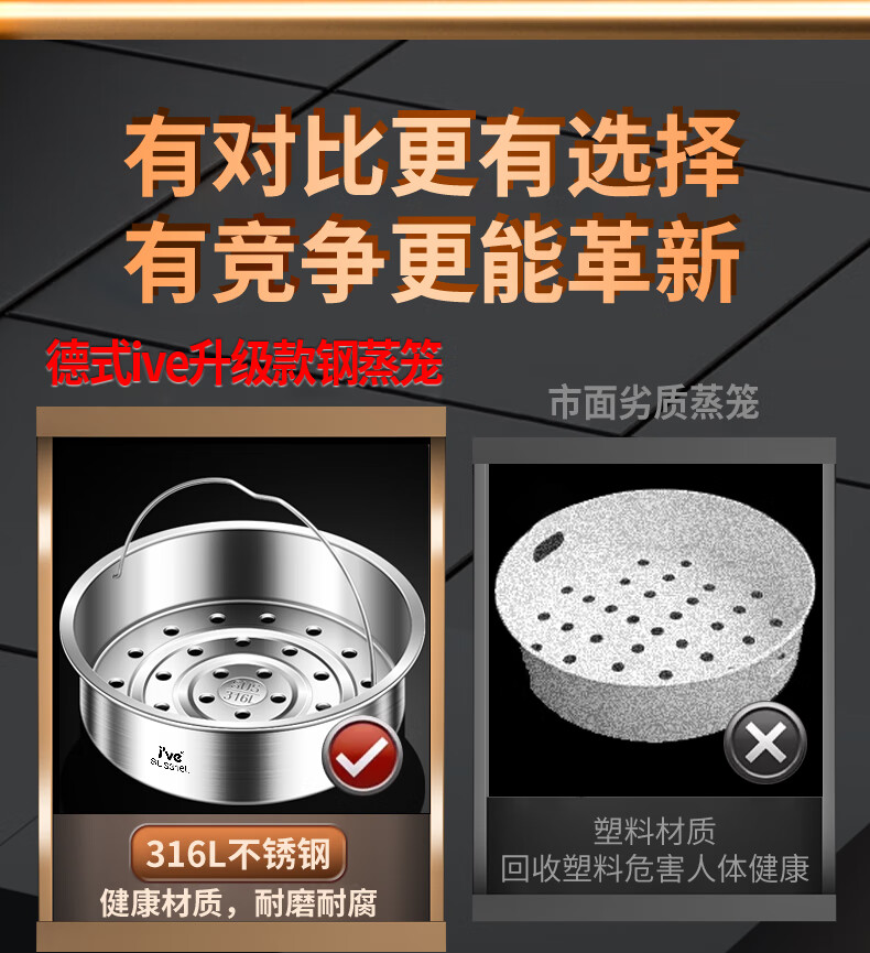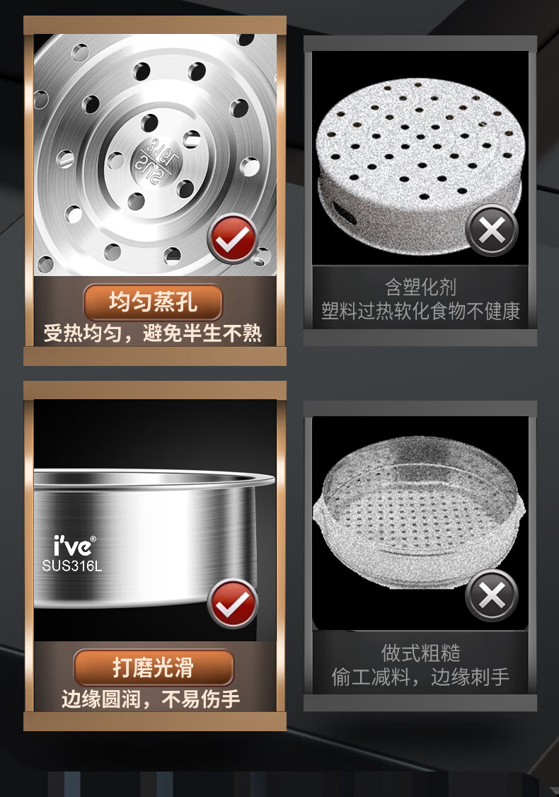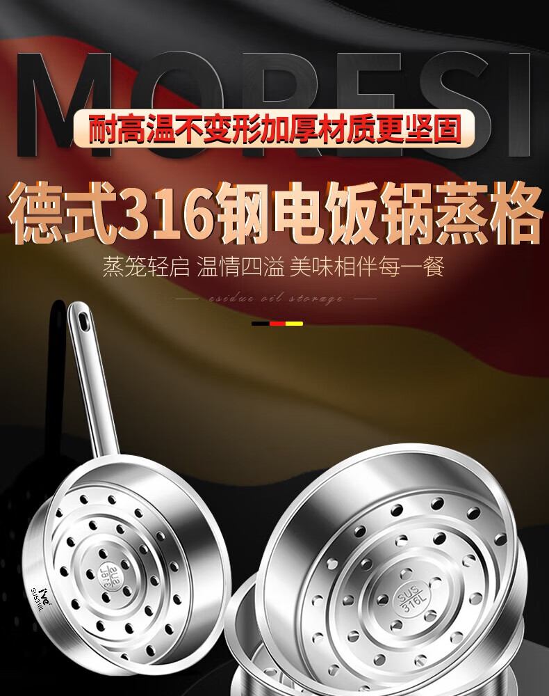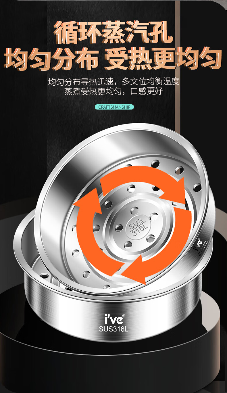 I VE 316 Stainless Steel Rice Cooker Steamer Large Capacity Round Steaming Rack Thickened Rice Pot Steamer Rack Steaming Buns Universal Steaming Rack Handle Model 22.5CM 316 Steel Heightened Steamer | Free Two Steaming Cloths with Order