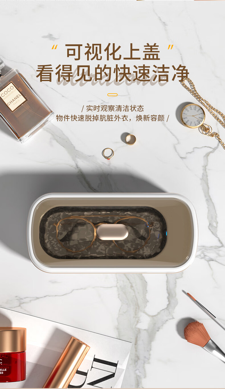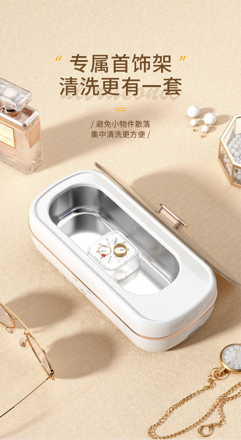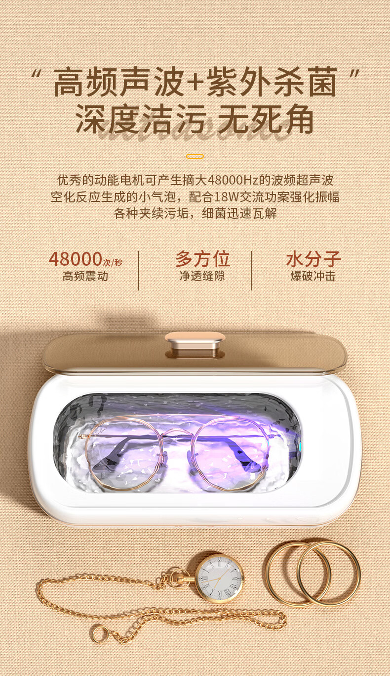 Jingyi Shang German quality blue light ultrasonic cleaning machine household glasses automatic cleaning jewelry contact lenses braces contact lens case instrument ivory white (model)