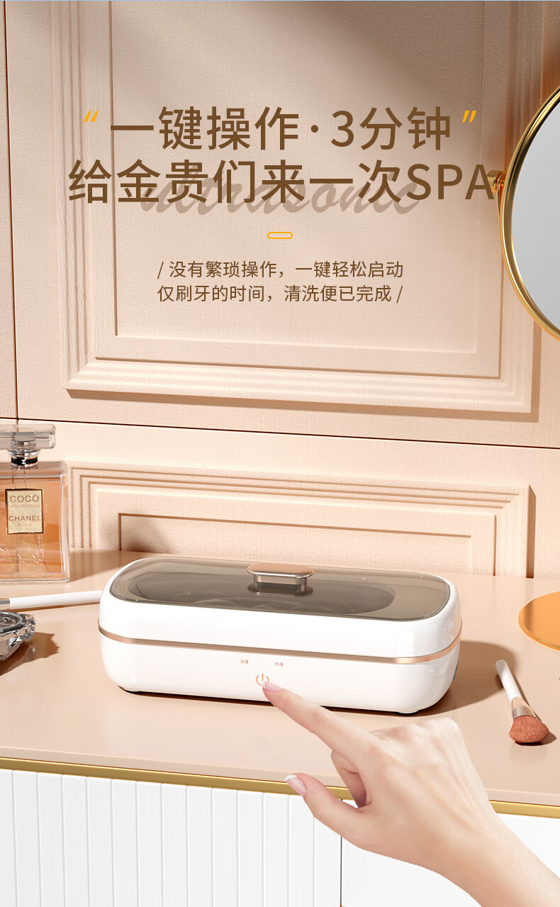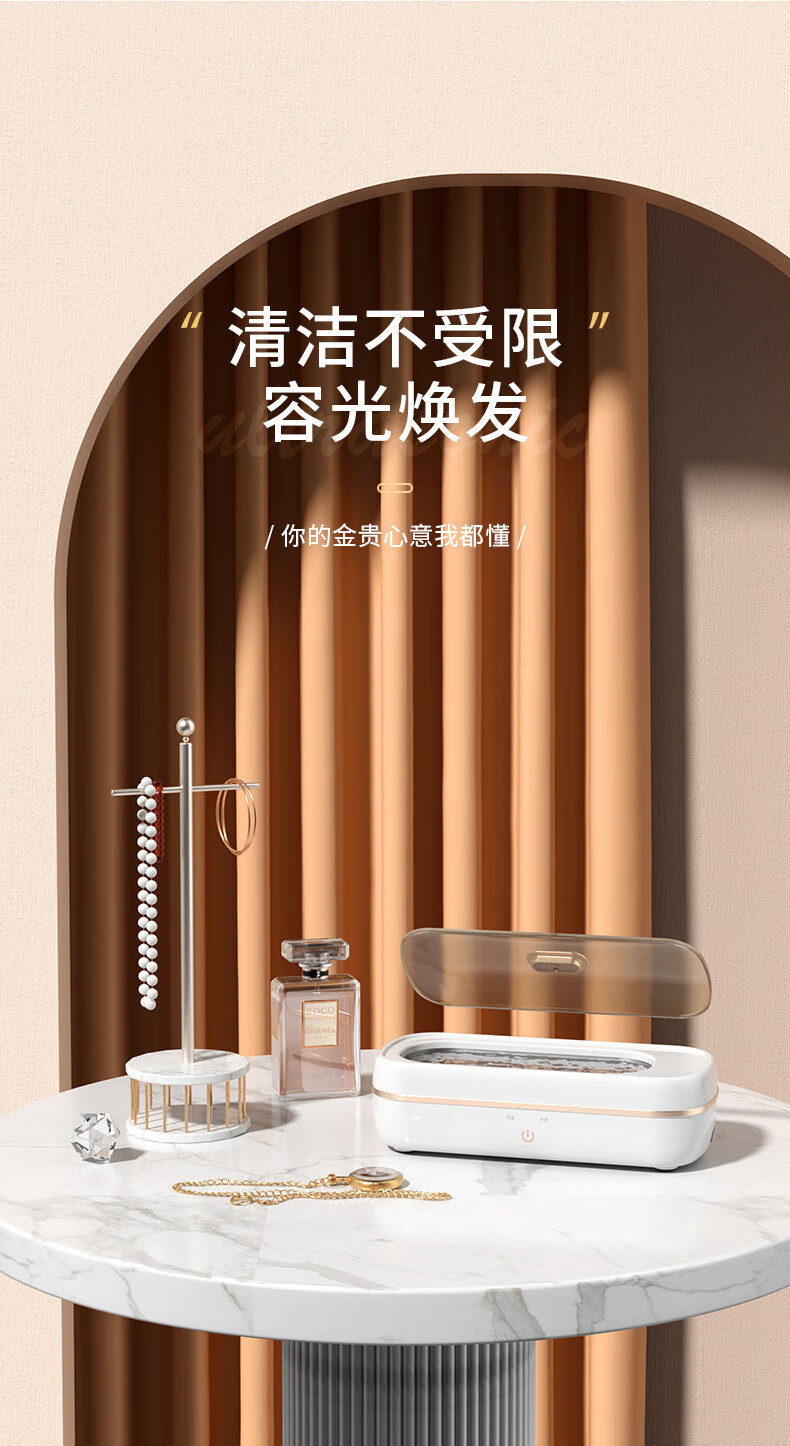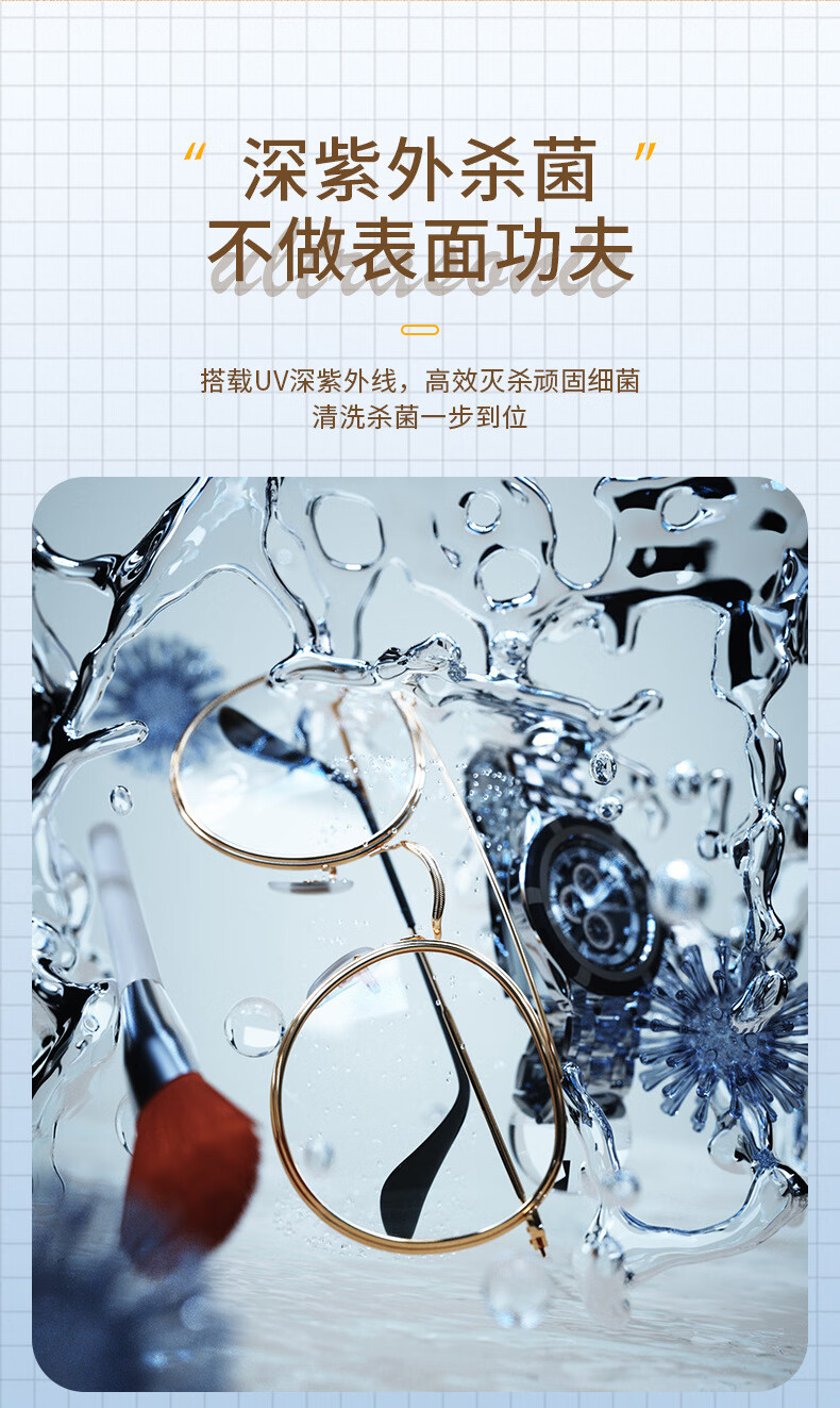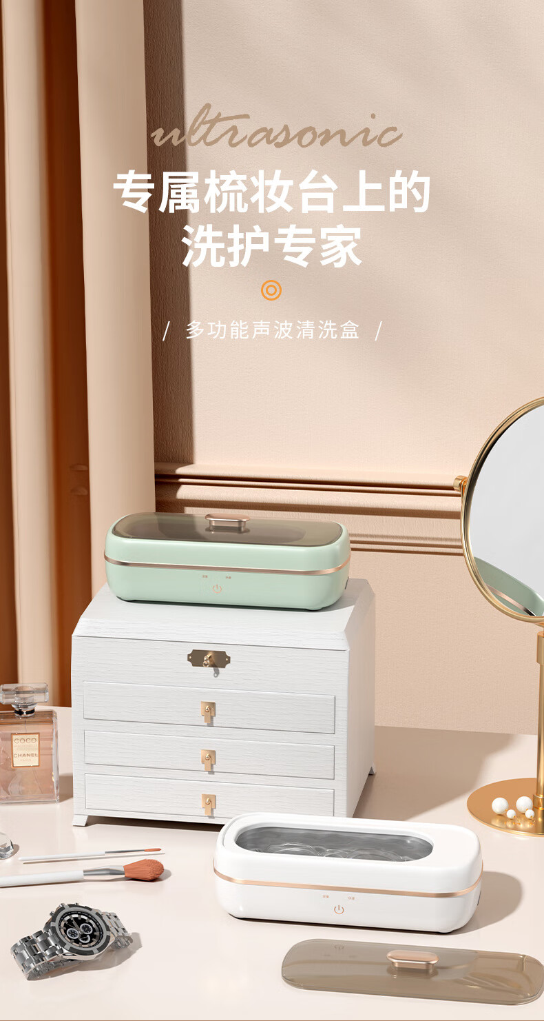 Jingyi Shang German quality blue light ultrasonic cleaning machine household glasses automatic cleaning jewelry contact lenses braces contact lens case instrument ivory white (model)
