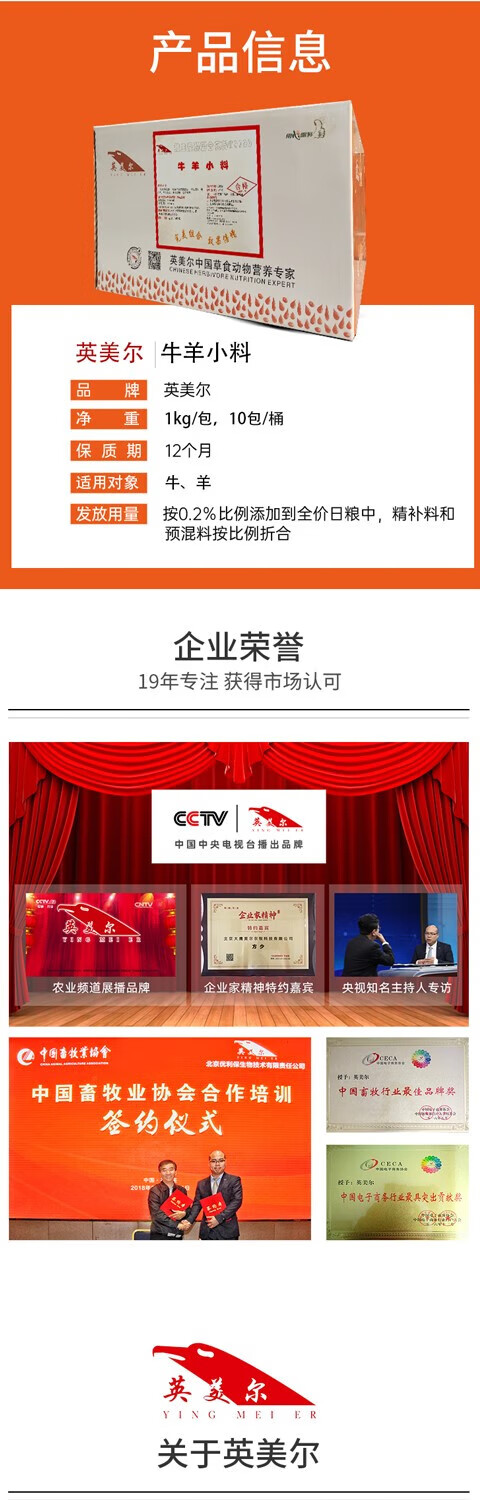 Ying 1 Meier cattle and sheep feed additives for fattening, beef cattle fattening, growth promotion, fat treasure premix for fattening, fattening cattle feed 40Jin Jin is equal to 0.5kg